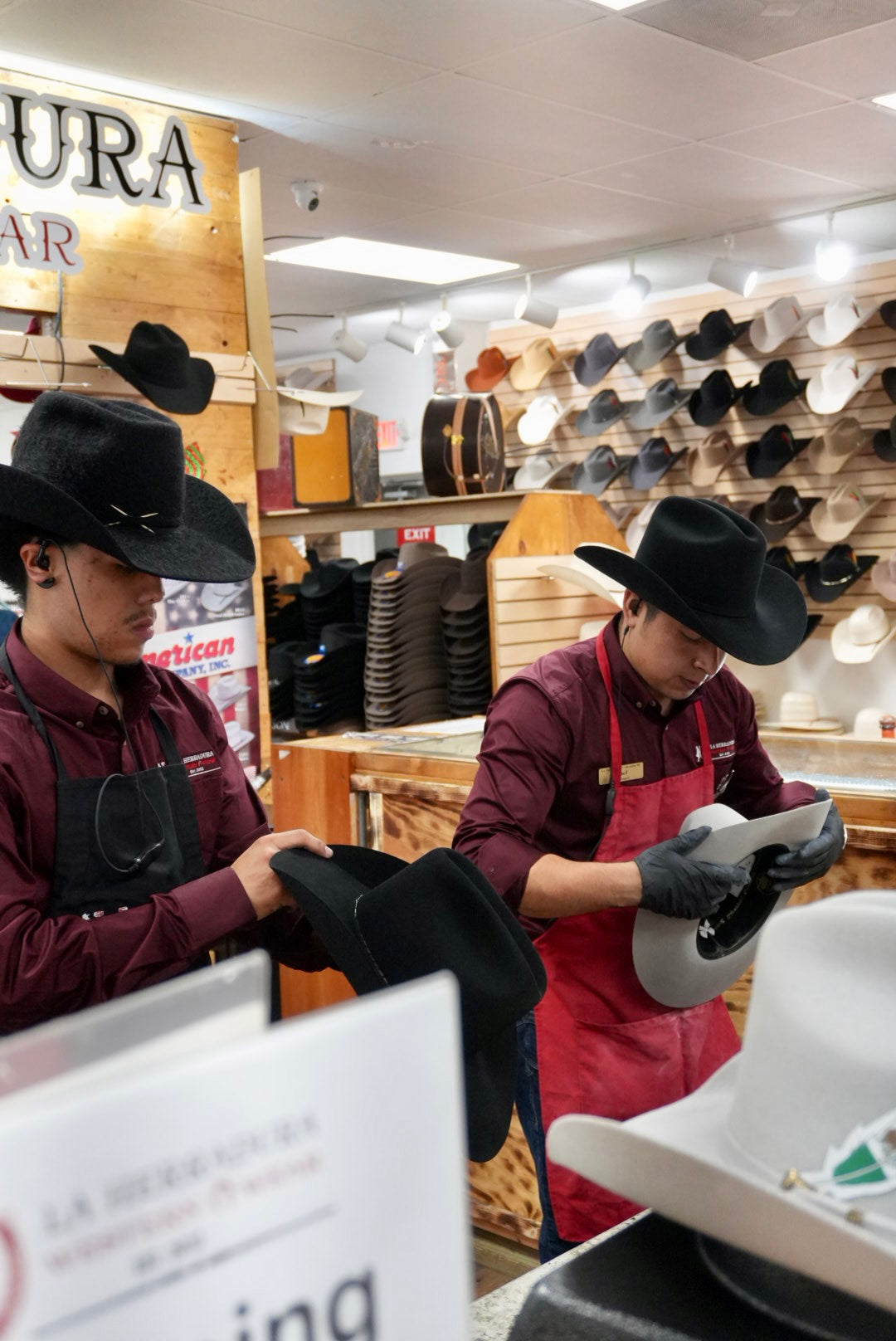 At La Herradura Western Wear, we proudly offer hat shaping and cleaning services! These services are accessible at both of our physical store locations! All our work is done to the liking of the client!
