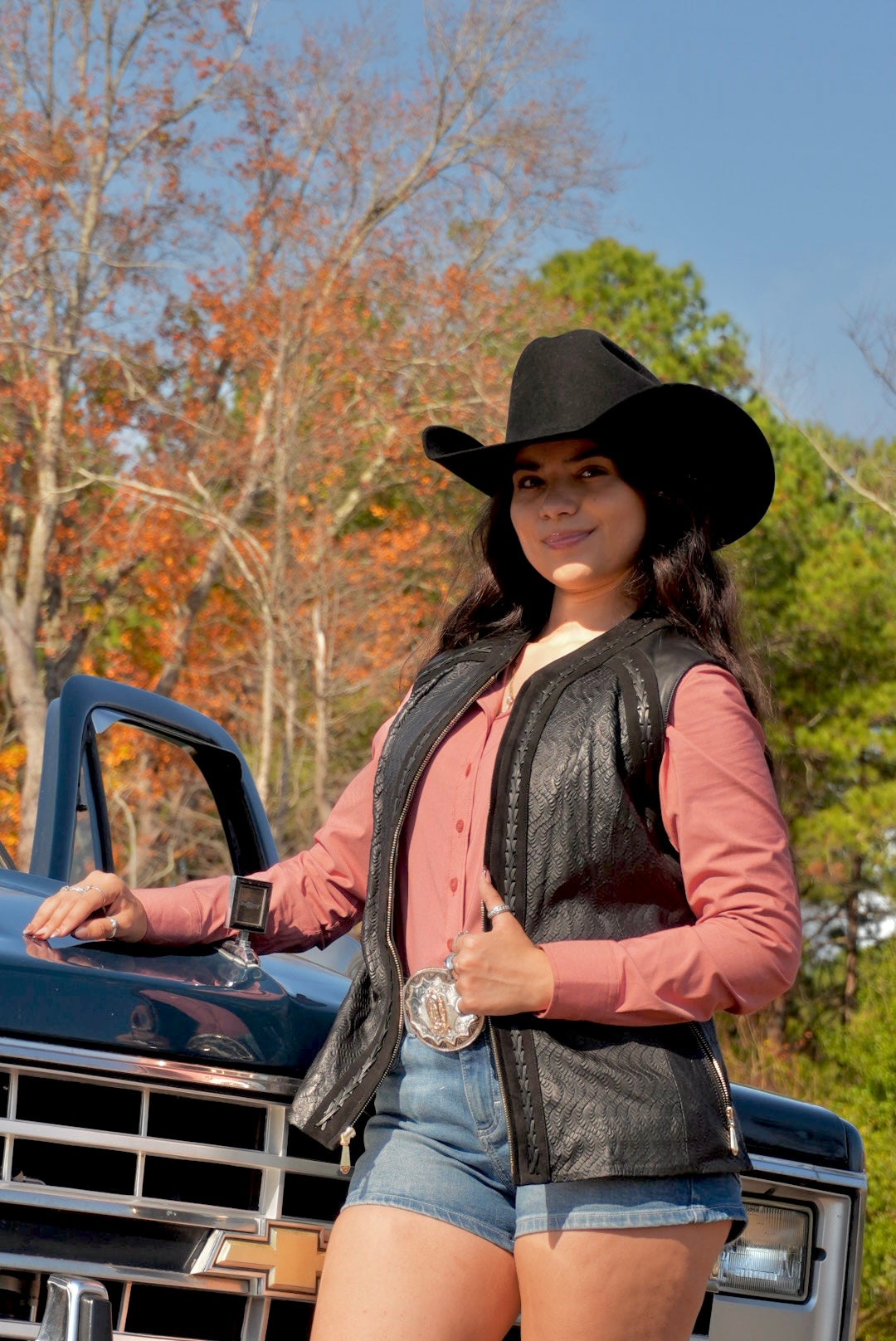 Uncover the impeccable ensemble fashioned in fine leather.