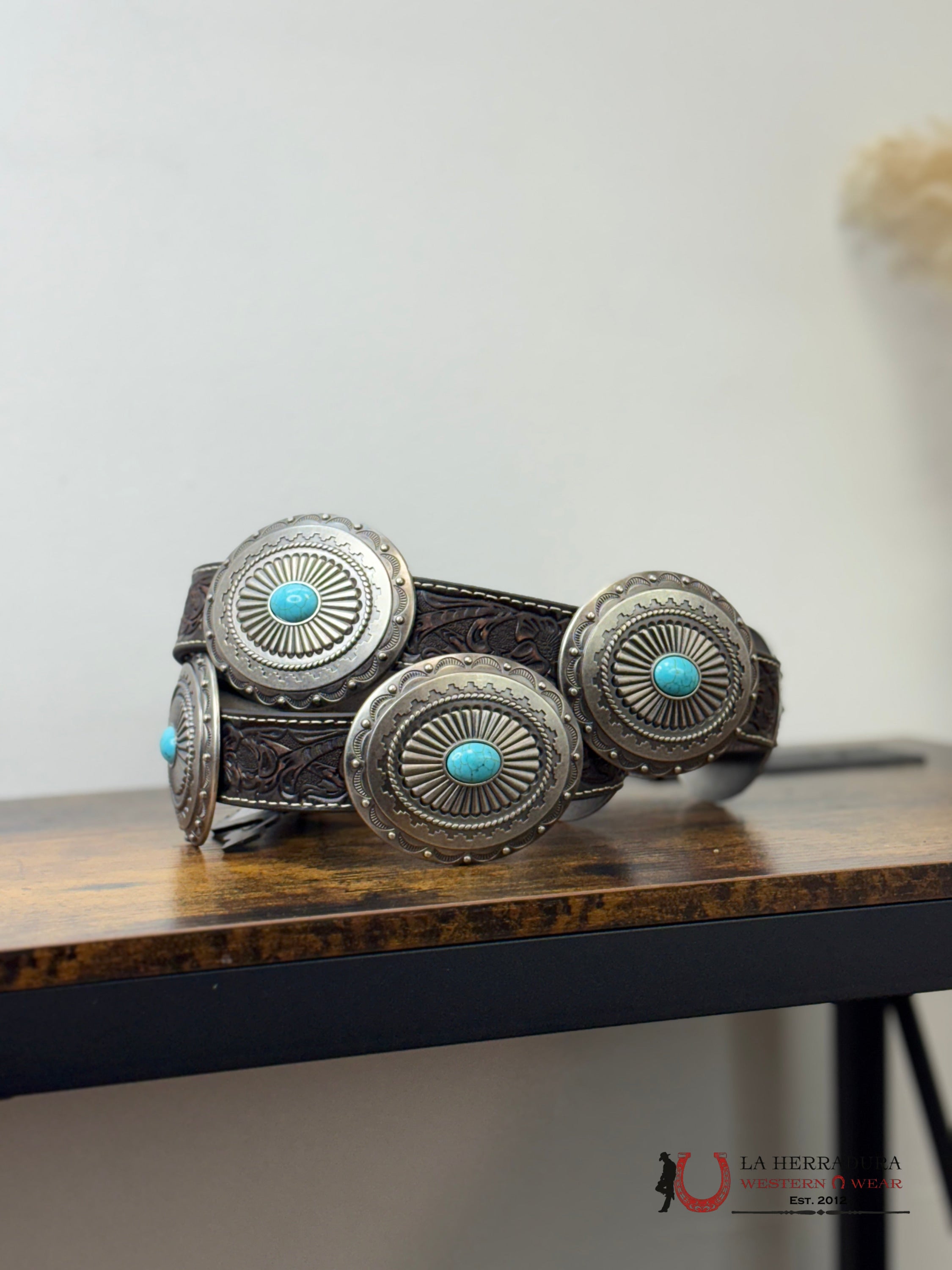 ARIAT WOMENS BELT BROWN WITH TURQUOISE BUCKLE- A1530902