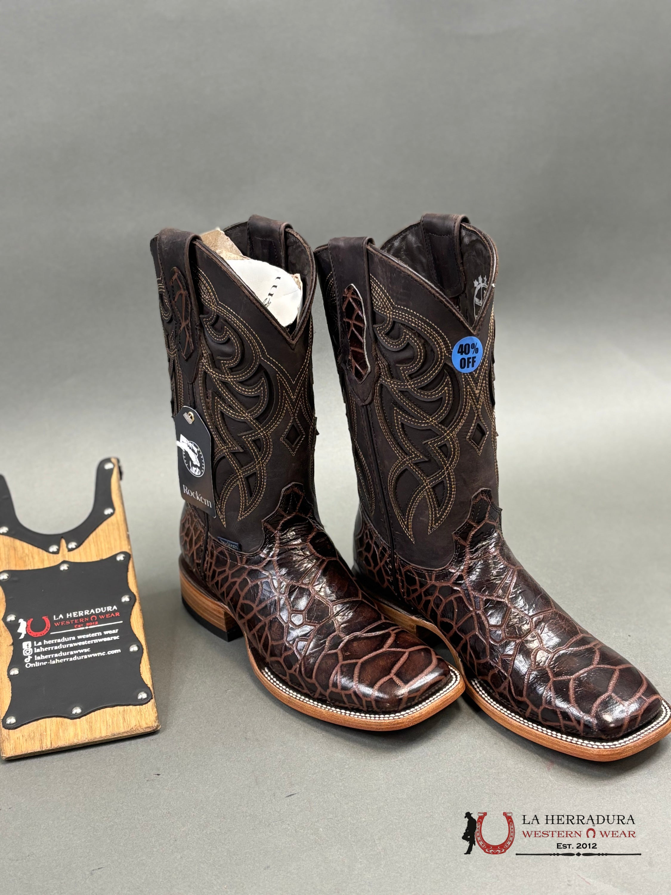 ROCKEM IMIT. BROWN LOMO GRANDE RUSTIC SQ. TOE BOOT