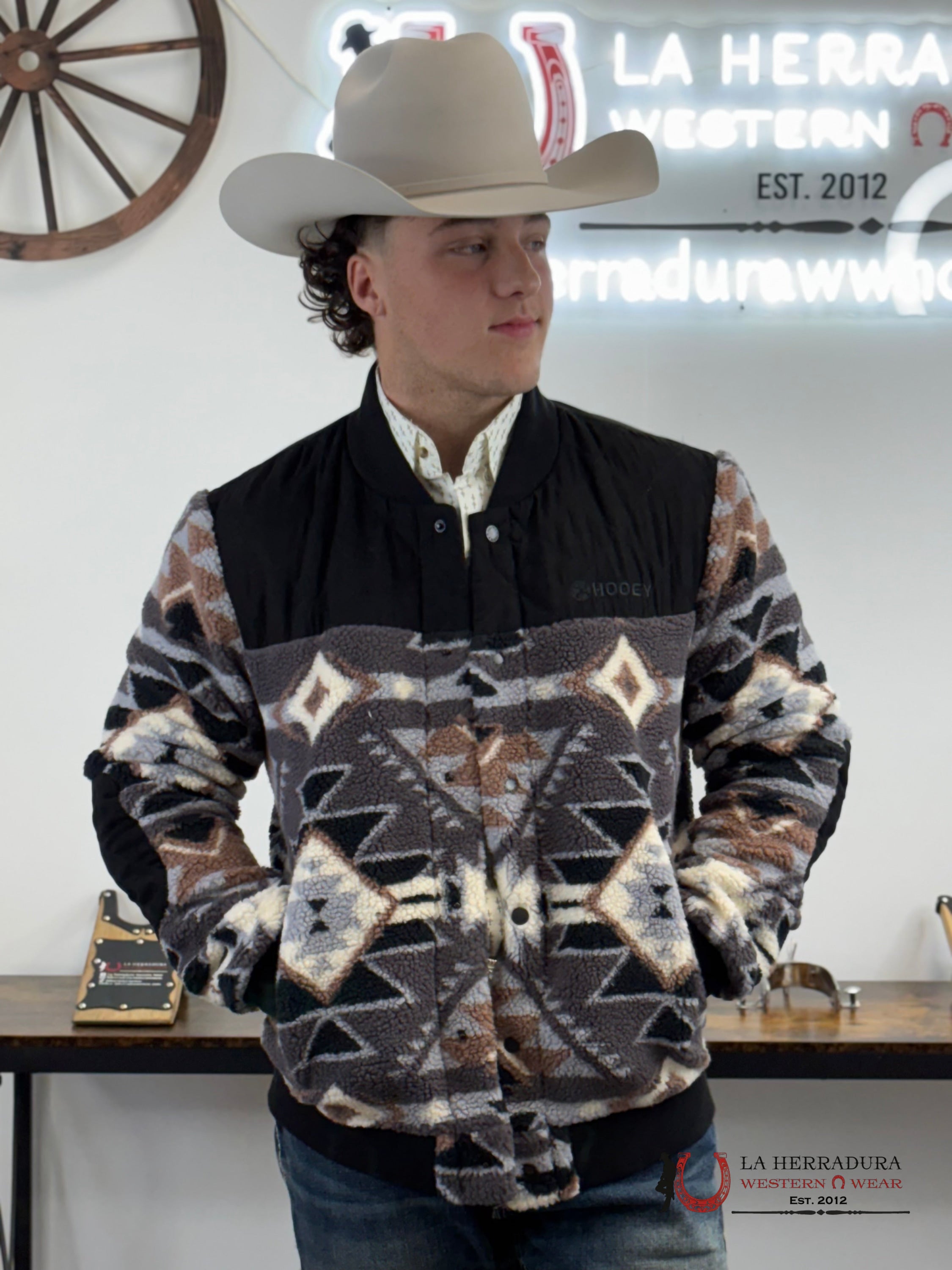 Hooey® Men's SHERPA BOMBER JACKET BLACK AZTEC-HJ132AZBK