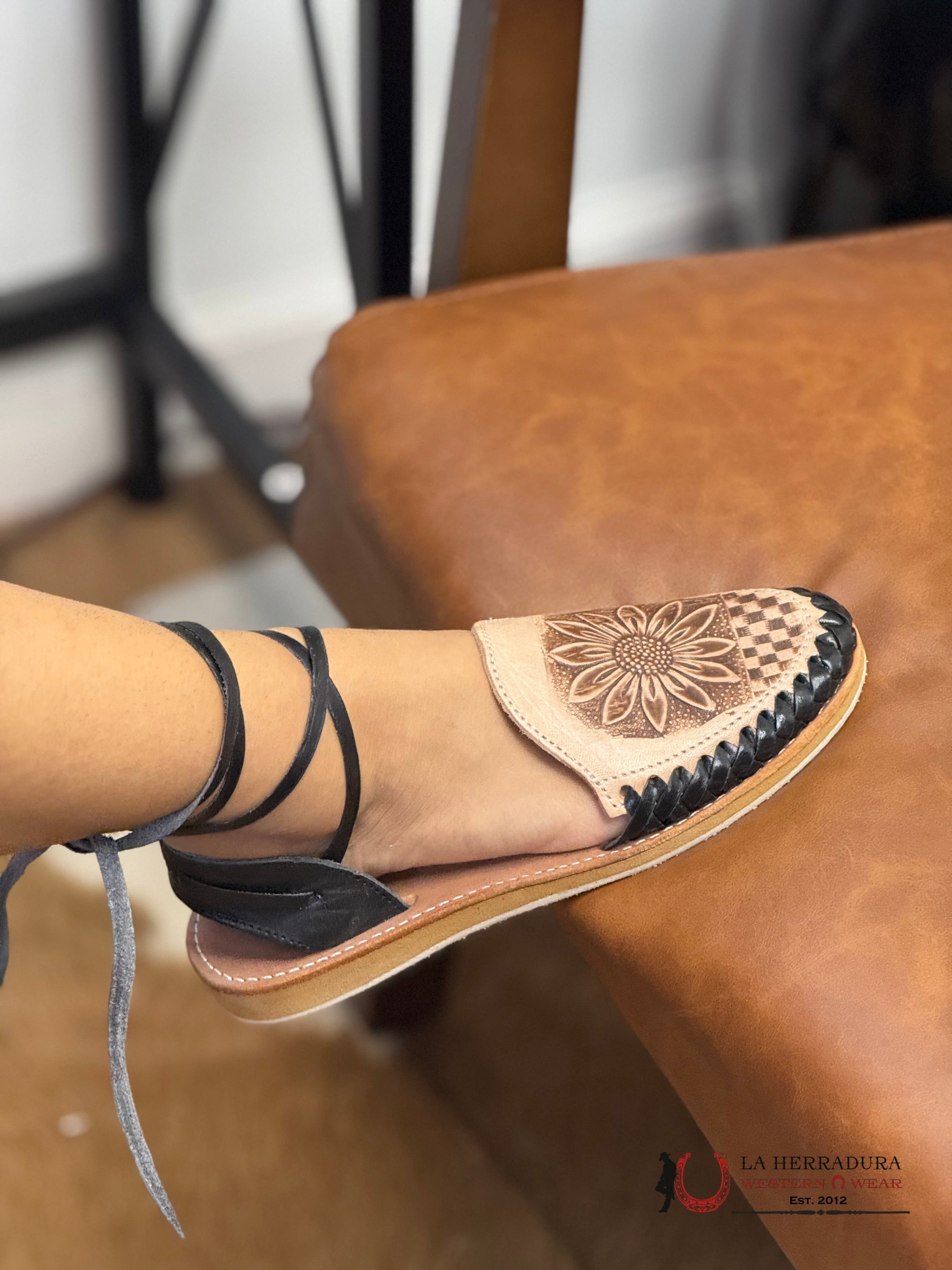 WOMEN HUARACHE 05 GIRASOL PINTADO A MANDO NEGRO