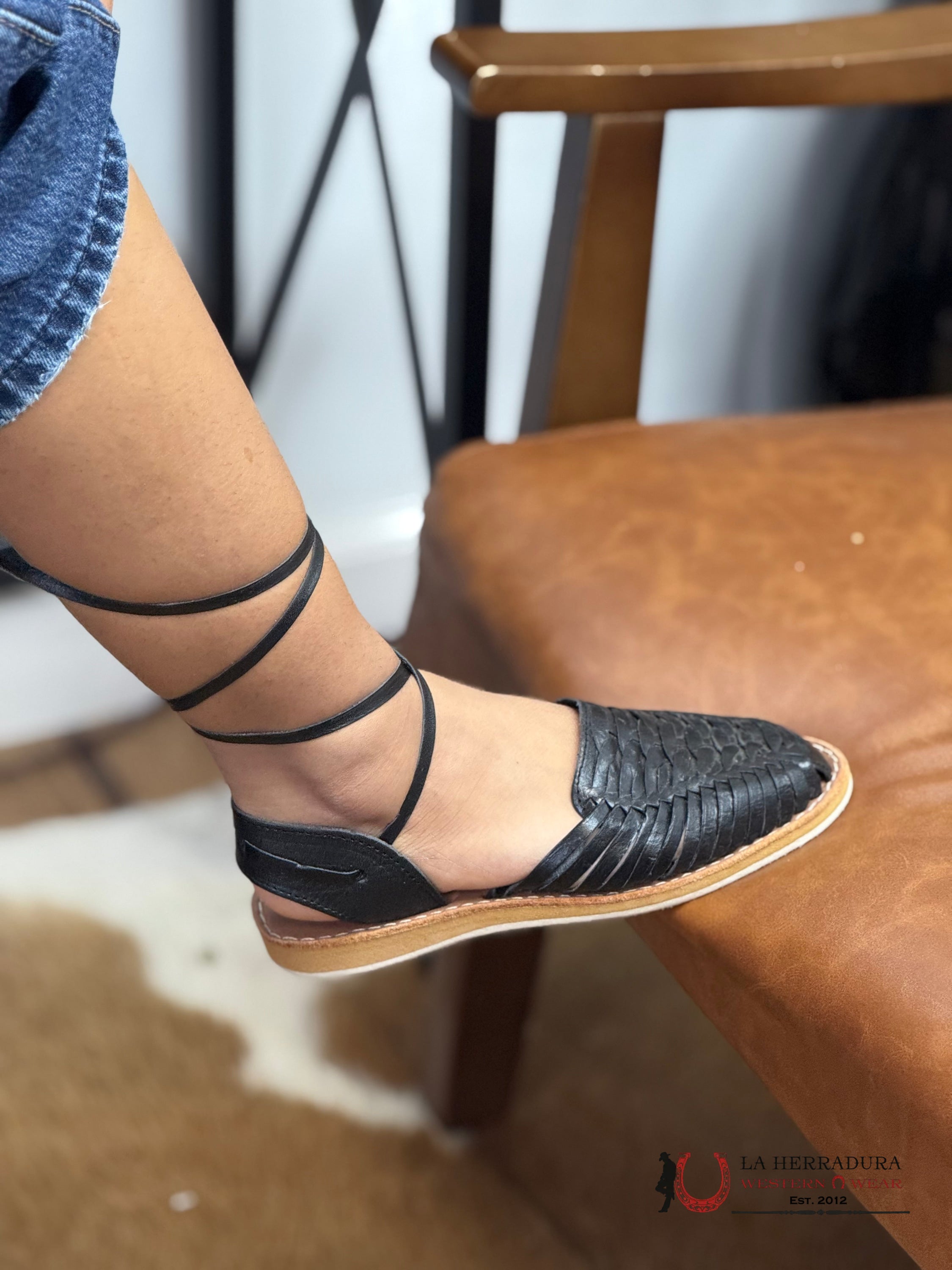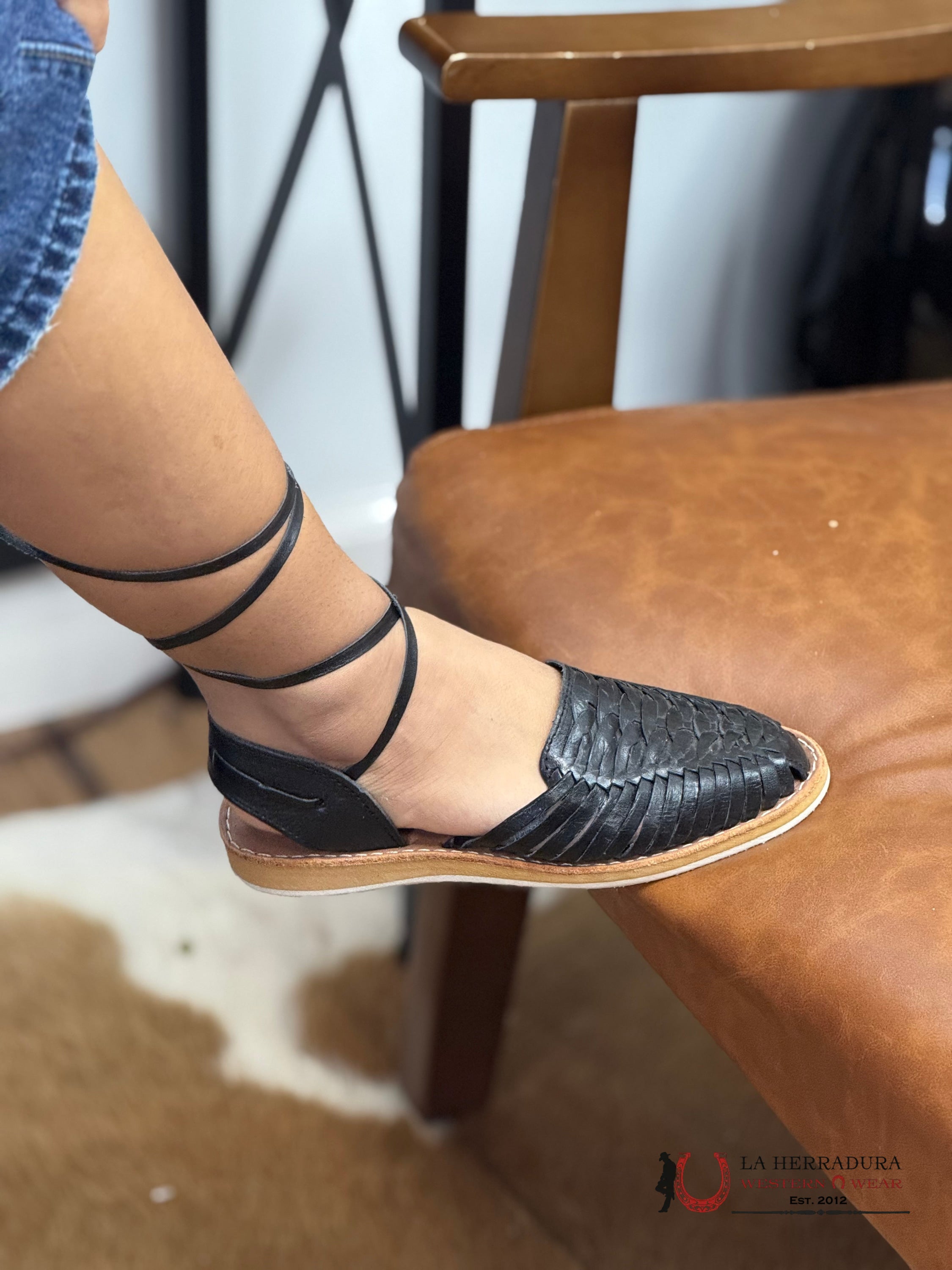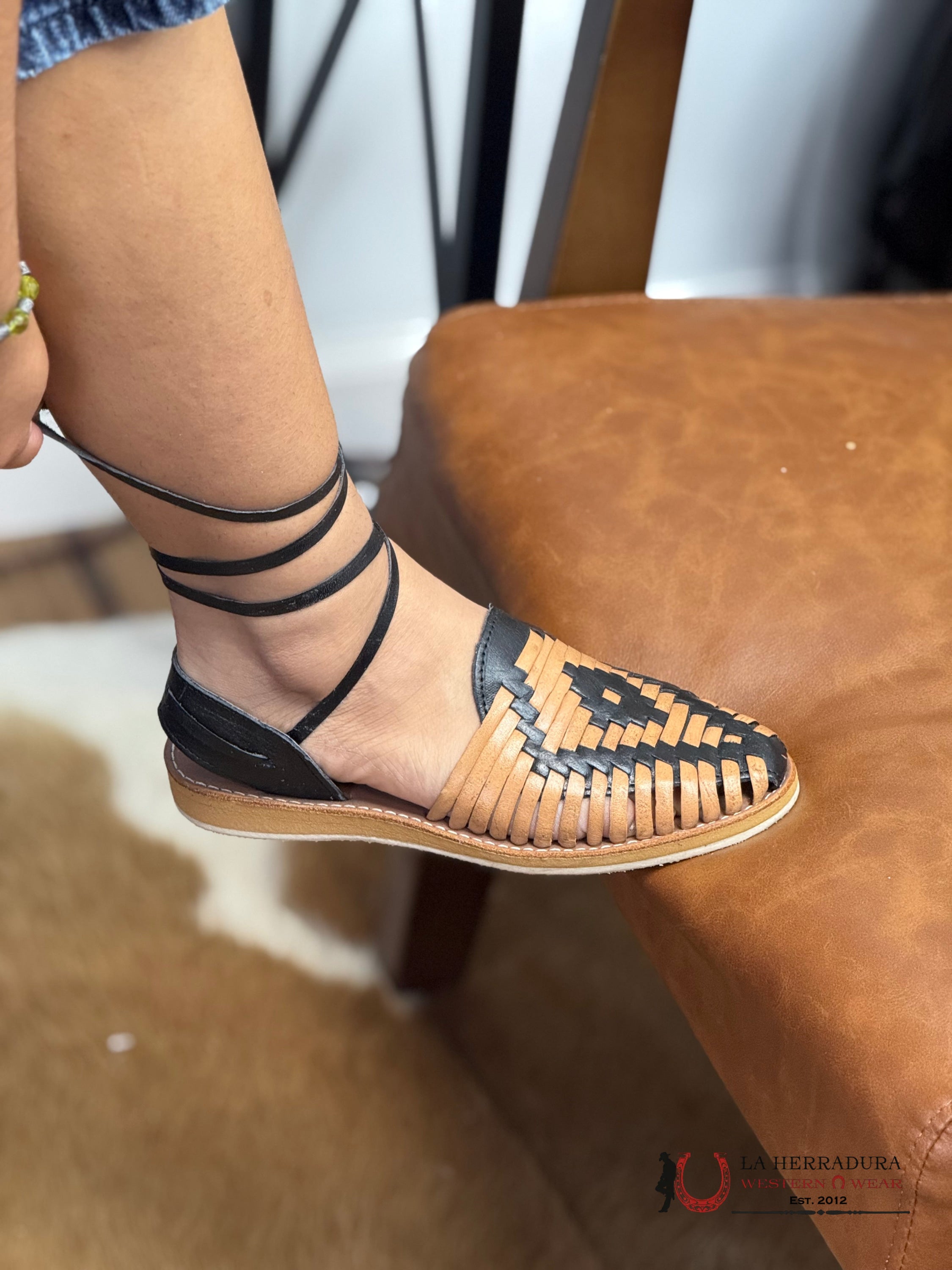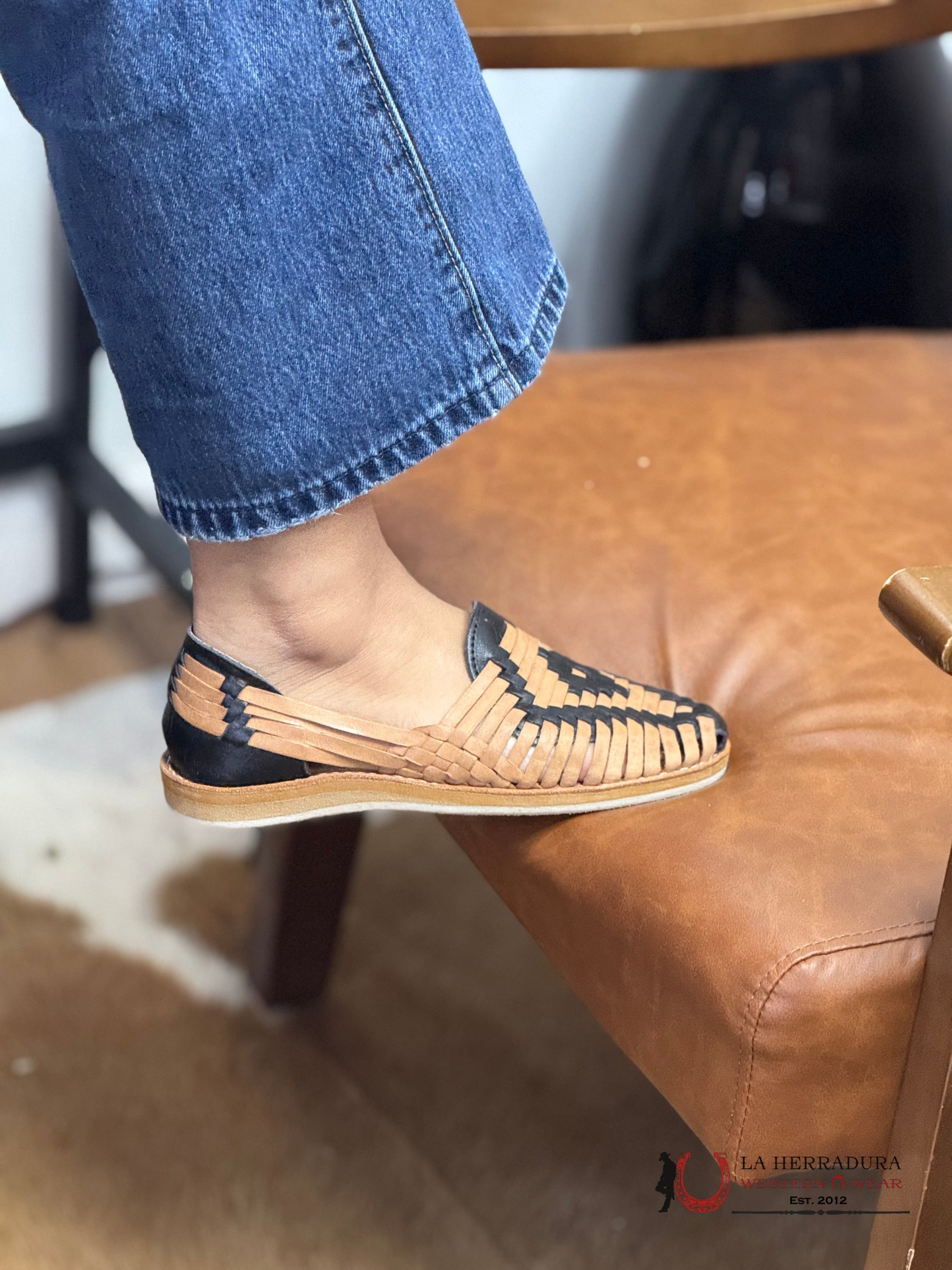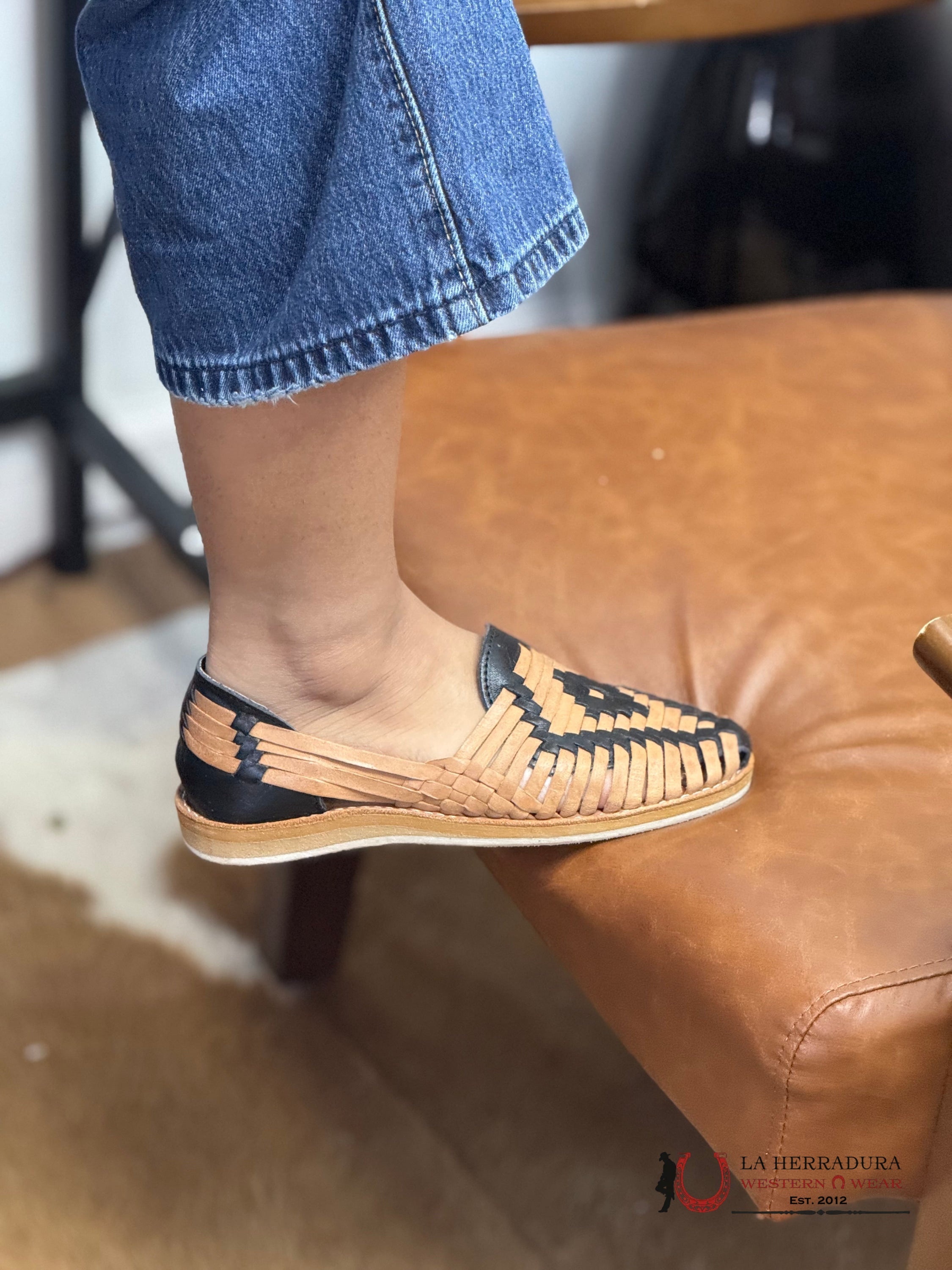 WOMEN HUARACHE 4150 TALON PICADO NEGRO CORREA TAN 1