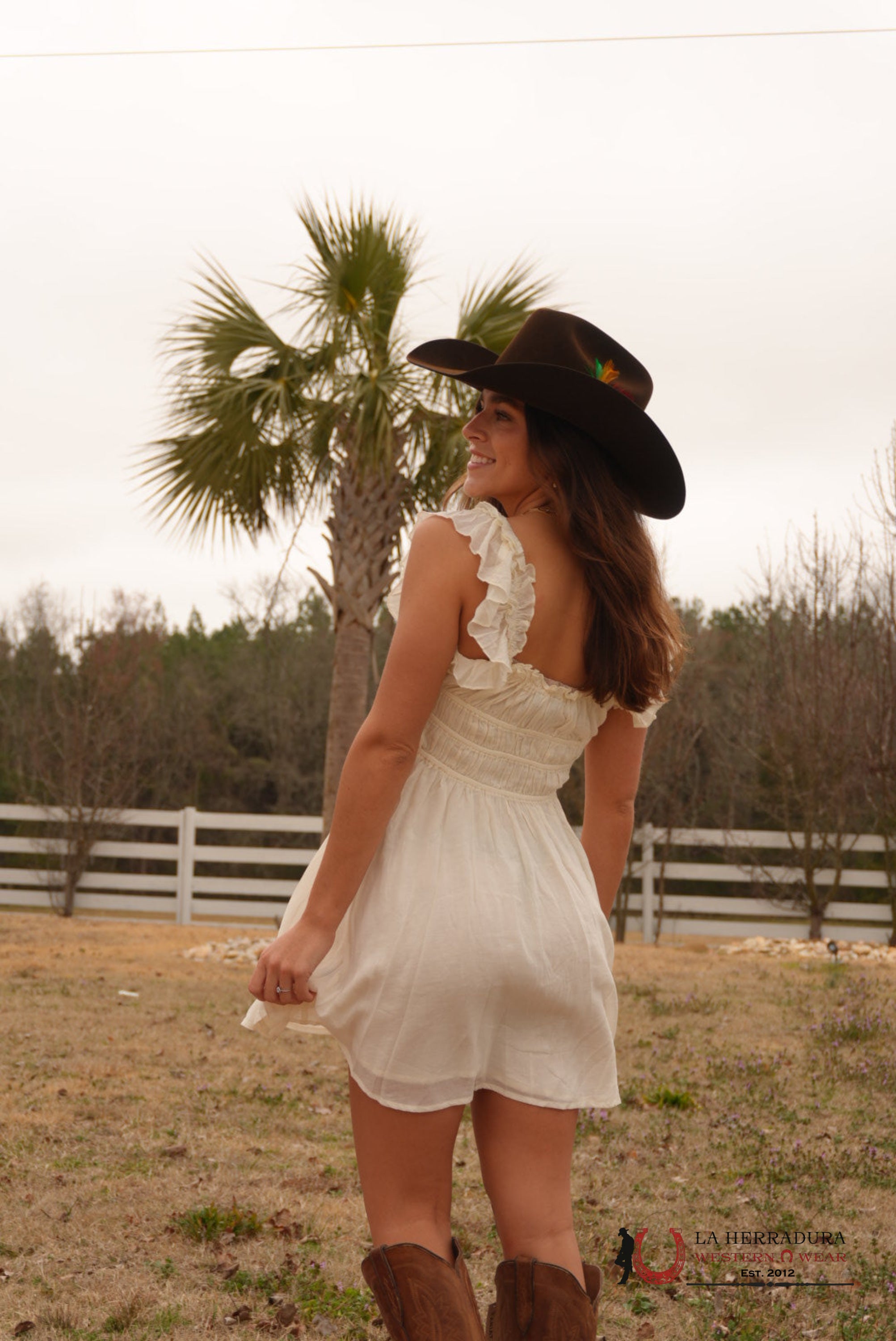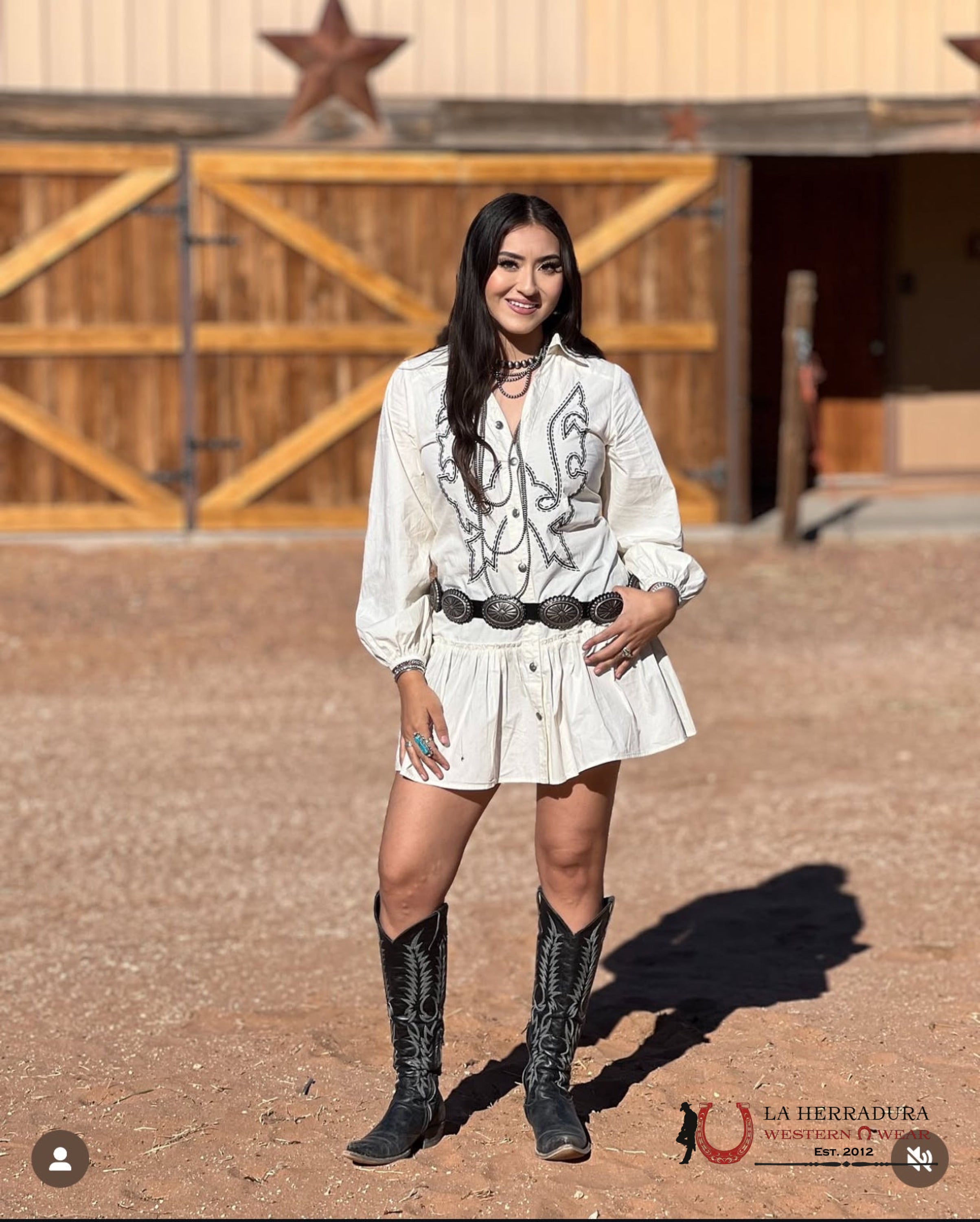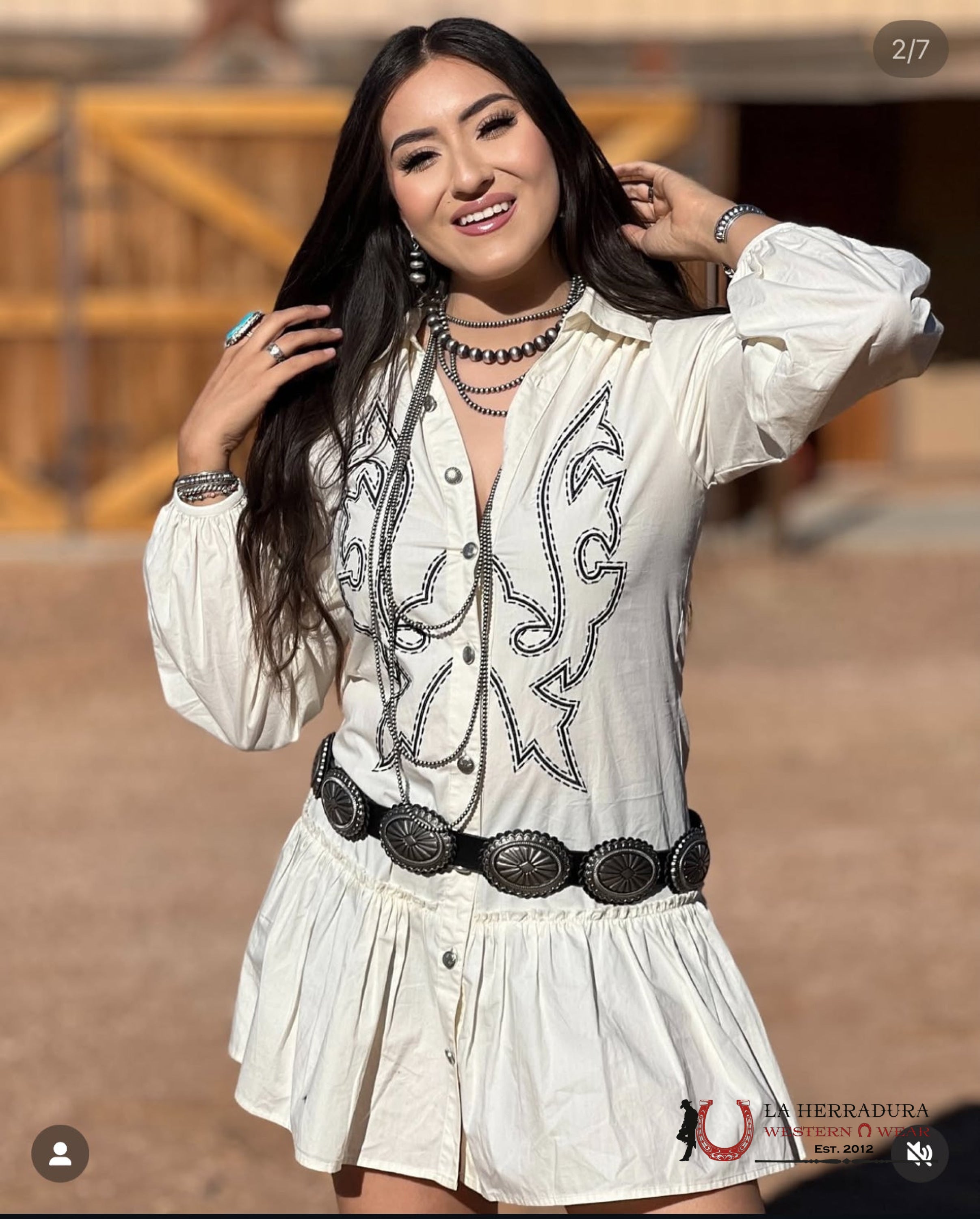 LUCKY WOMAN AND BLESSED WHITE LONG SLEEVE WITH COWBOY PRINT DRESS