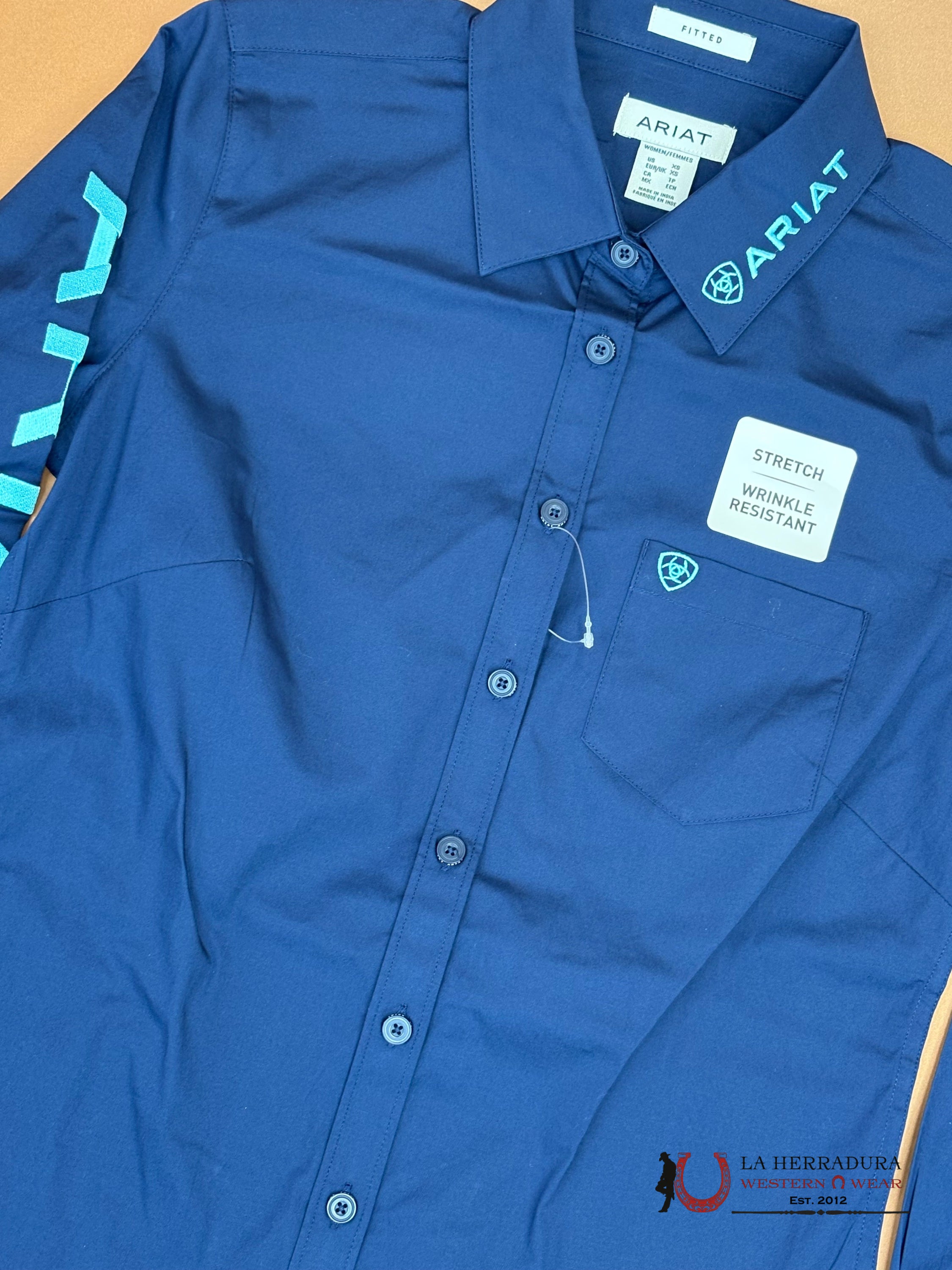 WOMEN ARIAT KIRBY PRO TEAM LONG SLEEVE SHIRT BLUE TURQUOISE 10054758