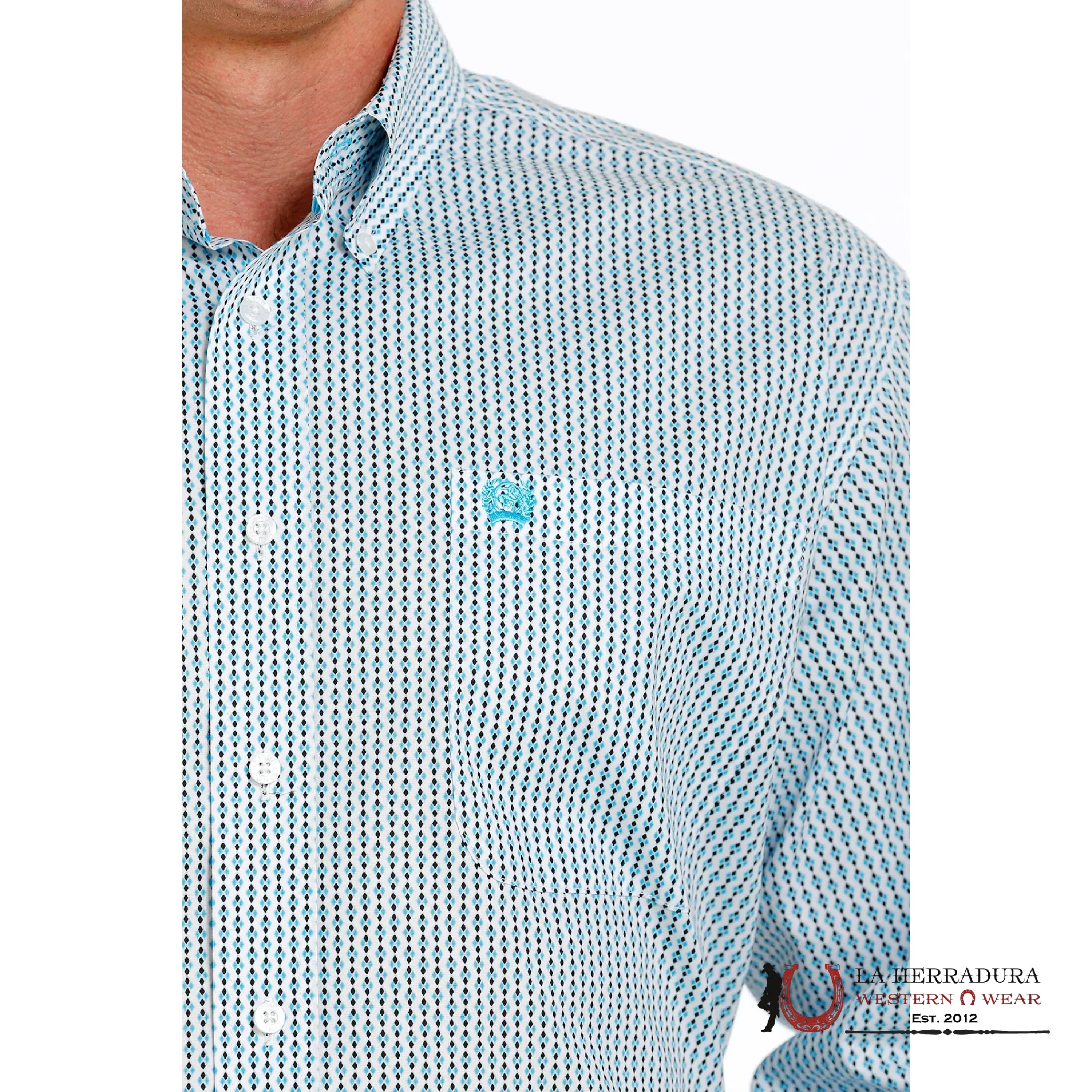 CINCH WHITE/TEAL GEOMETRIC PRINT - MENS SHIRT - MTW1105932