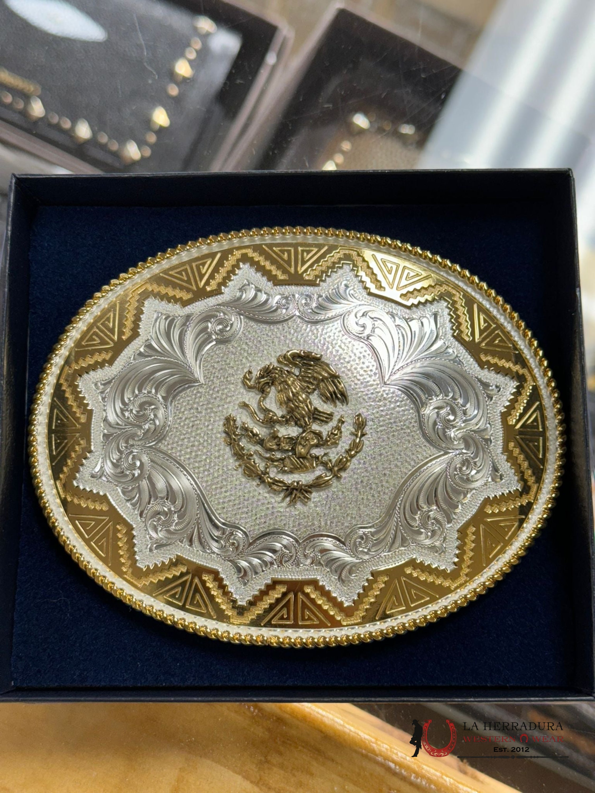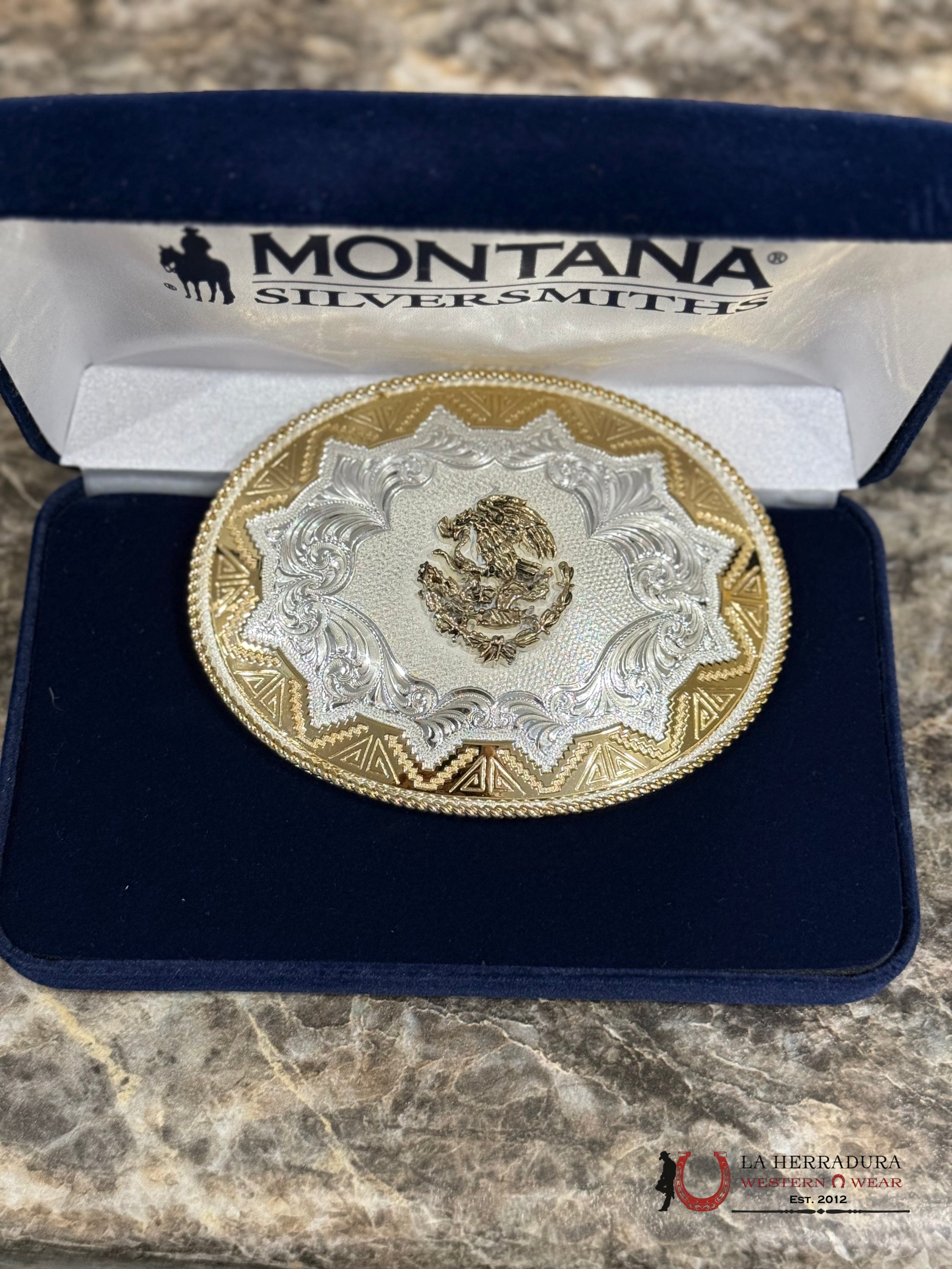 MONTANA SILVERSMITH SCALLOPED SOLVEE MEIXO FLAG ENGRAVED BUCKLE