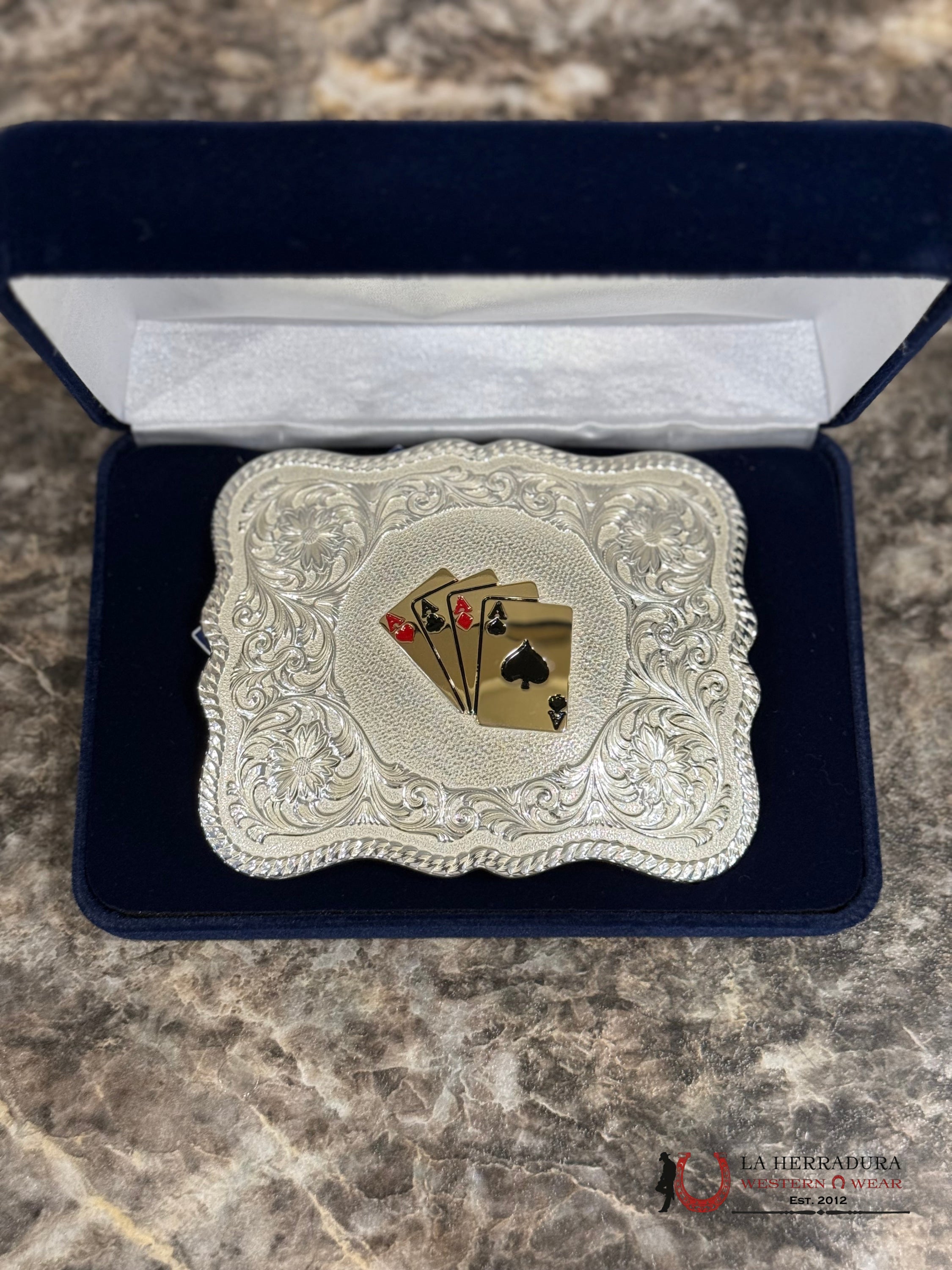 MONTANA SILVERSMITH TWO TONE CANTLE ROLL BUCKLE 4-ACES