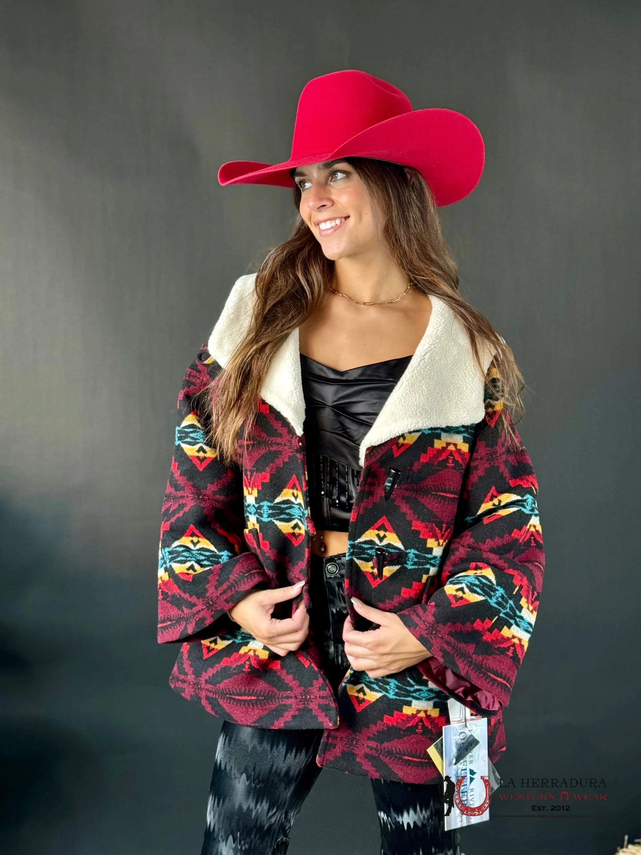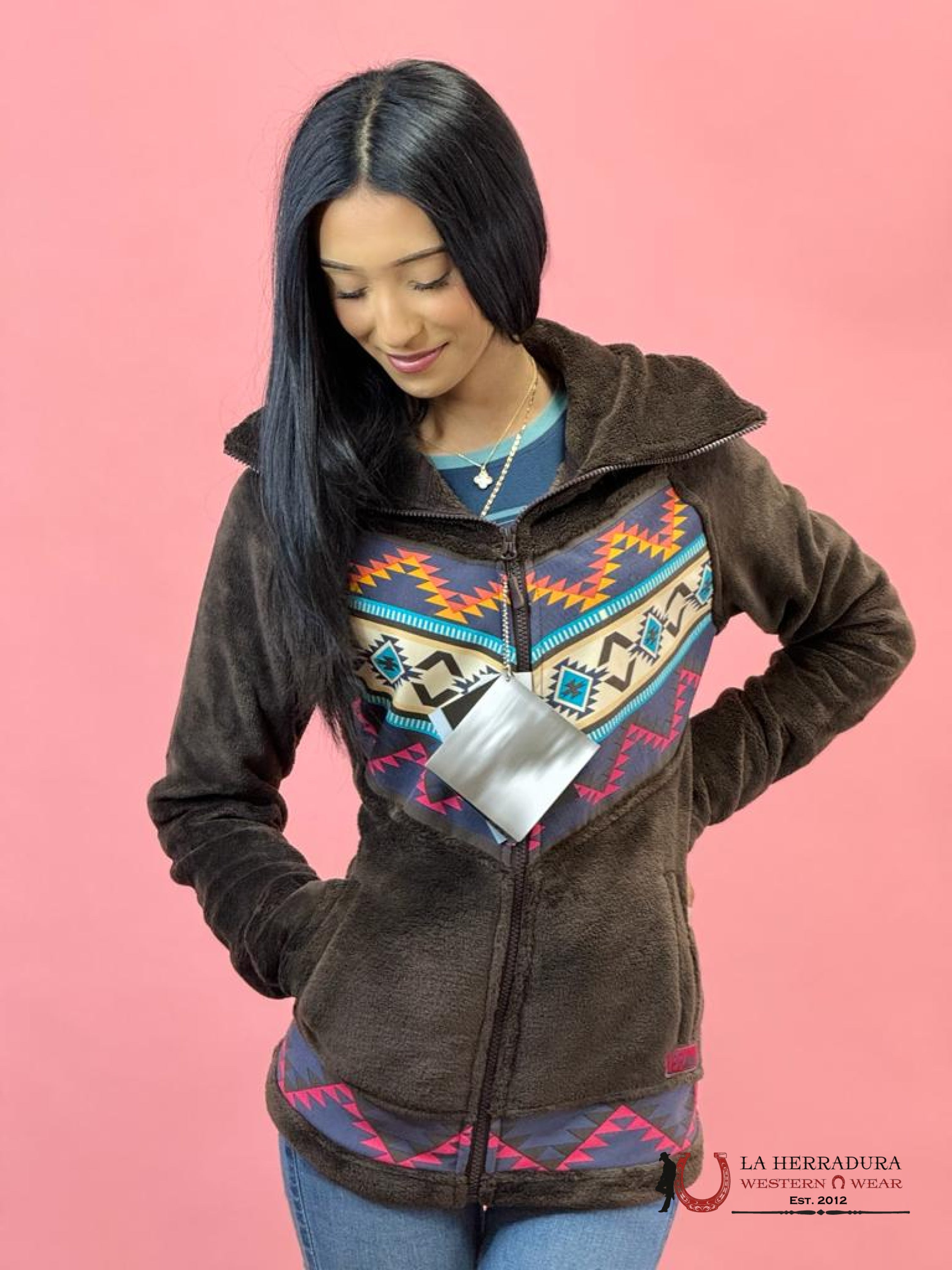 ROCK AND ROLL WOMEN JACKET CHOCOLATE AZTEC SHERPA JACKET BW92C02110