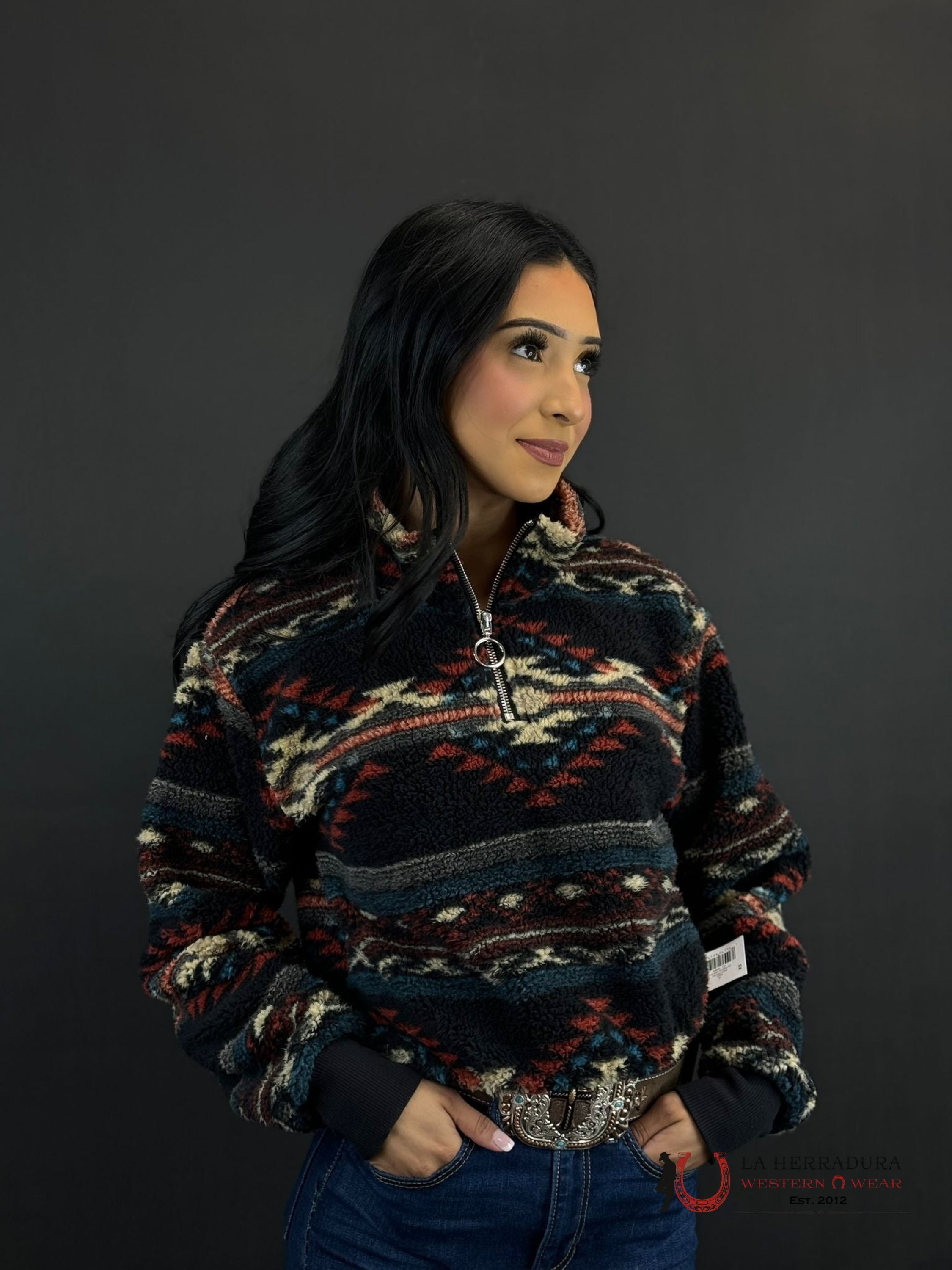 PANHANDLE WOMEN AZTEC BERBER CHOCOLATE PULLOVER DW91C06864