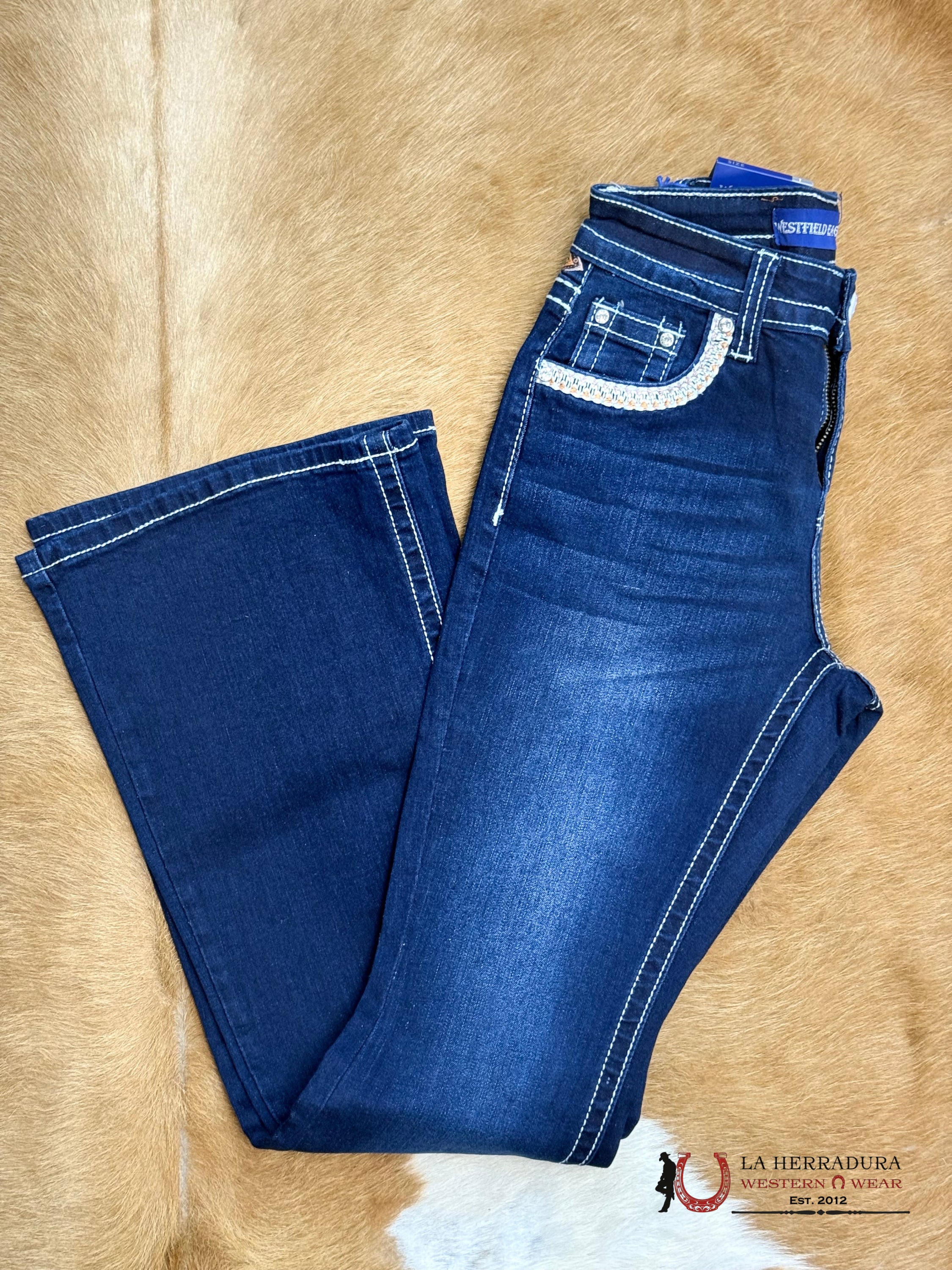 WESTFIELD EAGLE DARK BLUE JEAN WHITE STITCHING & RHINESTONE WT-730