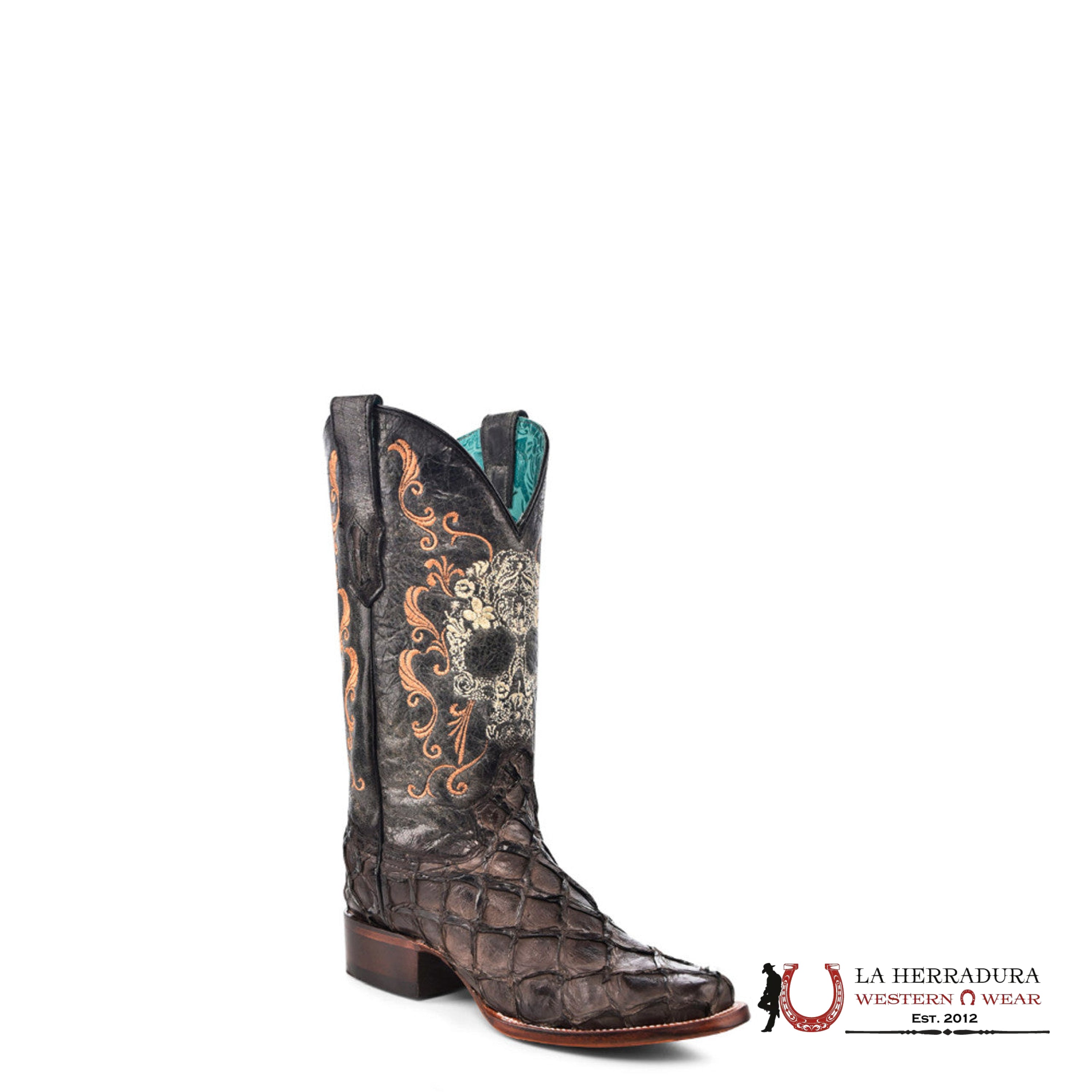 CORRAL BLACK FISH PIRARUCU EMBROIDERY SKULL NARROW SQ. TOE -A4576