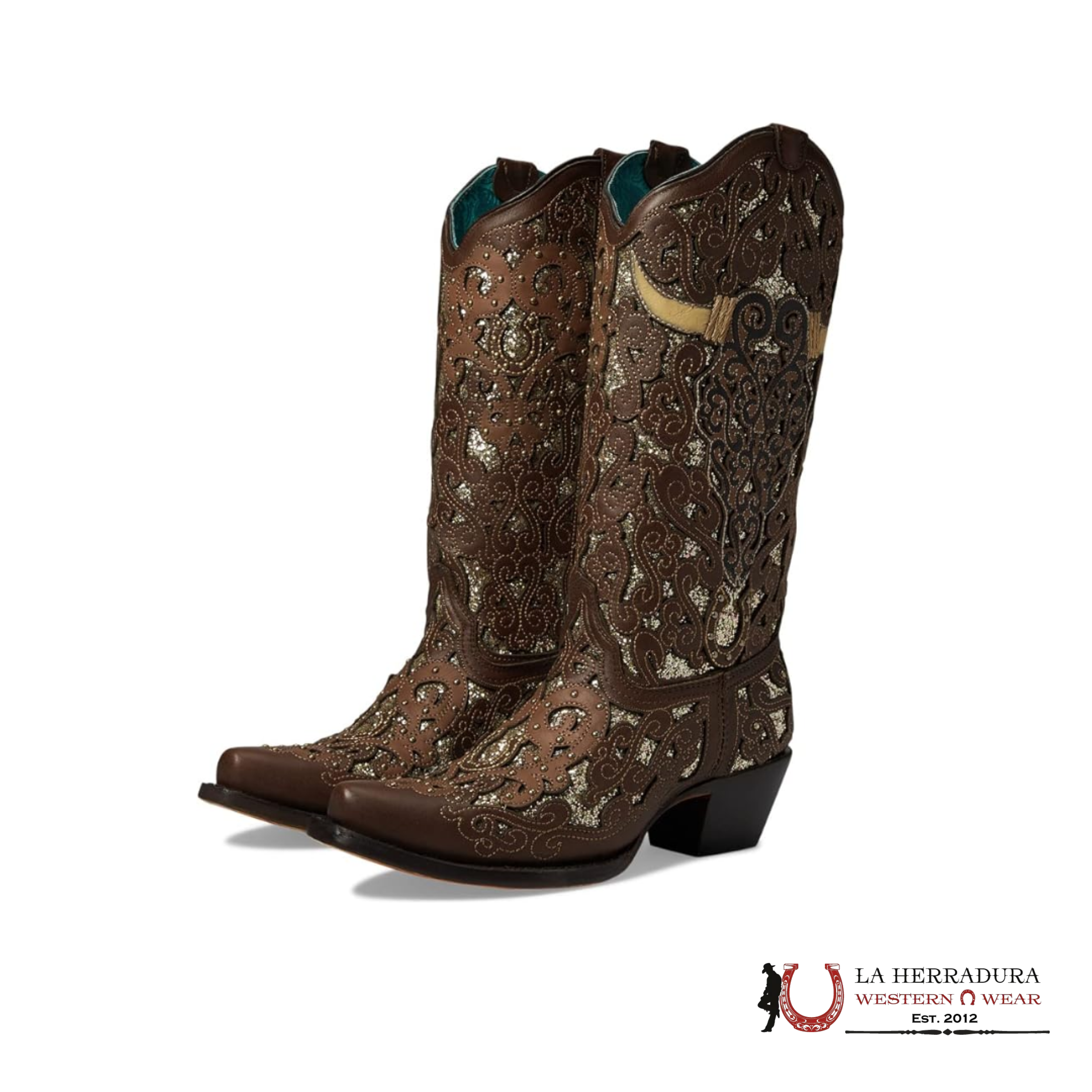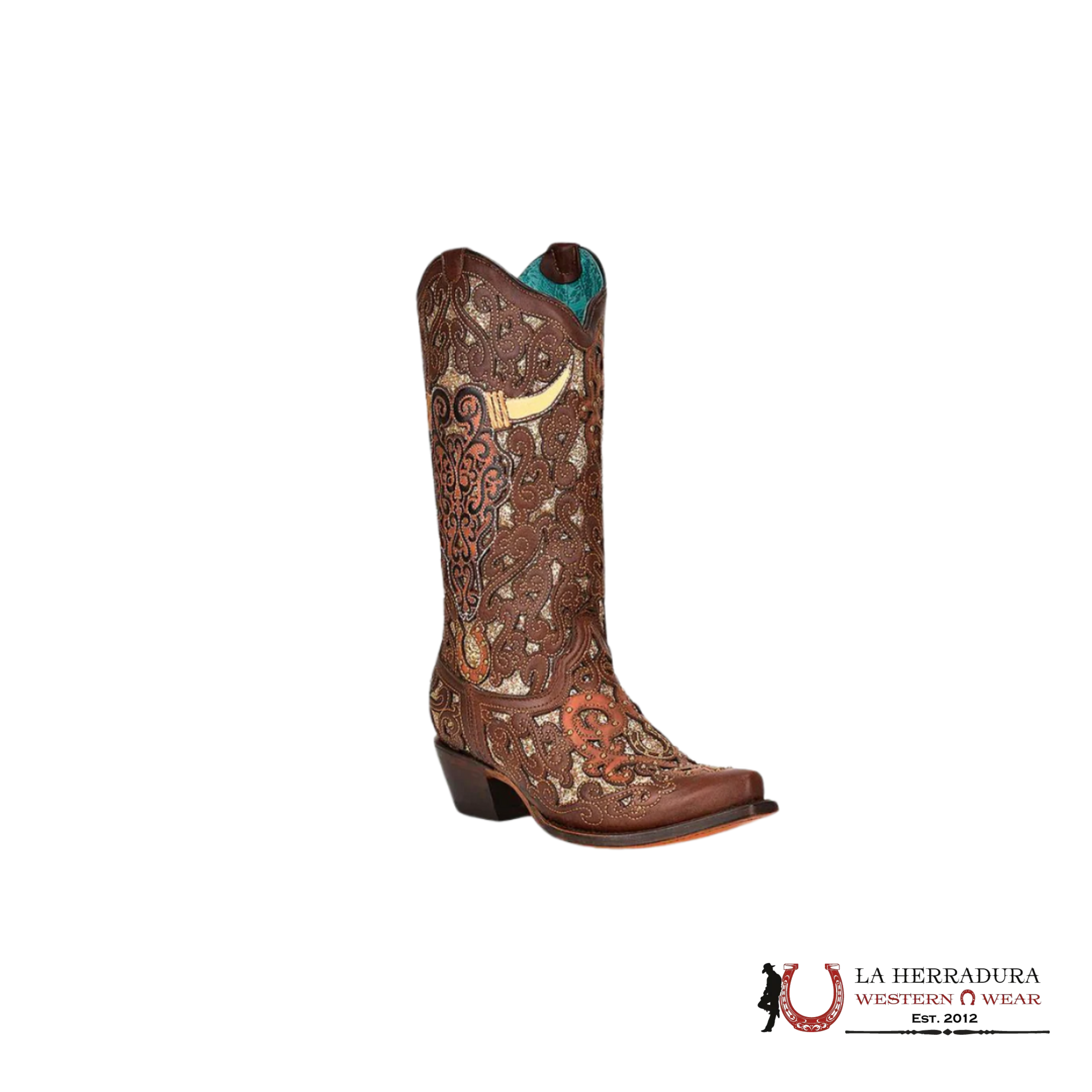 CORRAL BROWN GLITTER INLAY & BULL SKULL EMBROIDERED POINT TOE - A4407