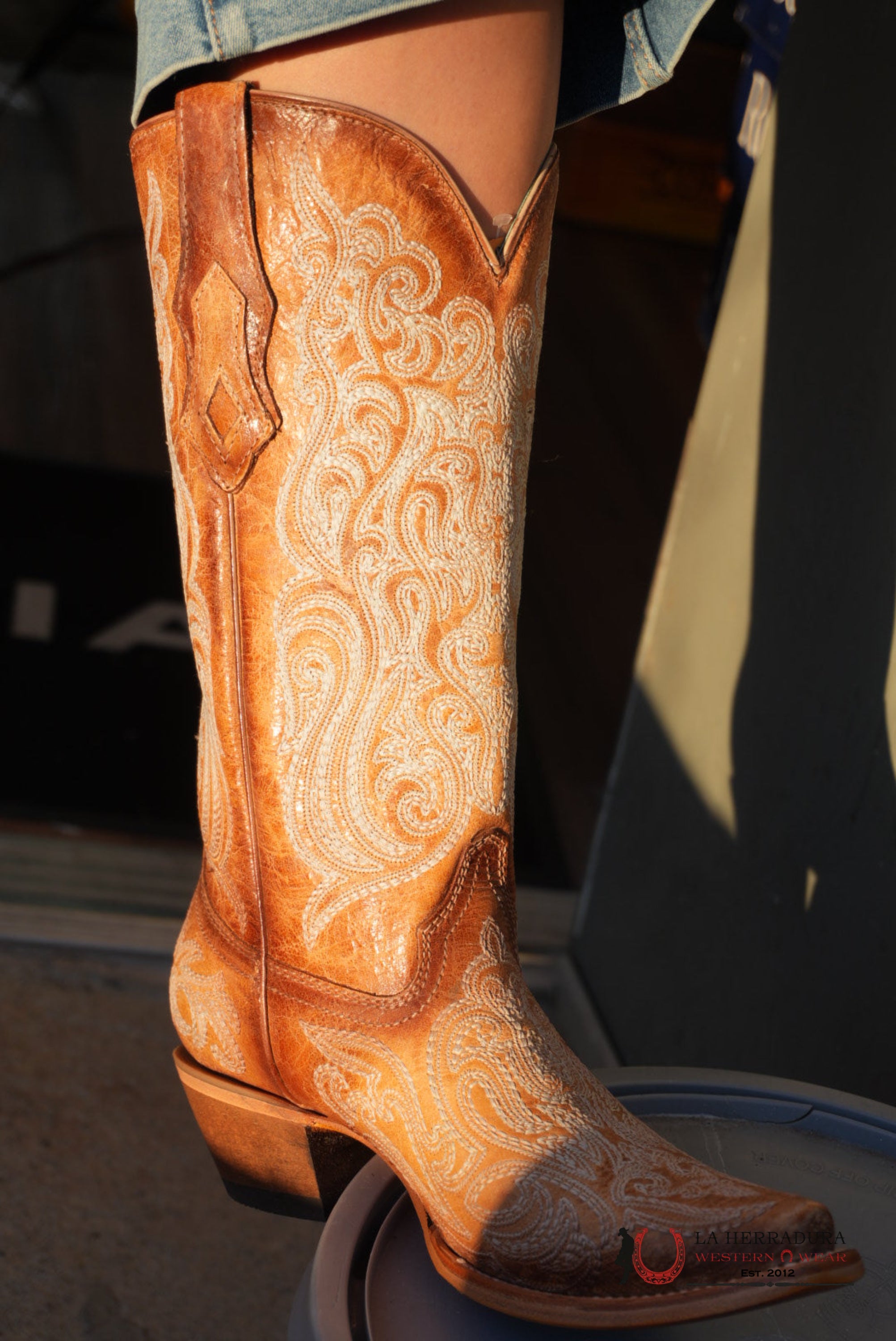 CORRAL TALL BOOT TAN EMBROIDERY J TOE -A4793