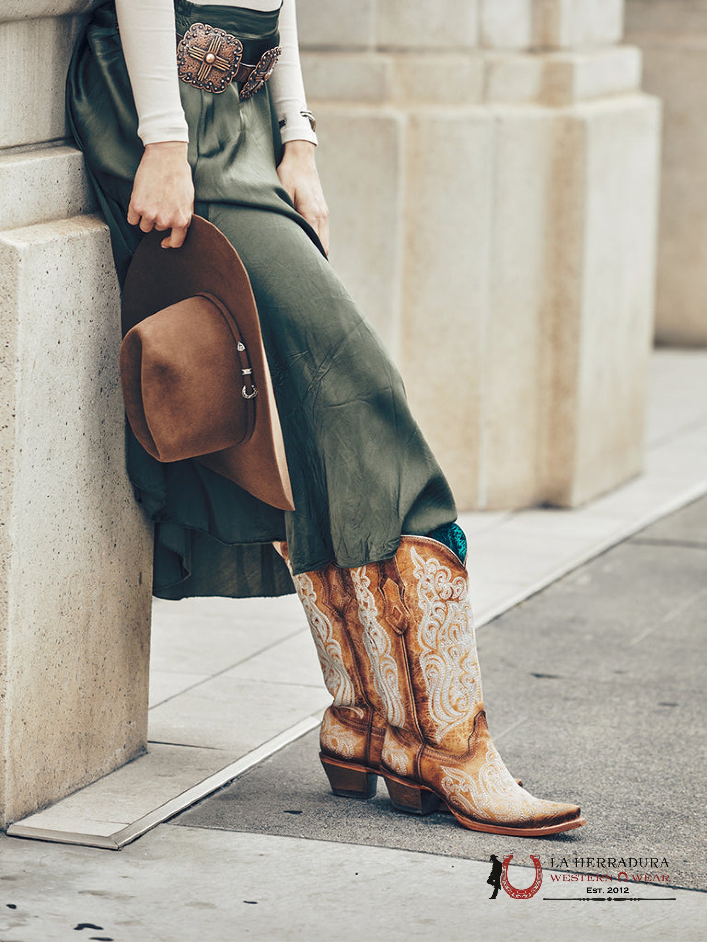 CORRAL LD WHISKEY FLORAL INLAY AND EMBROIDERY C3673