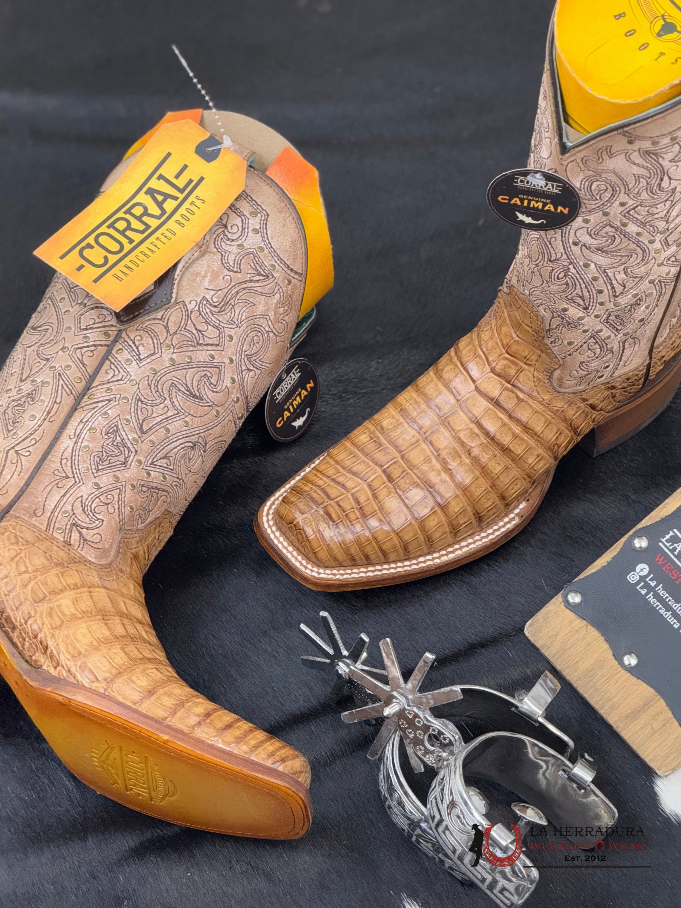 CORRAL HONEY CAIMAN EMBROIDERY & STUDS NARROW SQ. TOE -A4566