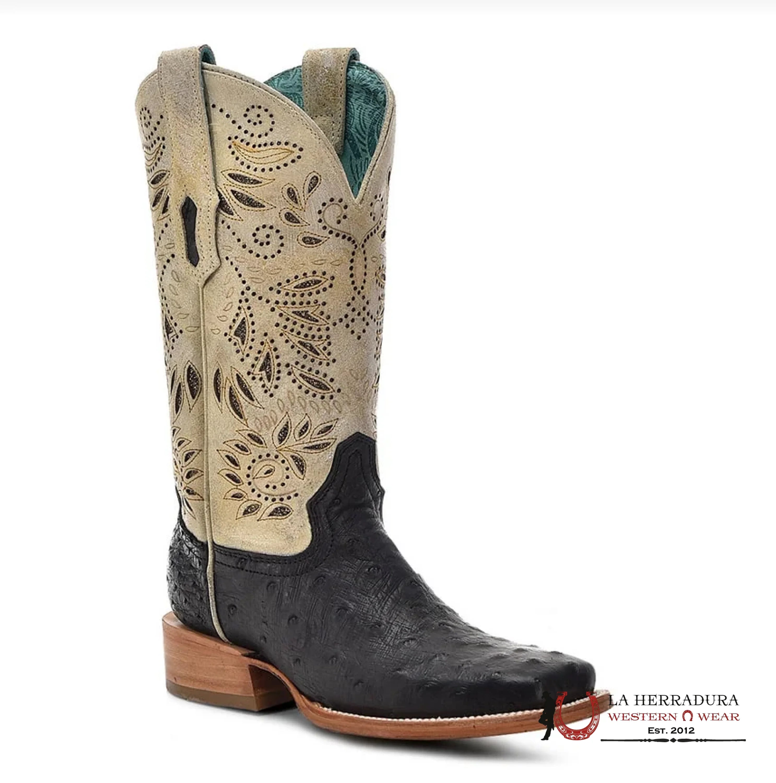 CORRAL LD BLACK/BONE OSTRICH EMBROIDERY & GLITTER SQ. TOE A4530