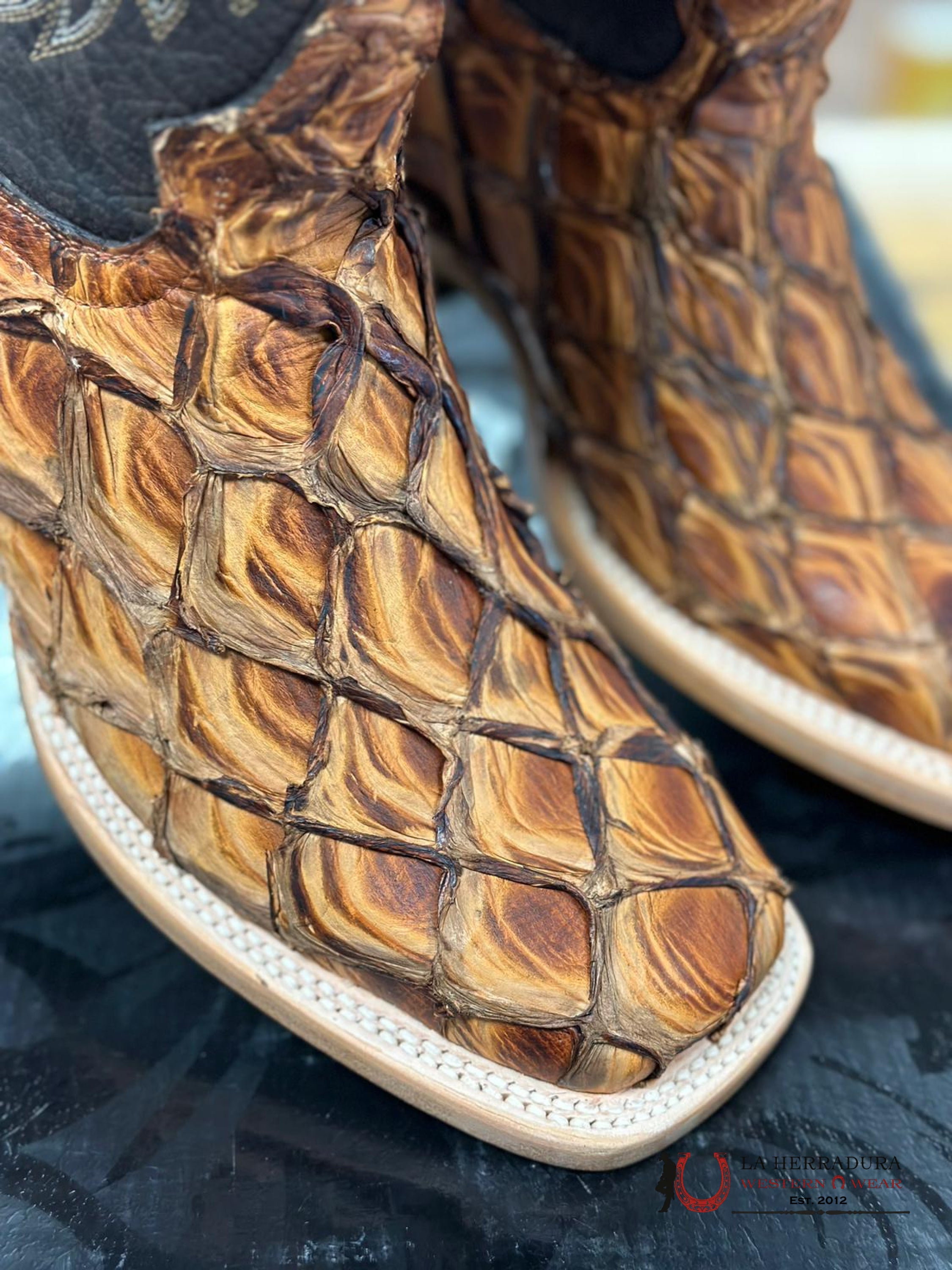 BOTAS TANNER MARK PUNTA CUADRADA COGNAC PIEL DE PESCADO EXÓTICO