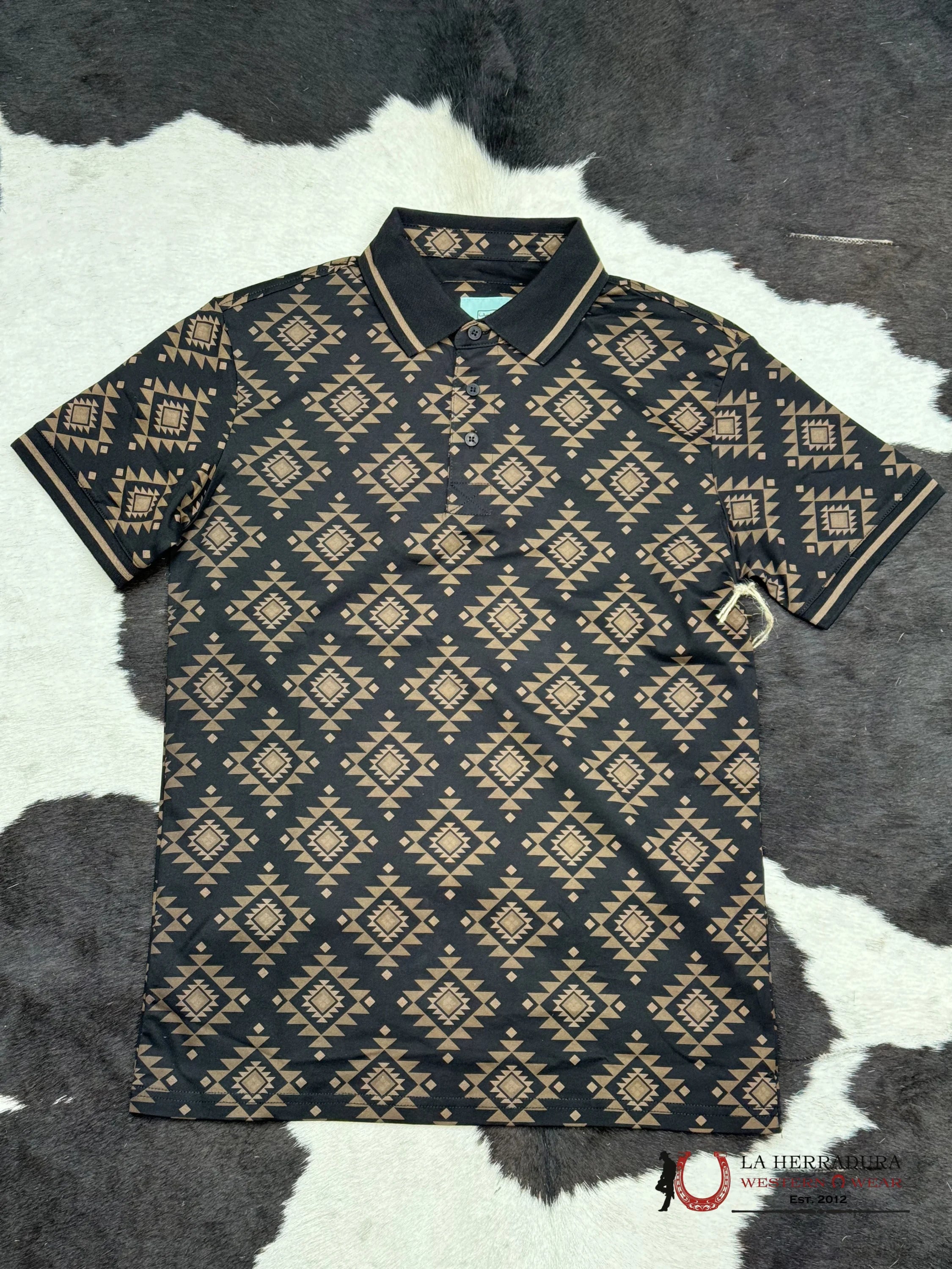 BLACK / BROWN POLO AZTEC SHORT SLEEVE SHIRT BLACK