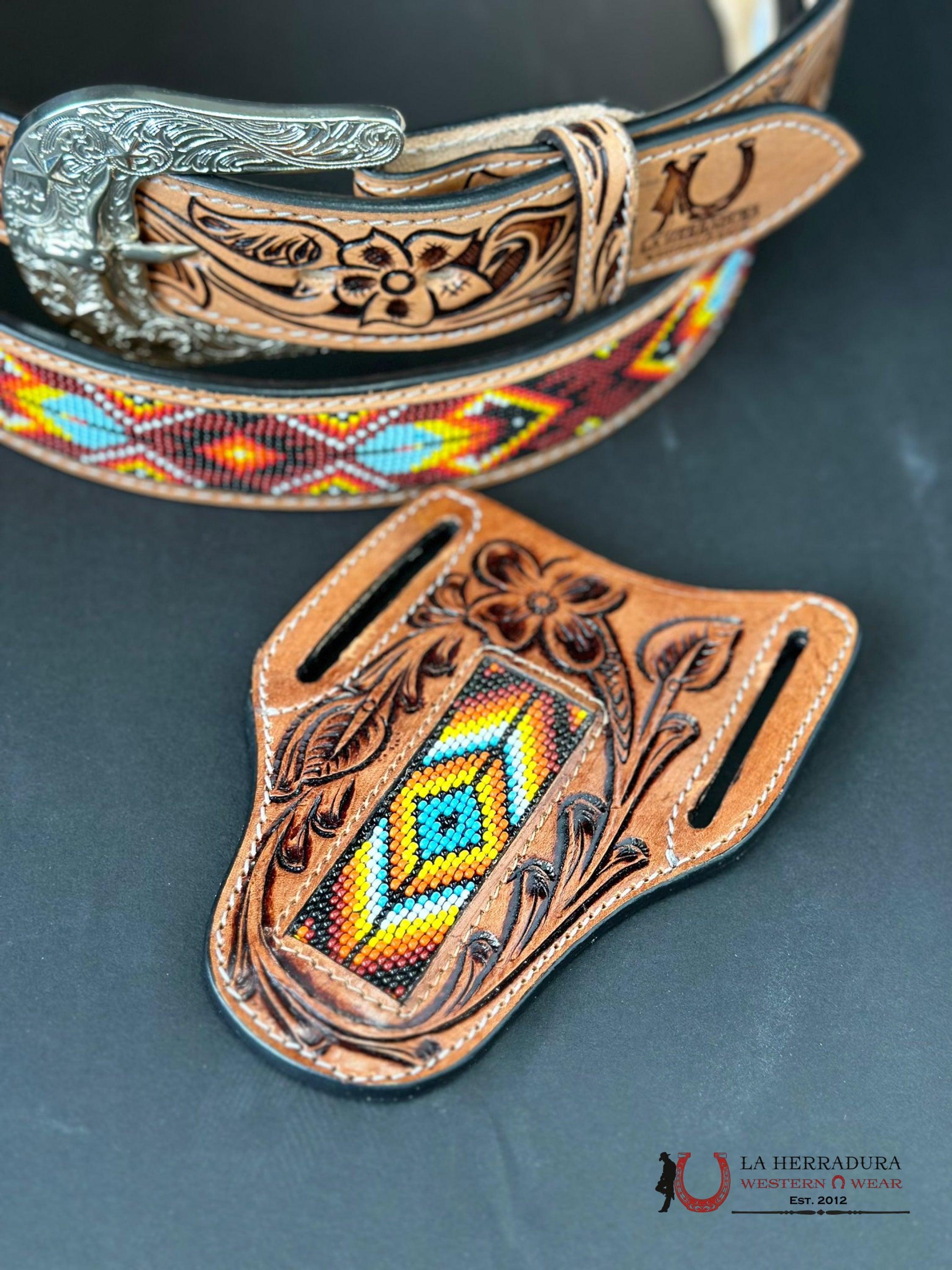 Cinto Azteca Cuero Cincelado Rojo / Amarillo Only Belt