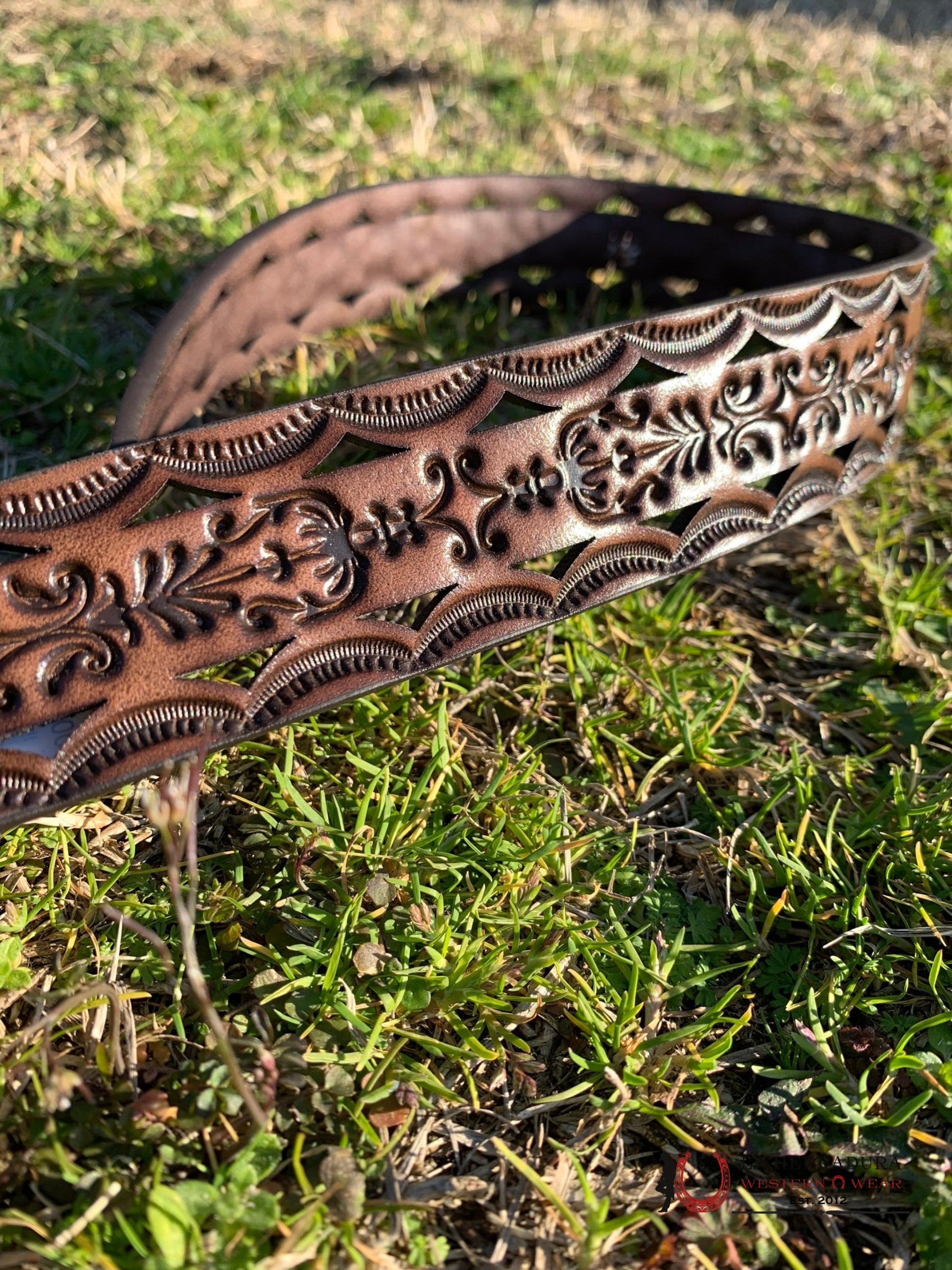 Elaborado con piel de primera calidad y está realizado con bordados de flores. La hebilla grabada con flores color PLATA, ahora disponible en todas las tallas.