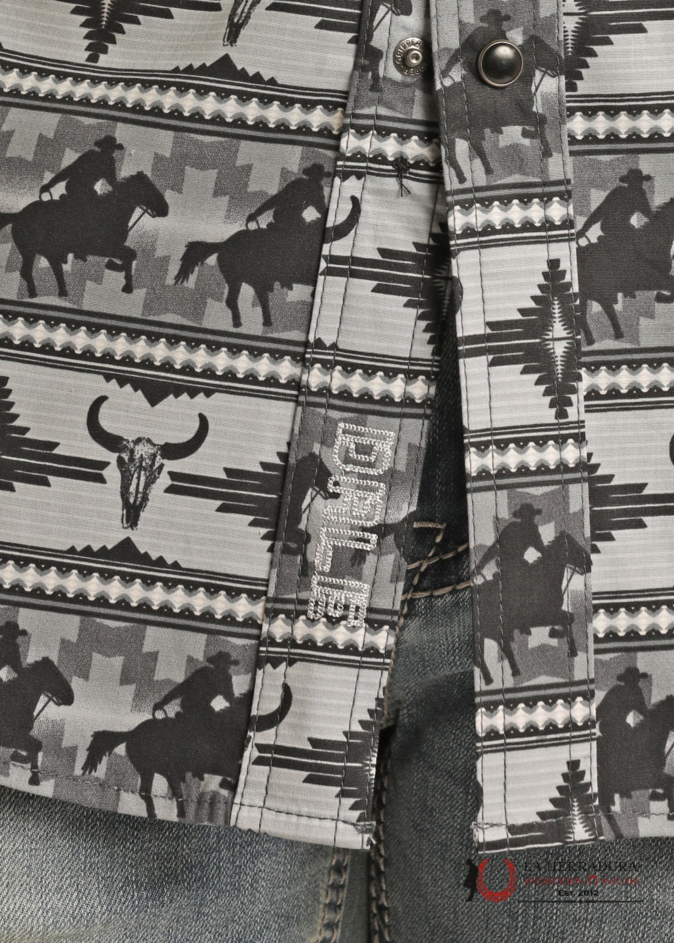 ROCK&ROLL WOMENS AZTEC TURQUOISE LONG SLEEVE SNAP SHIRT BWN2S03355
