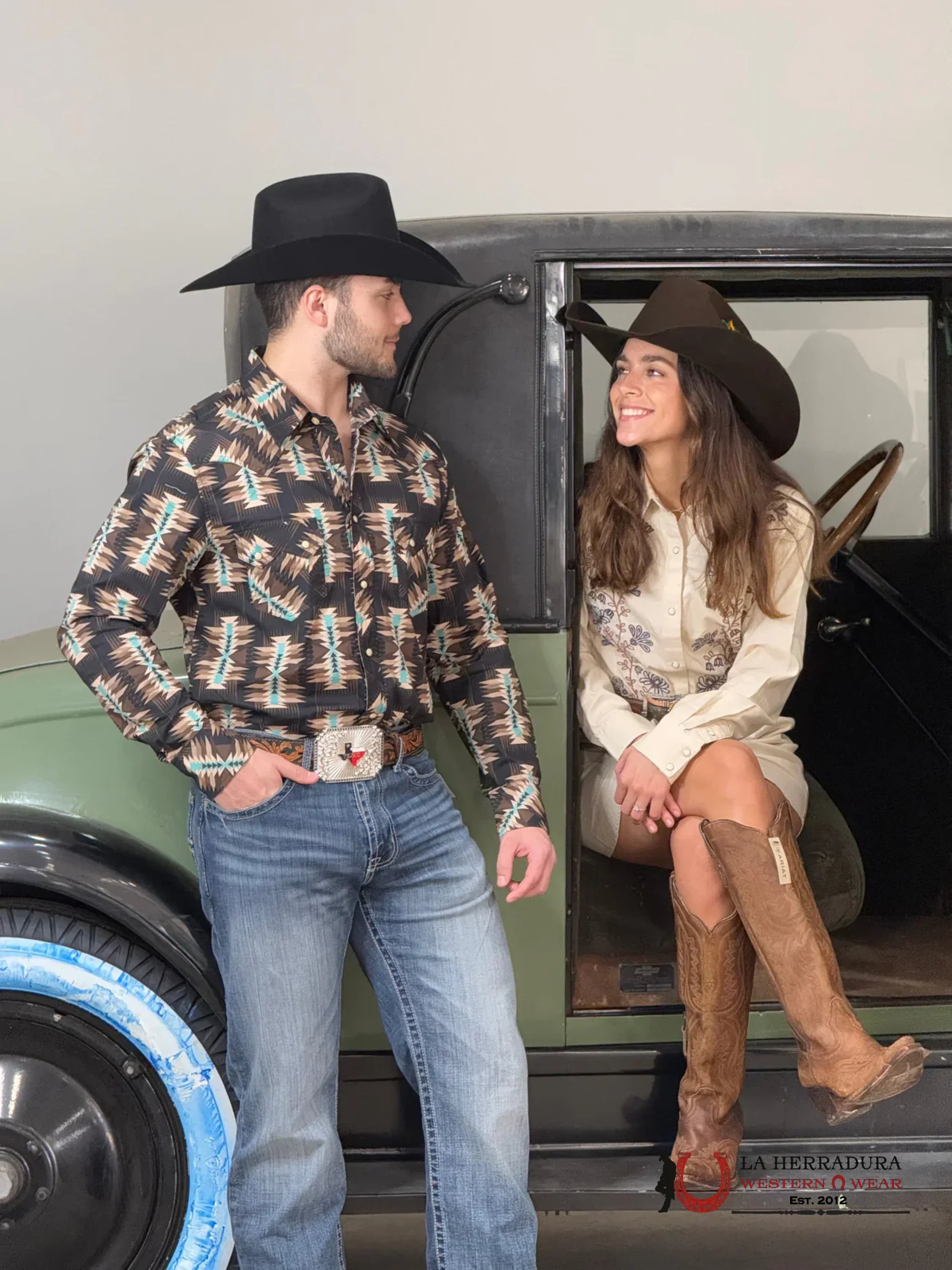 Feel confident and stylish in our ROCK&ROLL Women's Aztec Turquoise Long Sleeve Snap Shirt! This western-inspired shirt is perfect for dressing up, while its long sleeves and snap closure provide comfort and convenience. Made with stretch fabric for the ultimate fit. Add some flair to your wardrobe with this must-have piece!