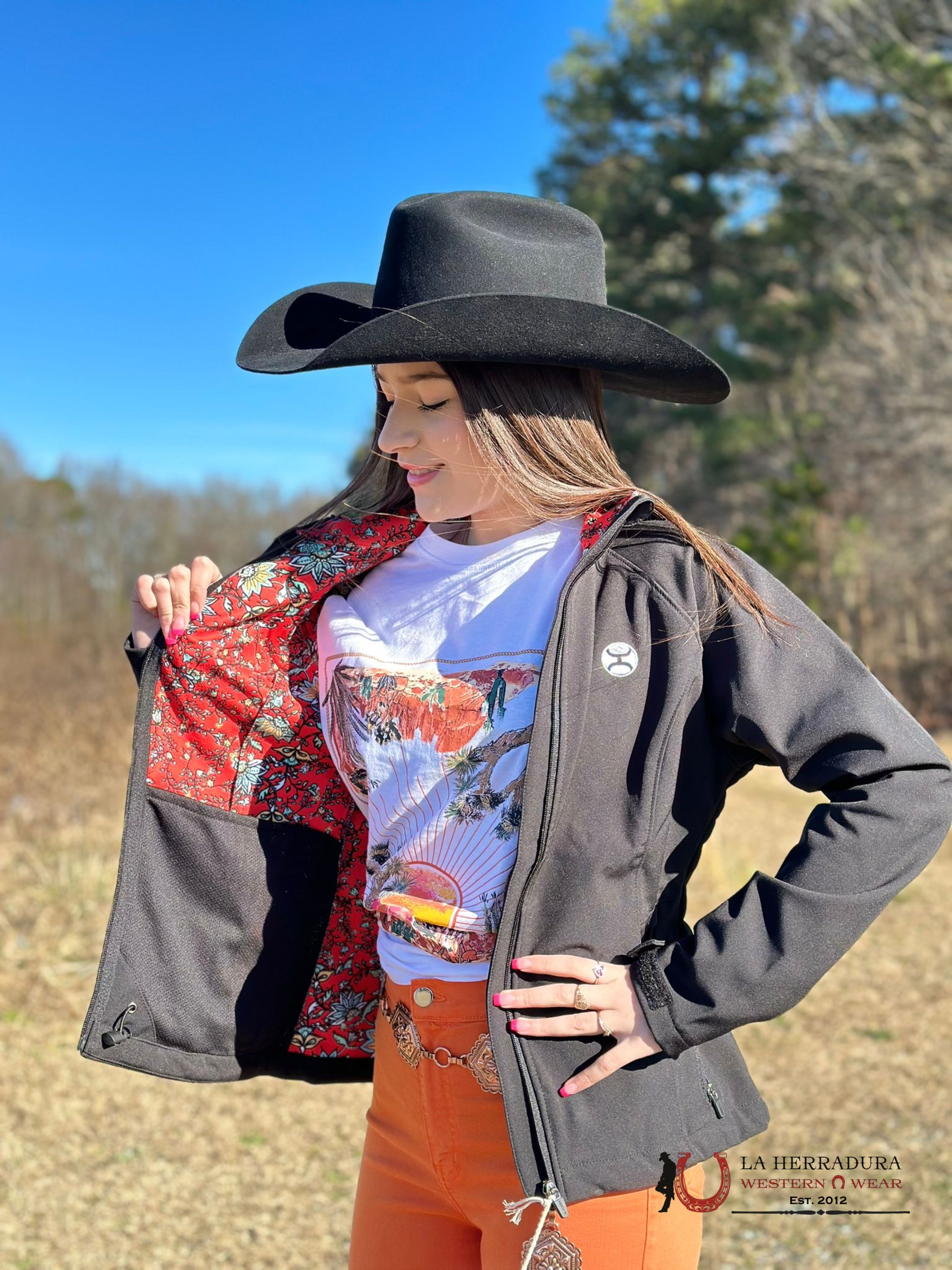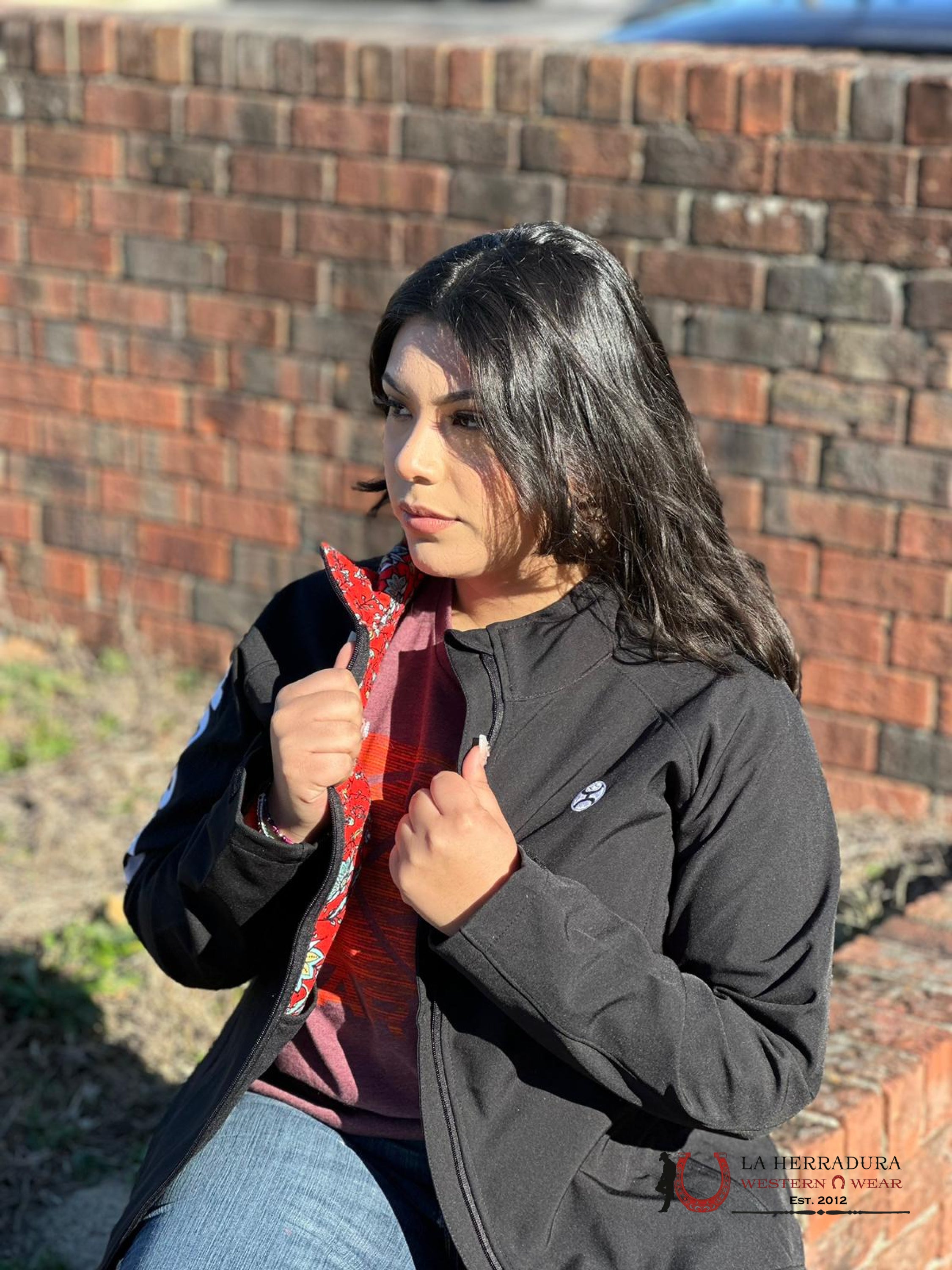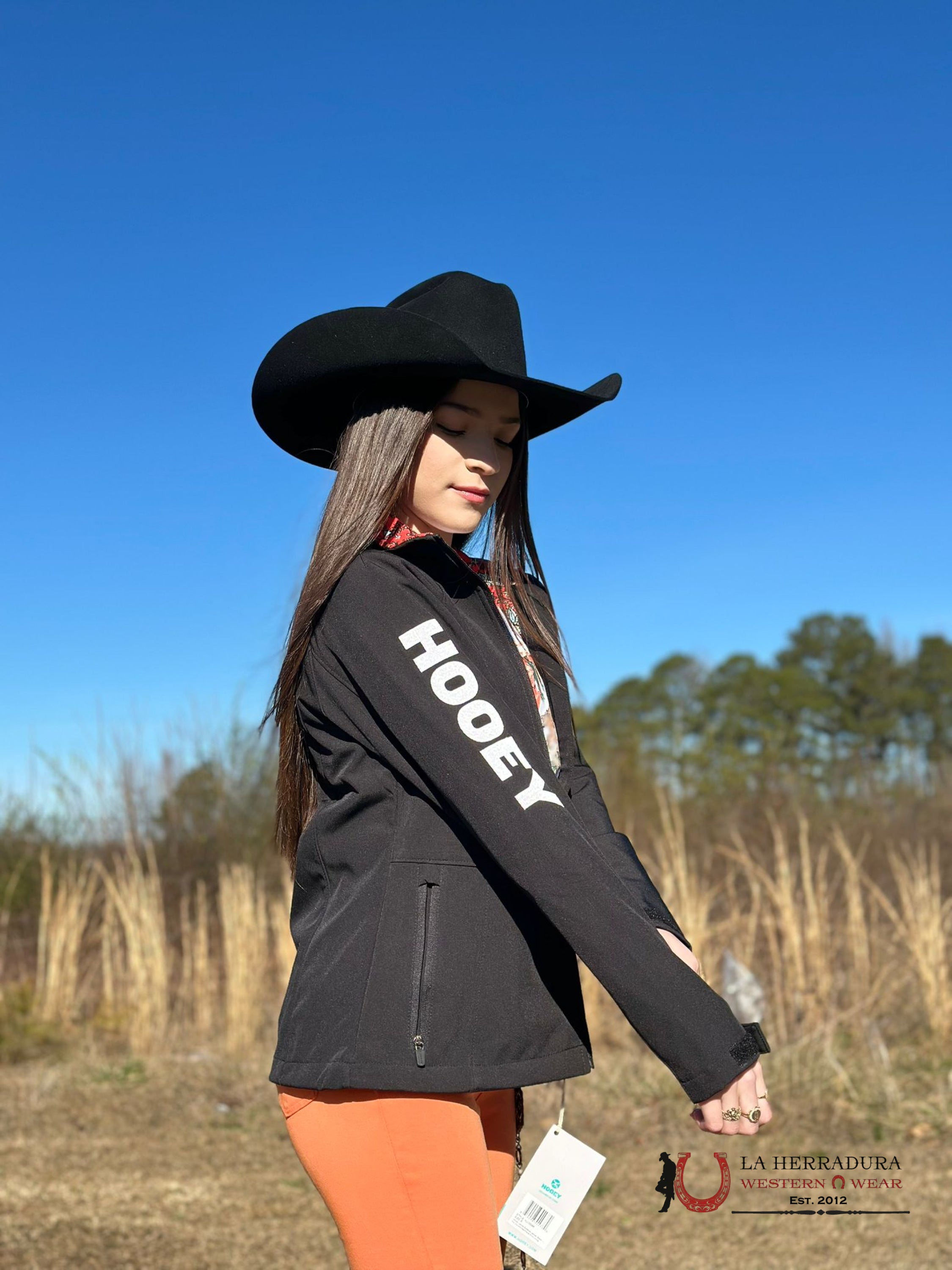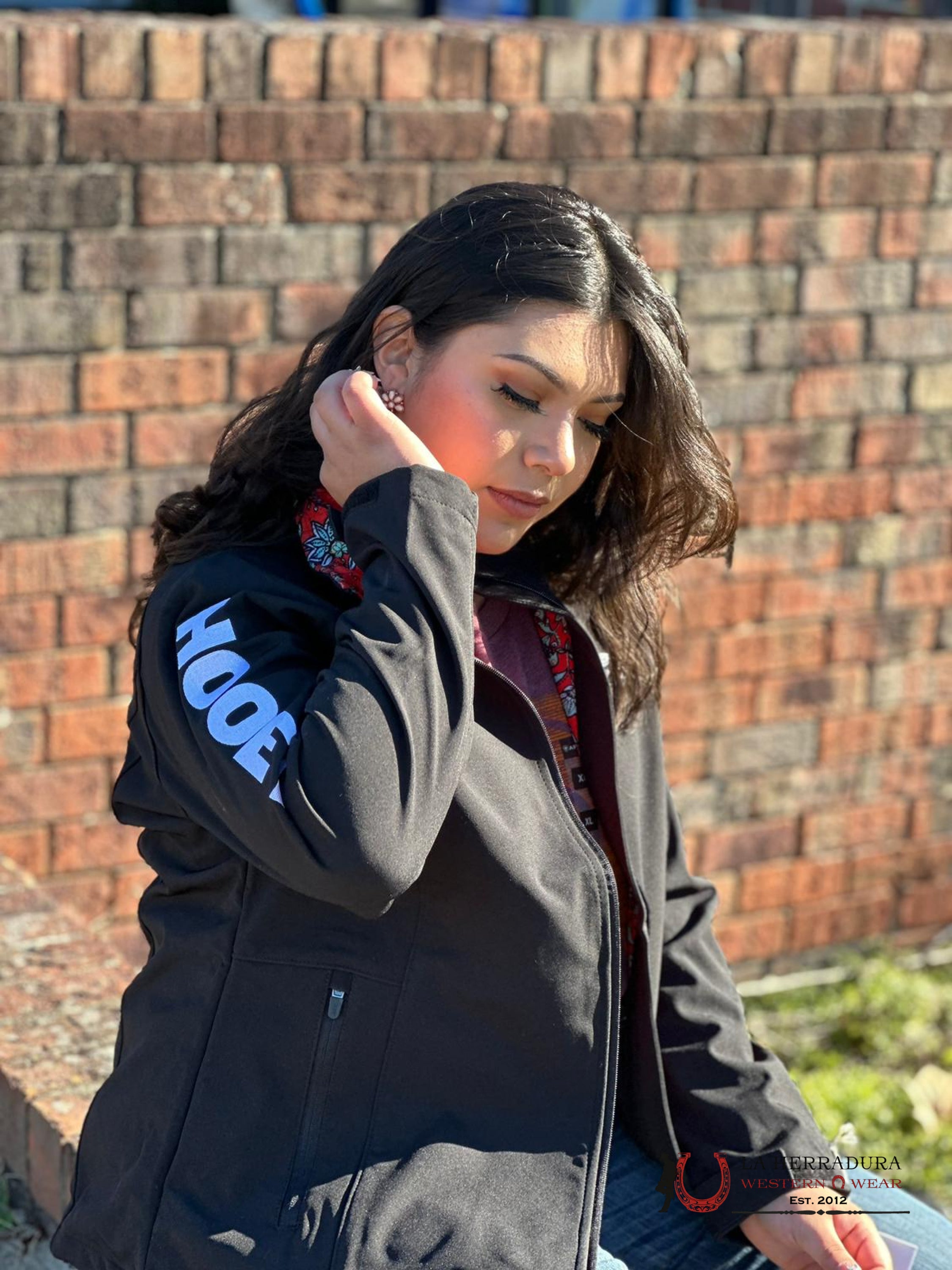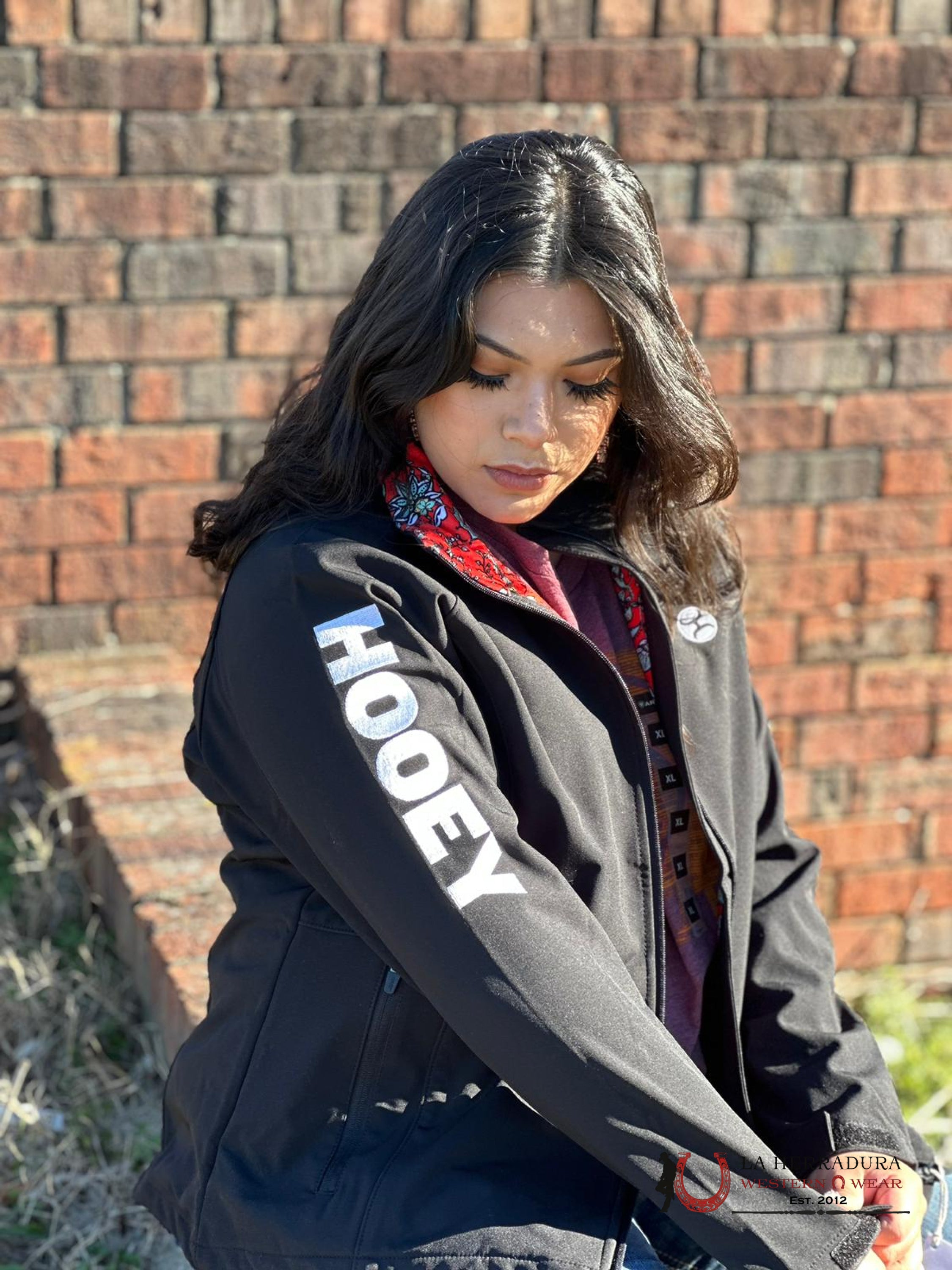 Hooey Softshell negro para mujer con logotipo Hooey blanco en la manga con cremallera completa