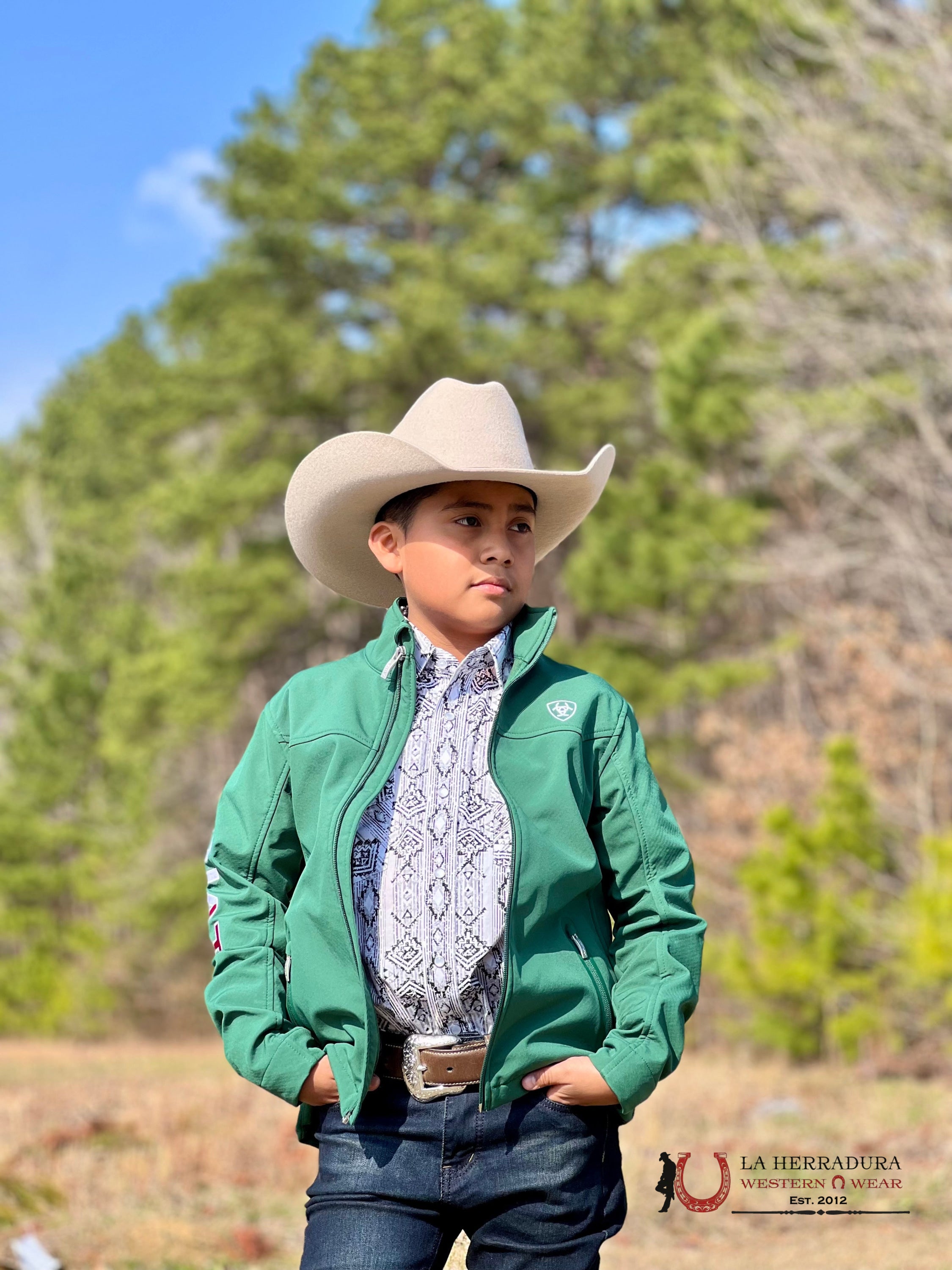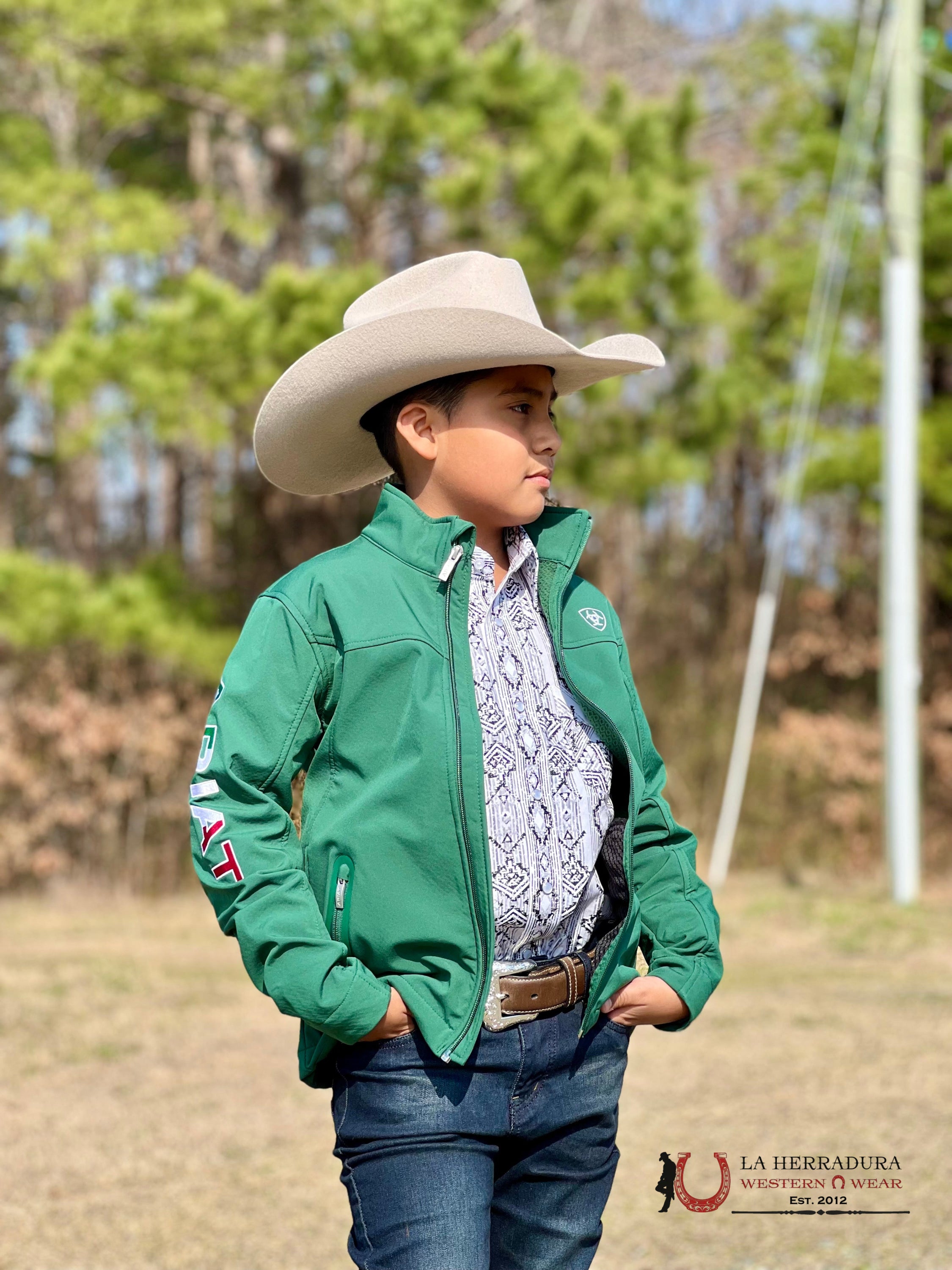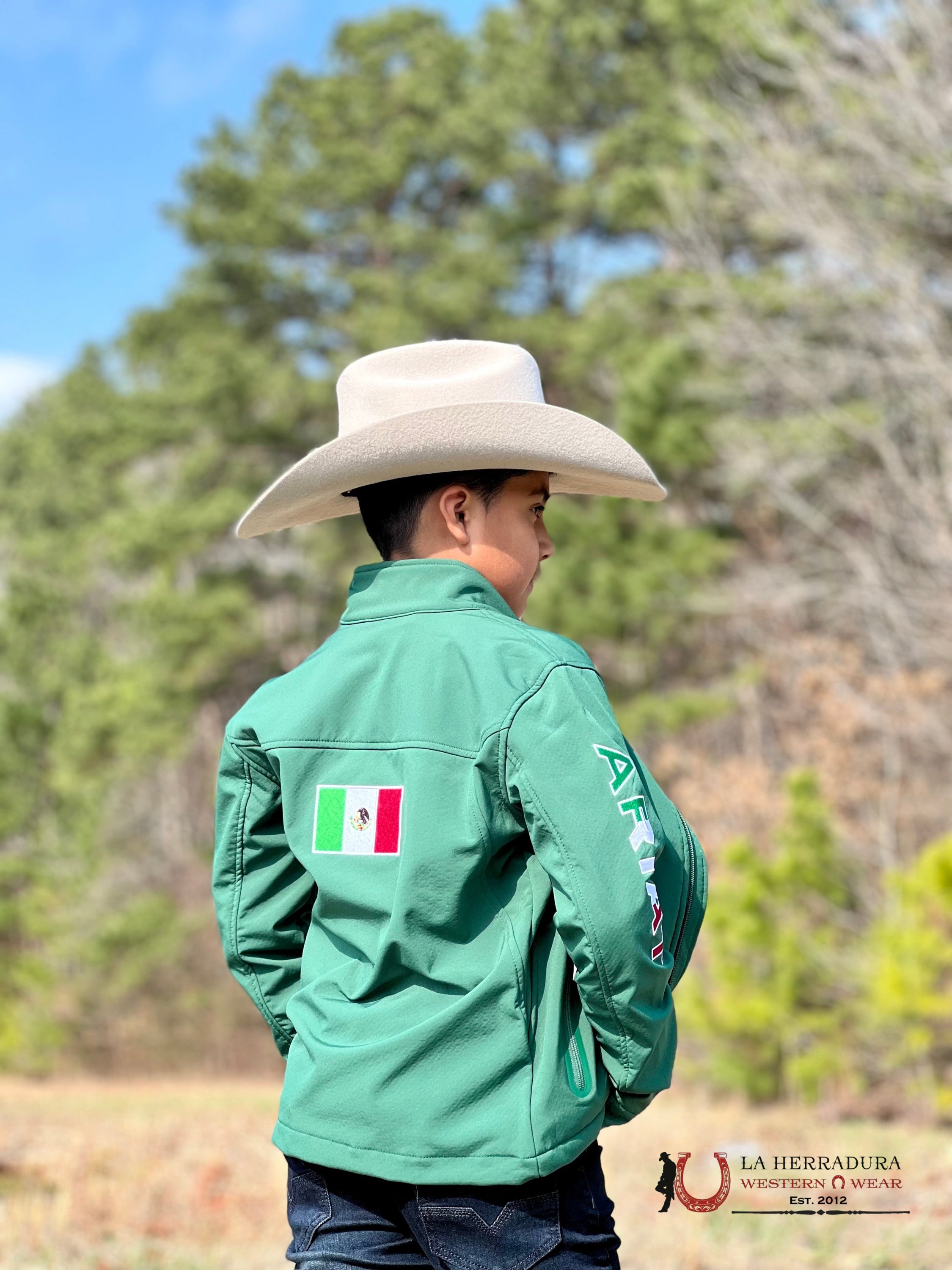 CHAQUETA ARIAT SOFT SHELL JUVENIL TEAM LOGO VERDE MÉXICO