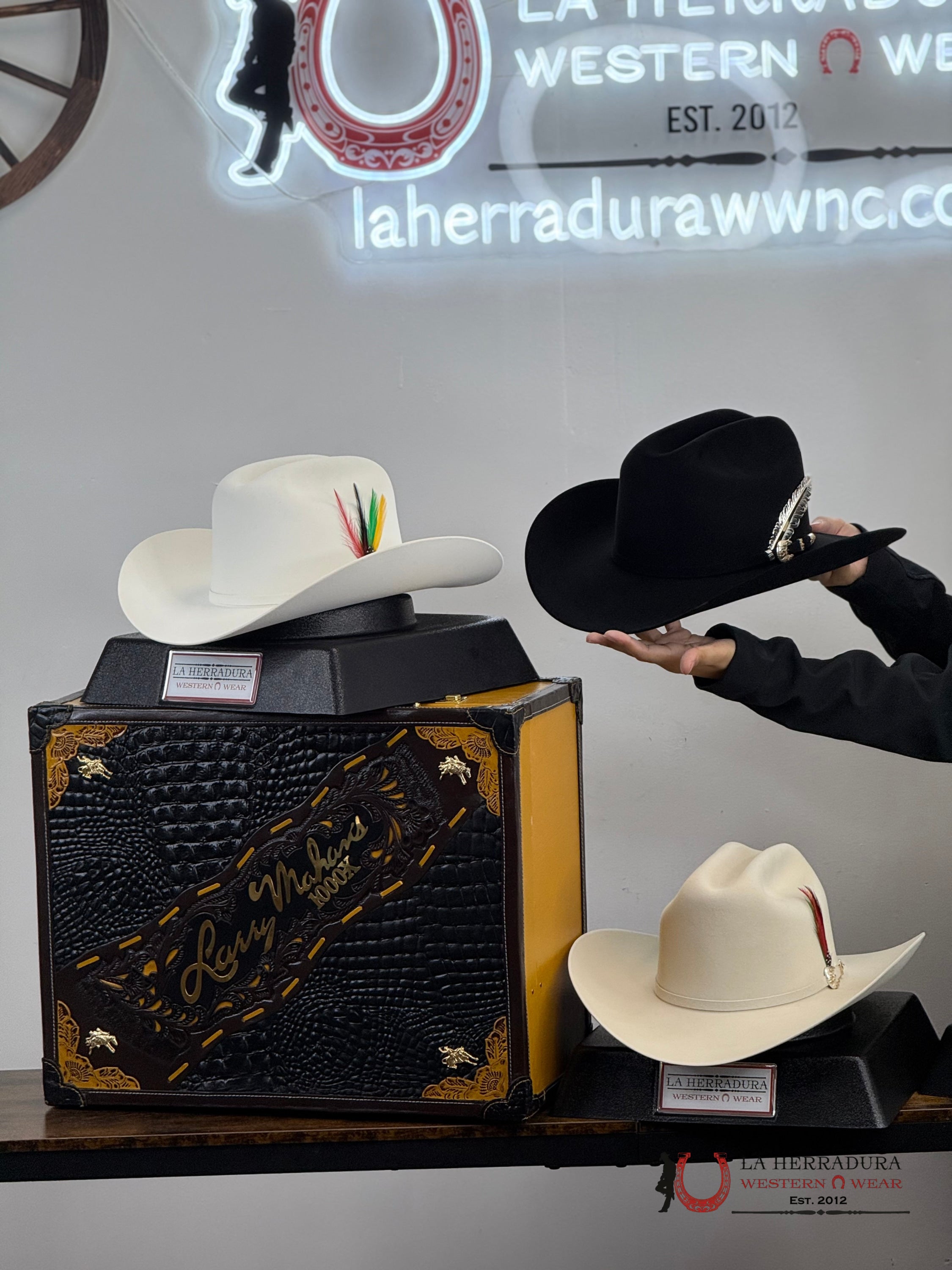La colección de sombreros Larry Mahan Premium es reconocida en todo el mundo como lo último en sombreros ahora presentando la versión IMPERIAL1000x Visón Genuino Corona de pliegue de sombrero de ganadero de 4 1/2 " Ala de 4" o puedes elegir la 3.5 y te la hacemos!