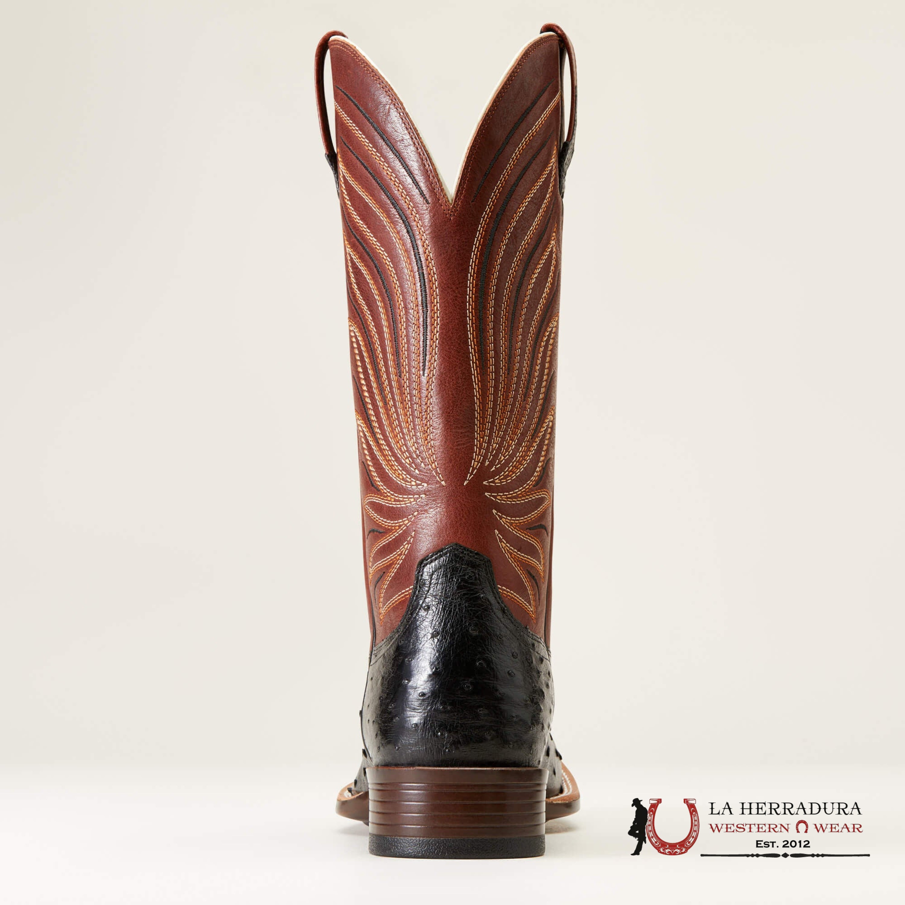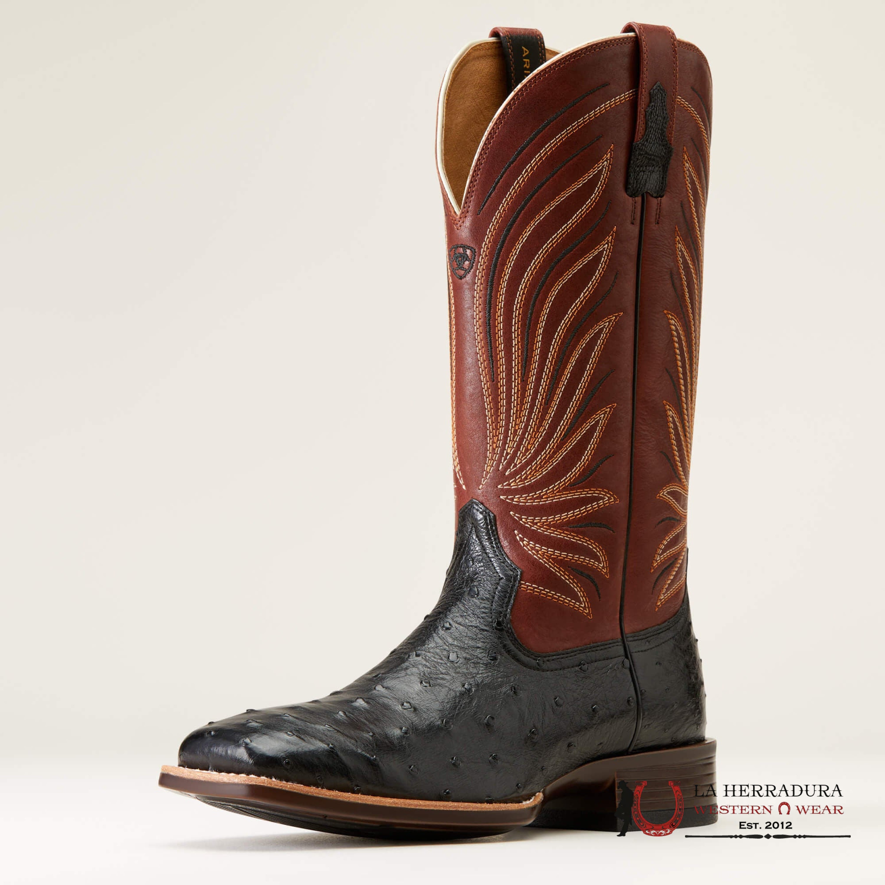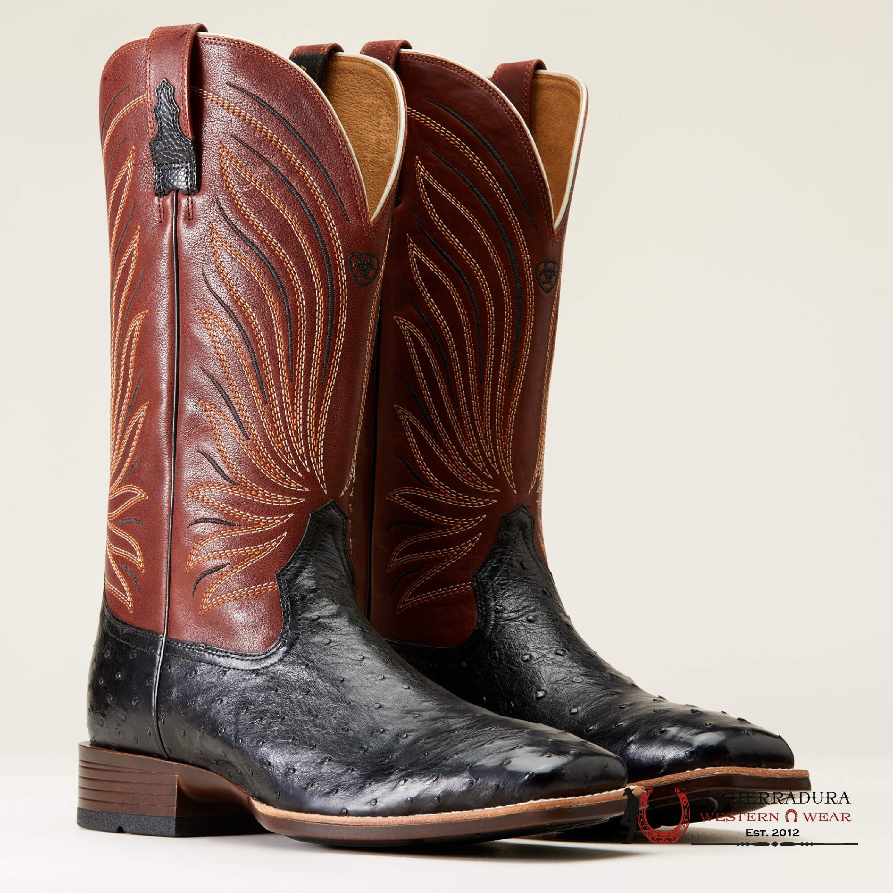 MENS ARIAT BRANDIN YLTRA JET BLACK FULL QUILL OSTRICH ROASTED CHESTNUT 10046962