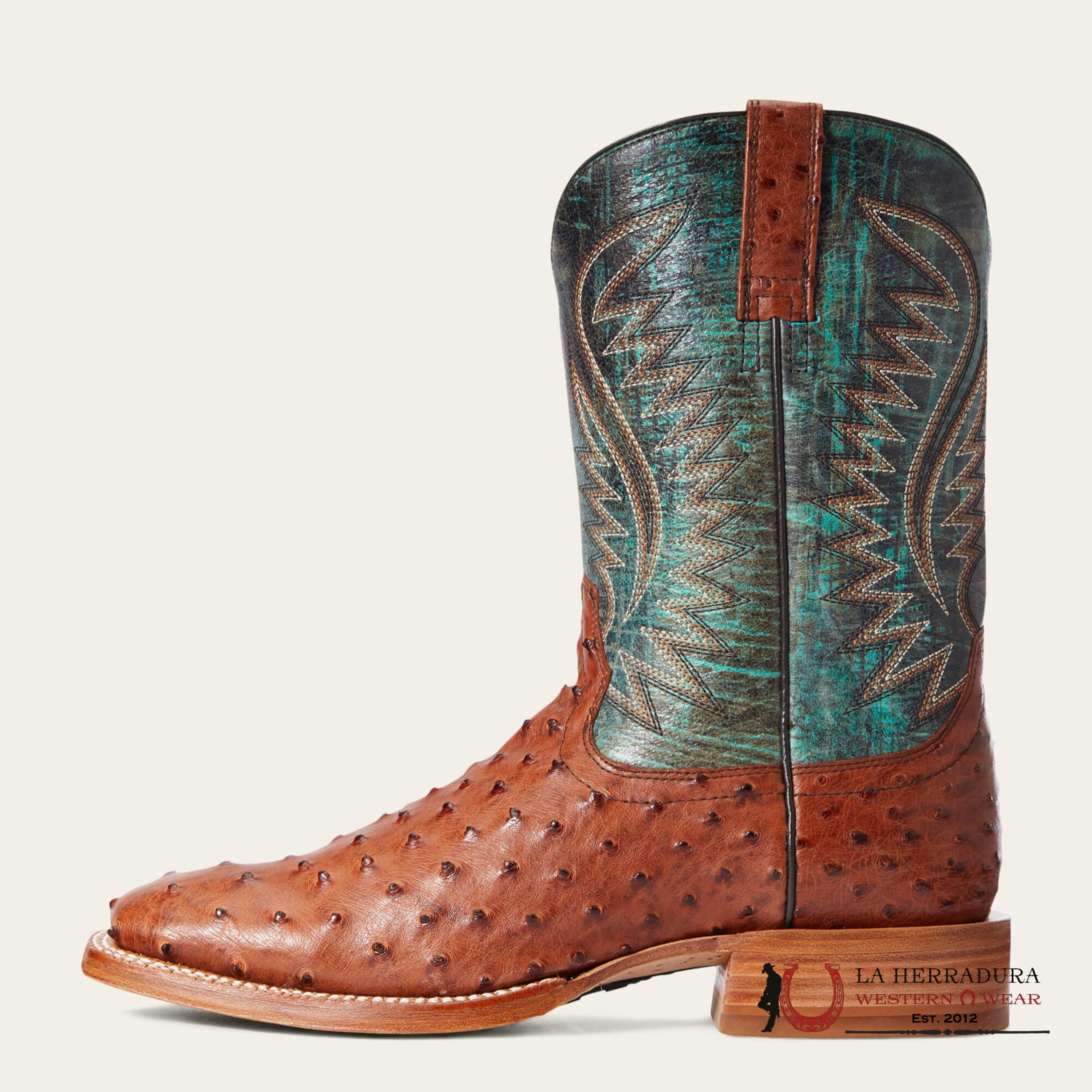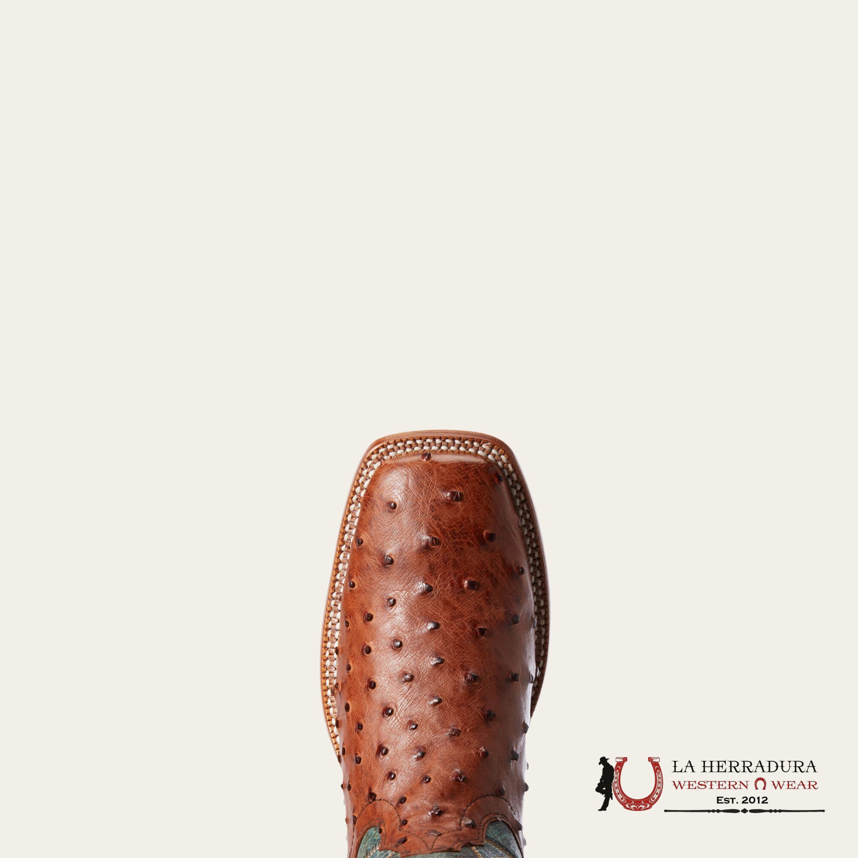 MENS ARIAT GALLUP BRANDY FULL QUILL OSTRICH/TURQUOISE 10034113
