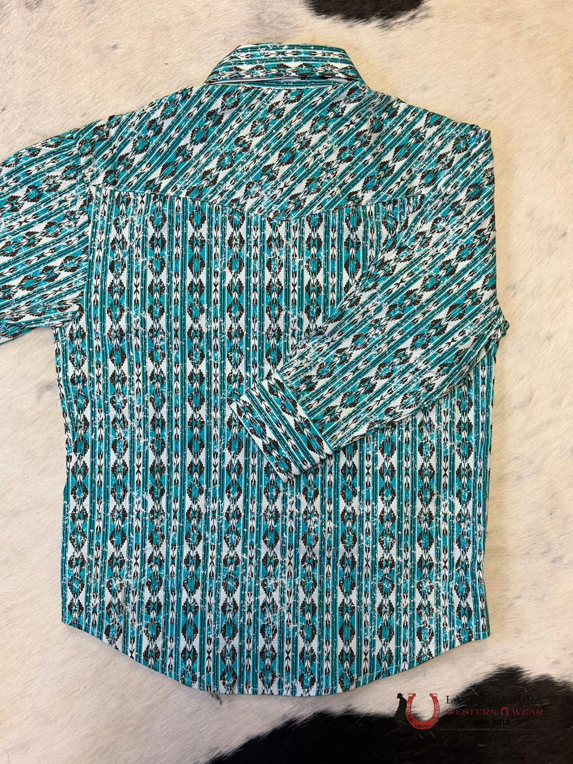 Panhandle Boys Aztec Pattern Teal/White Shirt Niños