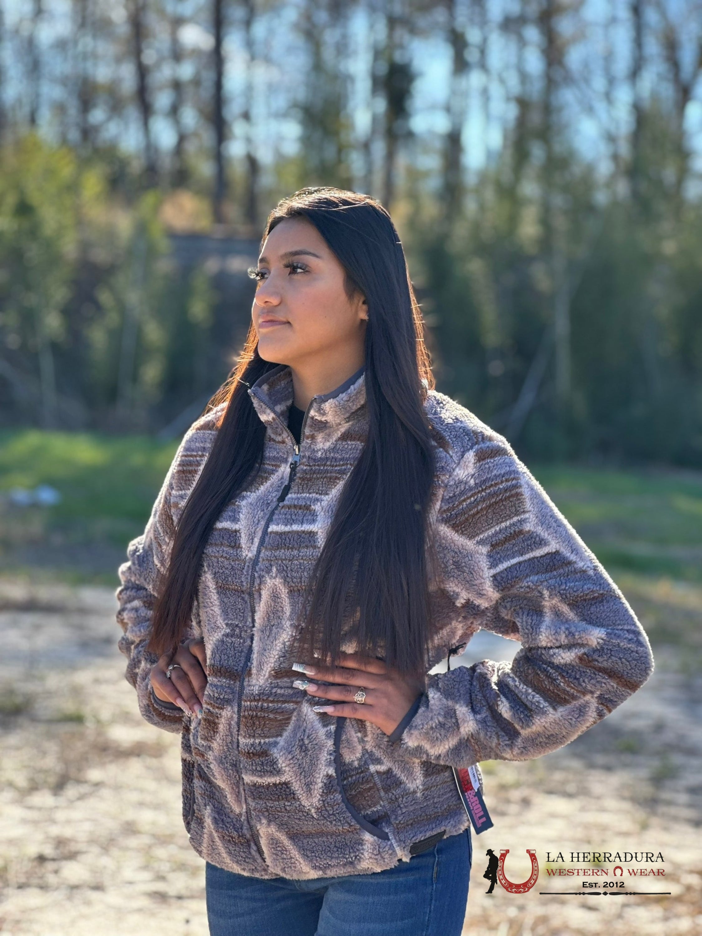 Rock&Roll Mujer Marrón Azteca Estampado Berber Cremallera Completa