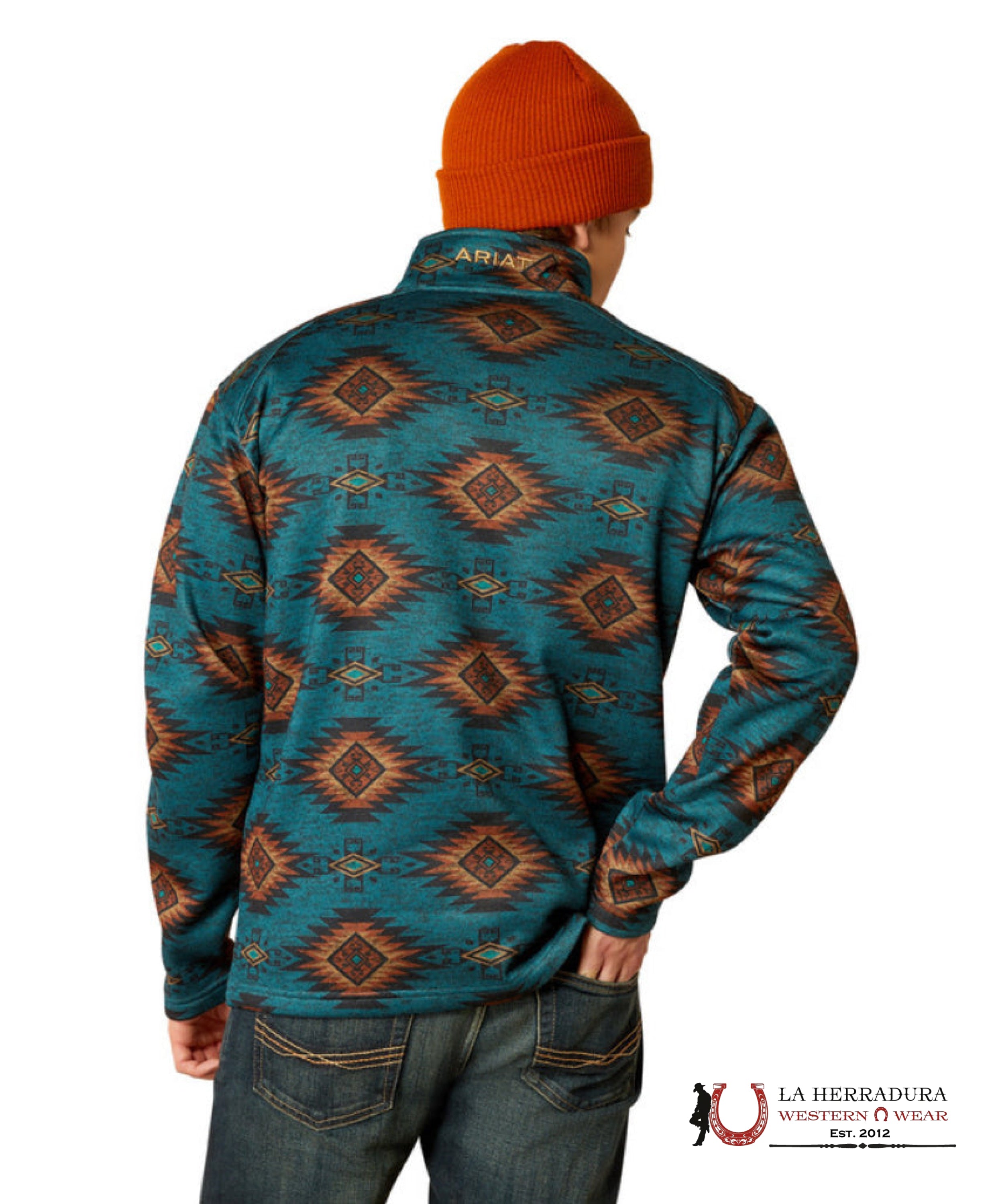 ARIAT MEN BLUE CORAL SOUTHWEST CALDWELL LOGO 1/4 ZIP UP SWEATER 10053016
