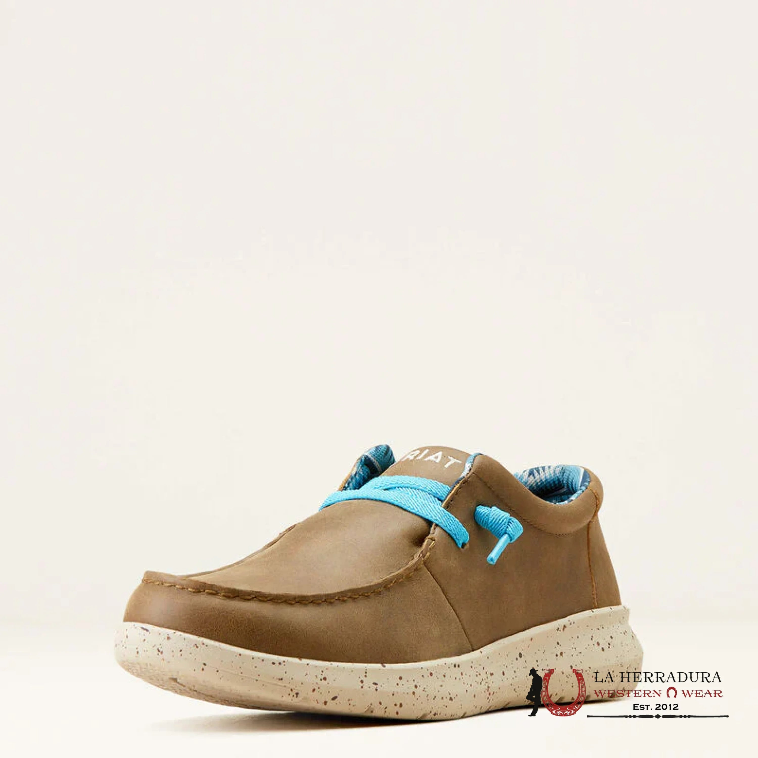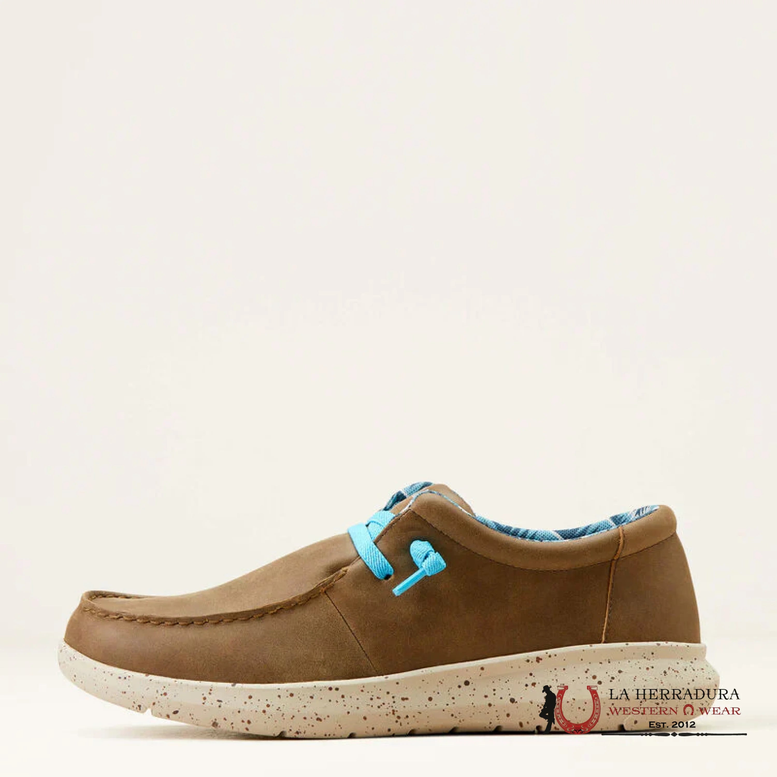 Experience ultimate comfort and style with the ARIAT MENS HILO BROWN BOMBER BLUE. Designed with a blue lace up, splattered sole, and casual western appeal, these shoes are perfect for any occasion. The brown bomber color adds a touch of rugged sophistication. Don't miss out on these must-have shoes!