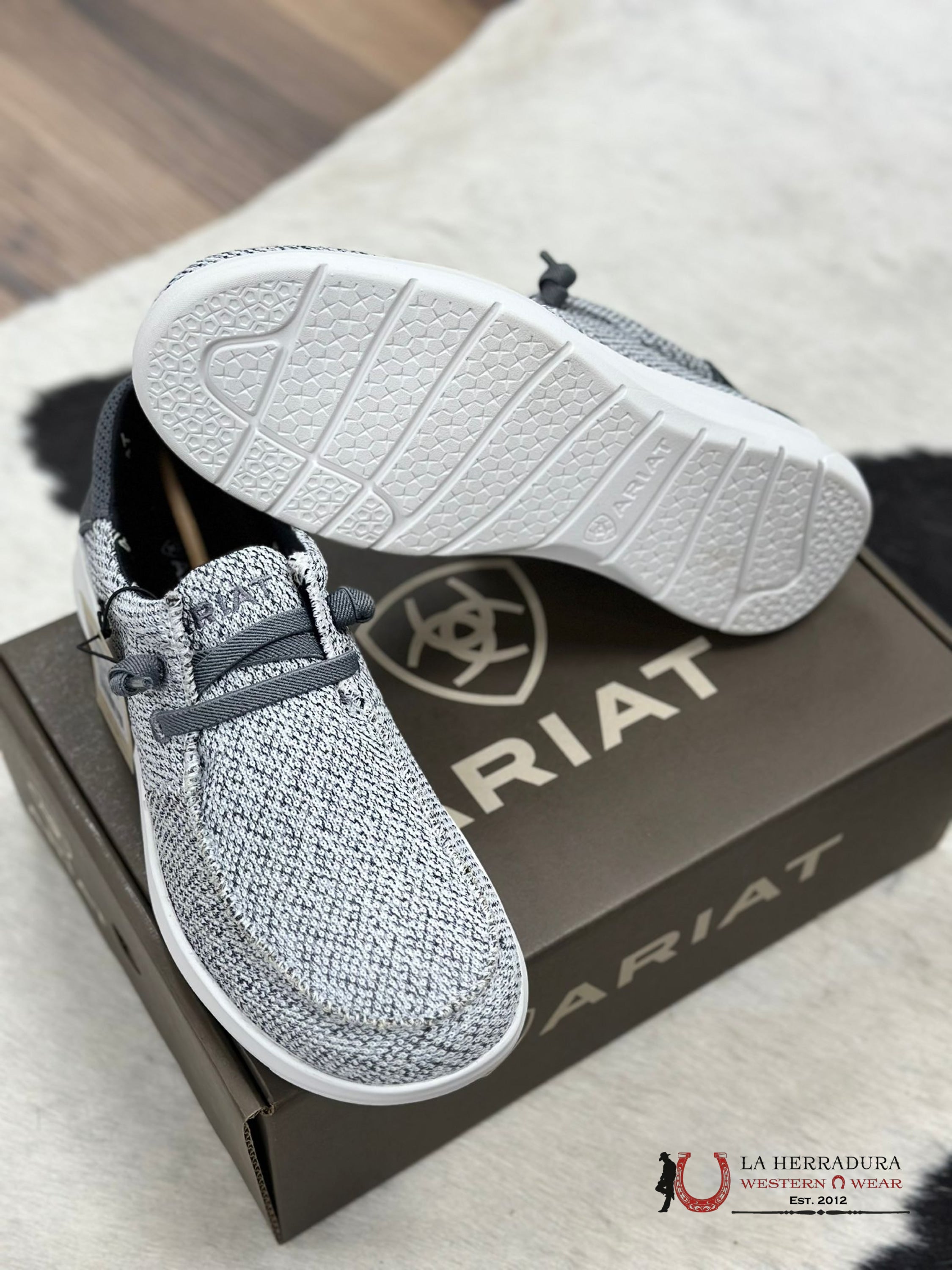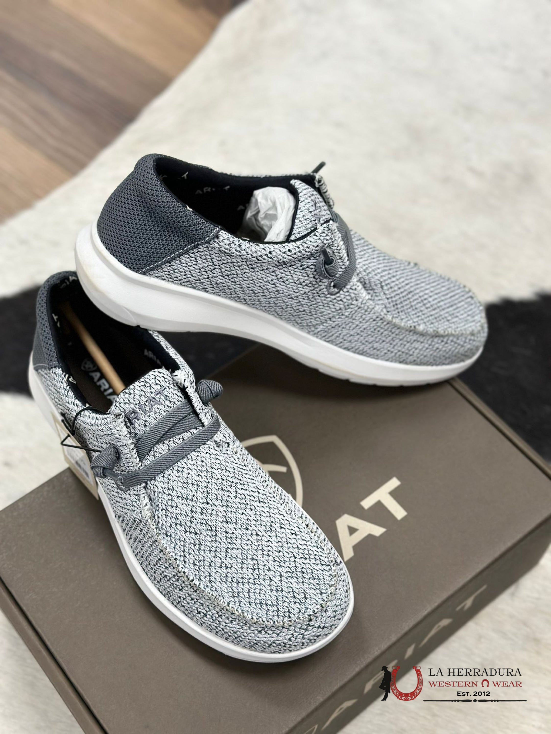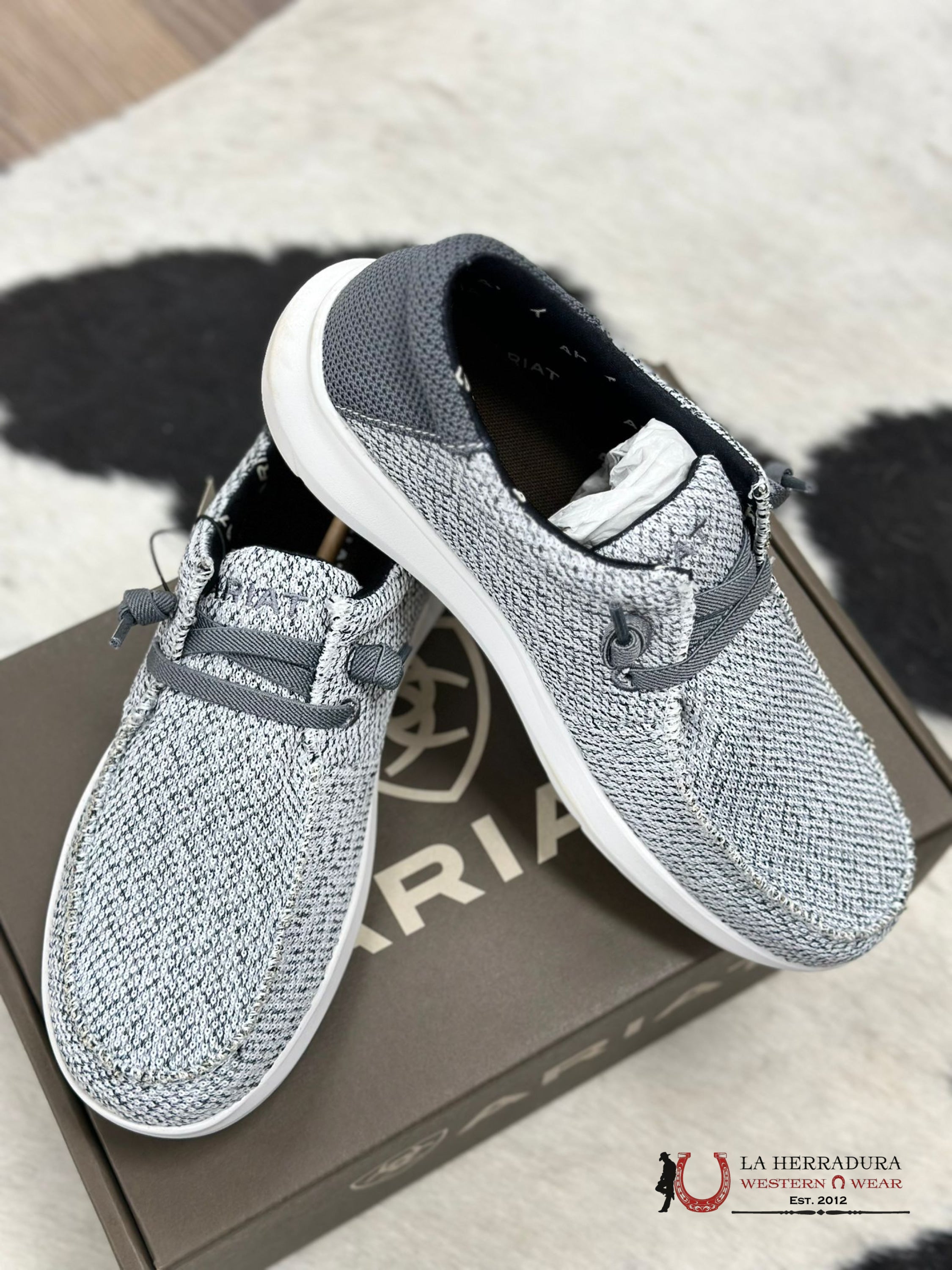 Feel comfortable and stylish every day with the ARIAT MENS HILO STRETCH LACE DISTRESSED WHITE / DARK GREY. Featuring a distressed white base and dark grey laces, these shoes add a cool, casual vibe to your daily wardrobe. With HILO STRETCH LACE for optimal comfort, why wait? Step up your style and get the ARIAT MENS HILO STRETCH LACE DISTRESSED WHITE / DARK GREY today!