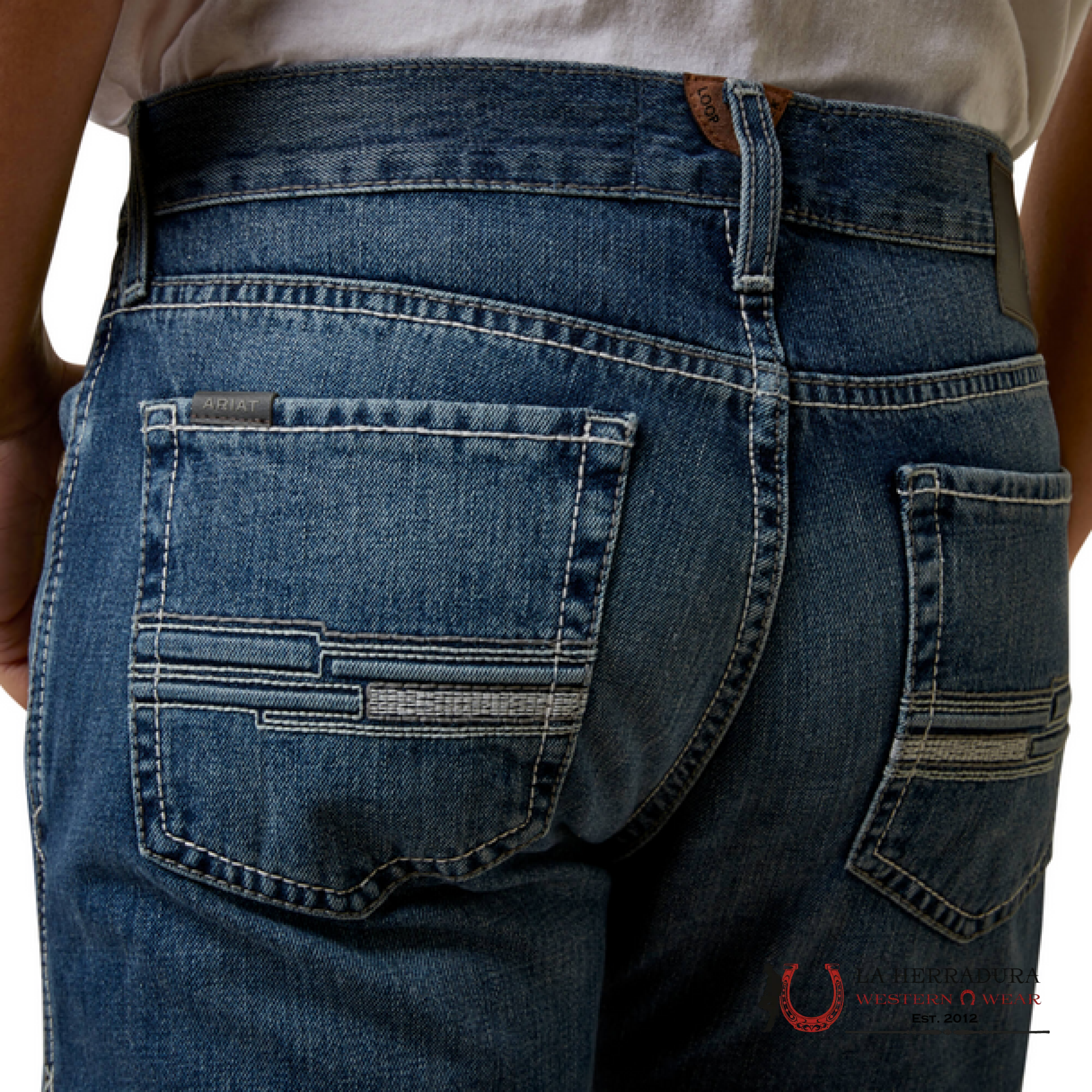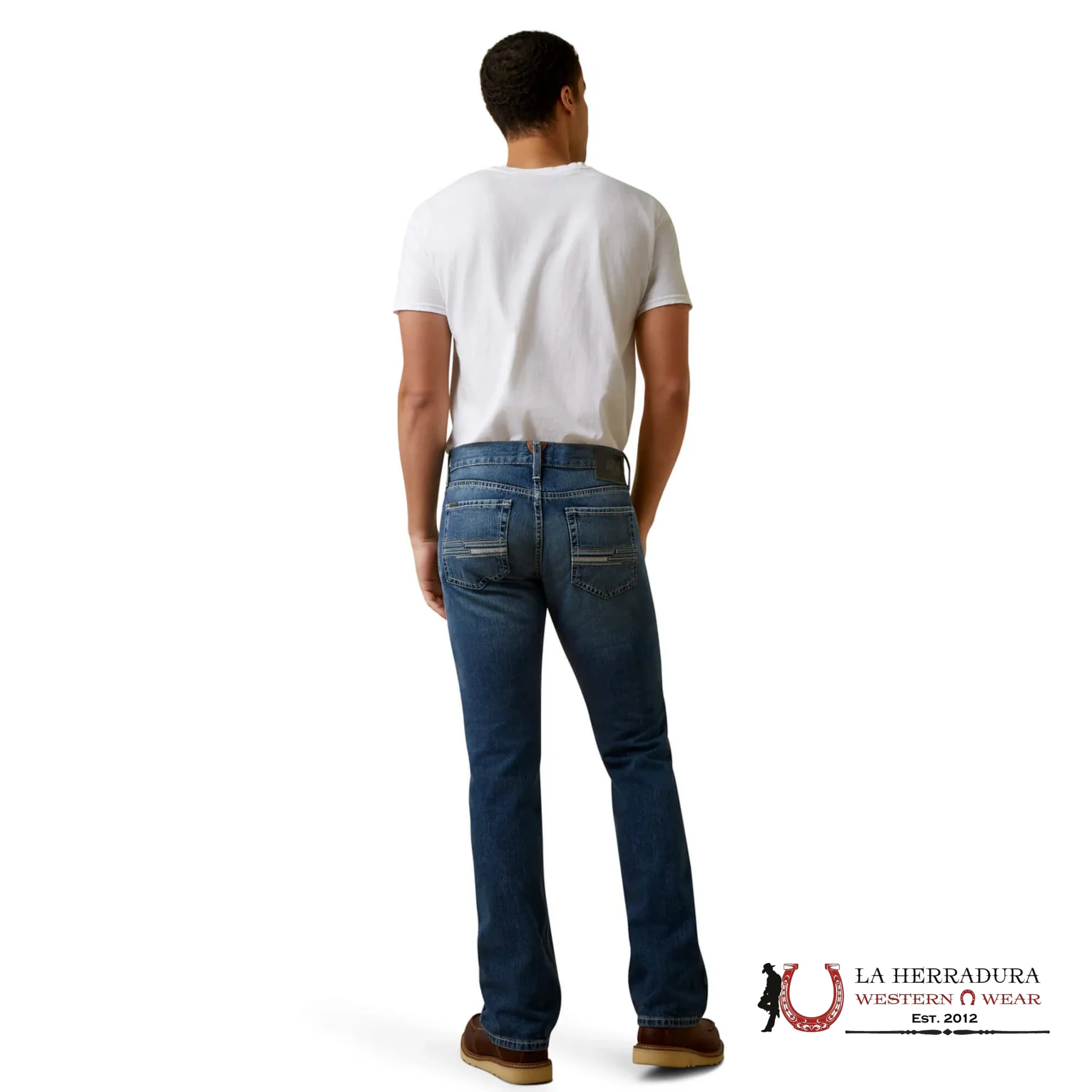 Ariat Mens Jeans Brighton M7 offer a slim fit and straight leg, perfect for comfortable, casual everyday wear. Featuring Ariat M7 Denim and a unique back pocket design in a dark blue wash, these jeans are sure to make a statement. Live your best life in style.