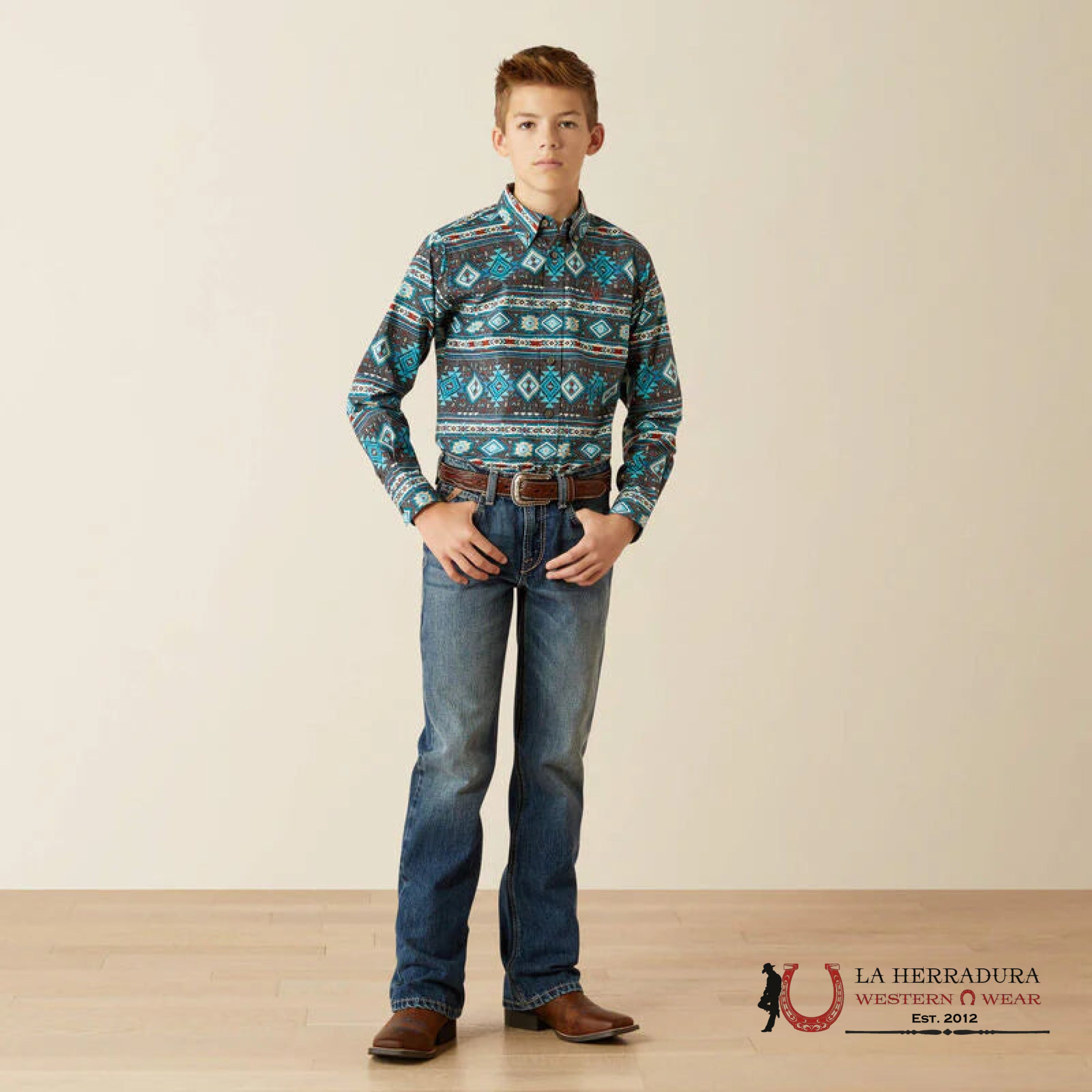 ARIAT PRESTCOT LONG SLEEVE SHIRT TEAL - 4072