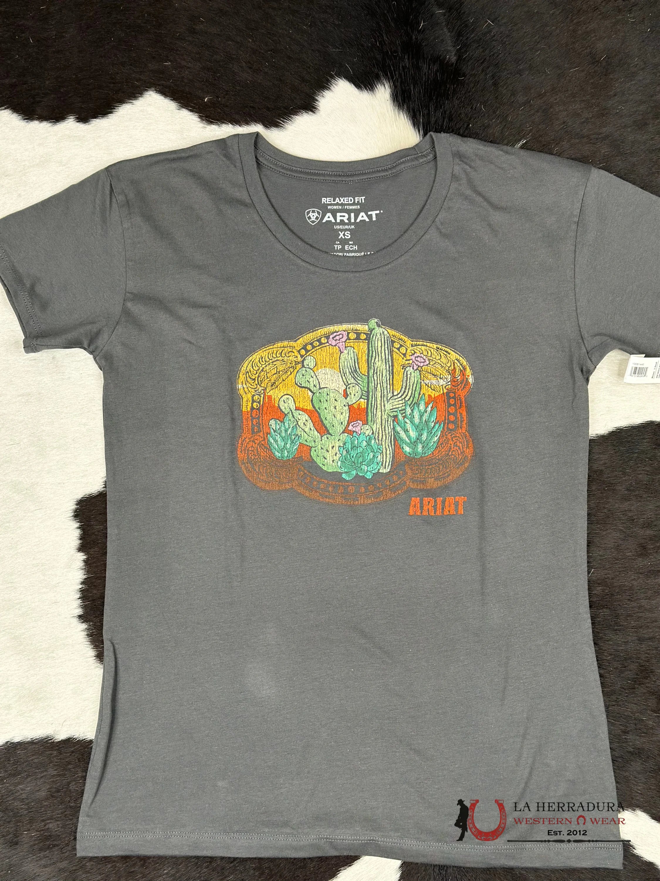 ARIAT WOMEN T-SHIRT BUCKLE UP GRAPHITE 10051440