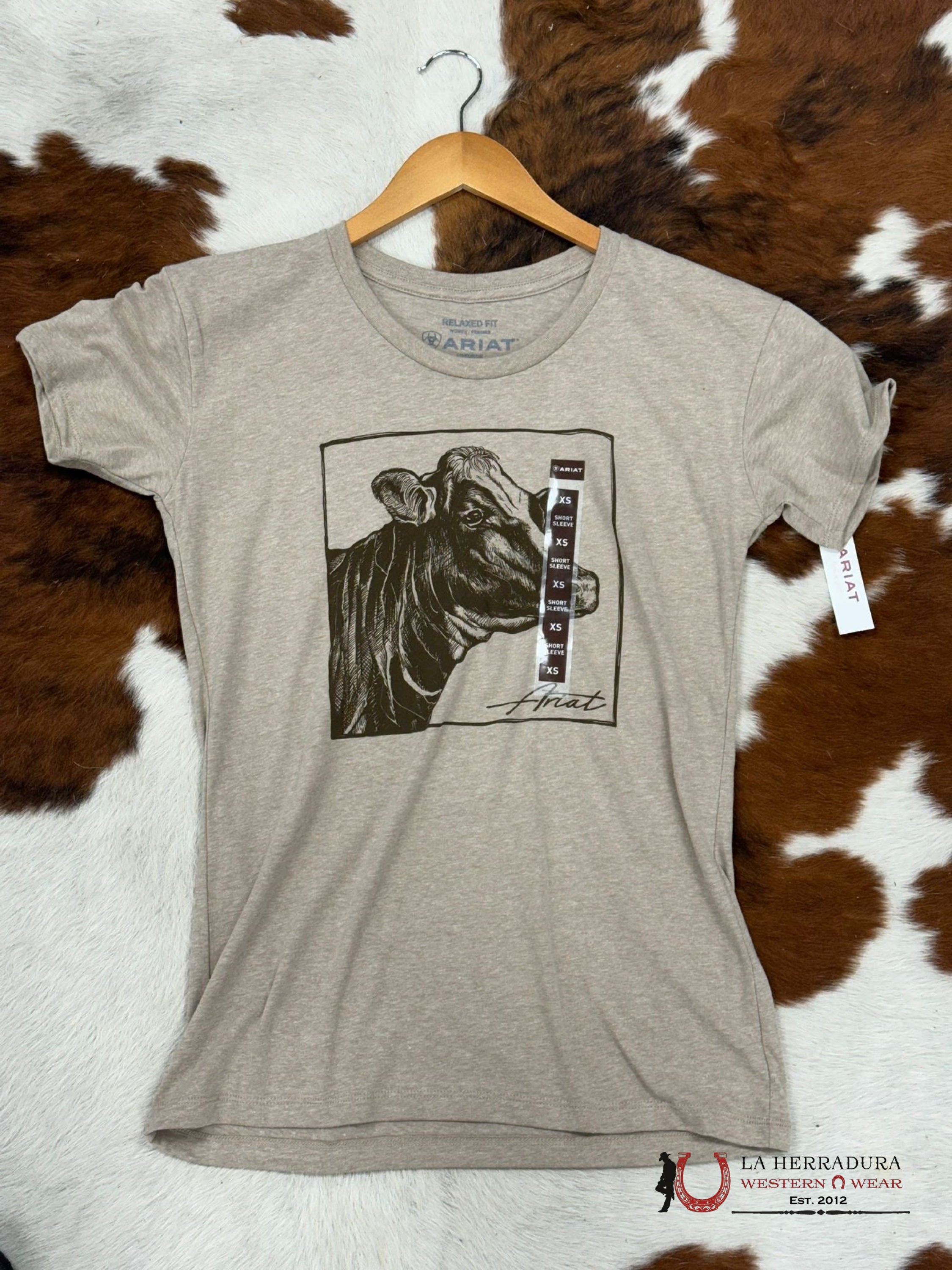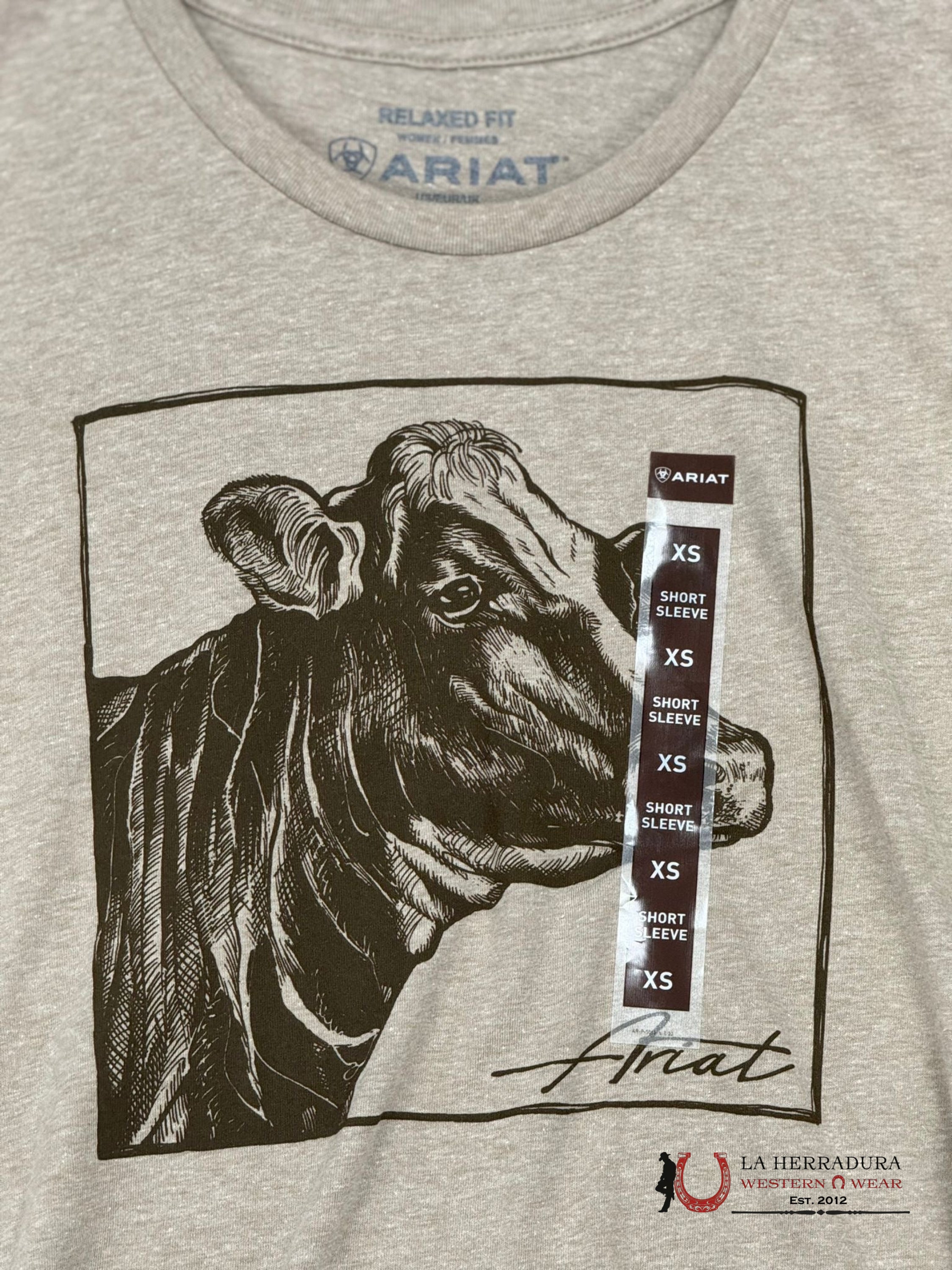 ARIAT WOMEN COW COVER OATMEAL HEATHER SHORT SLEEVE T-SHIRT 10051785