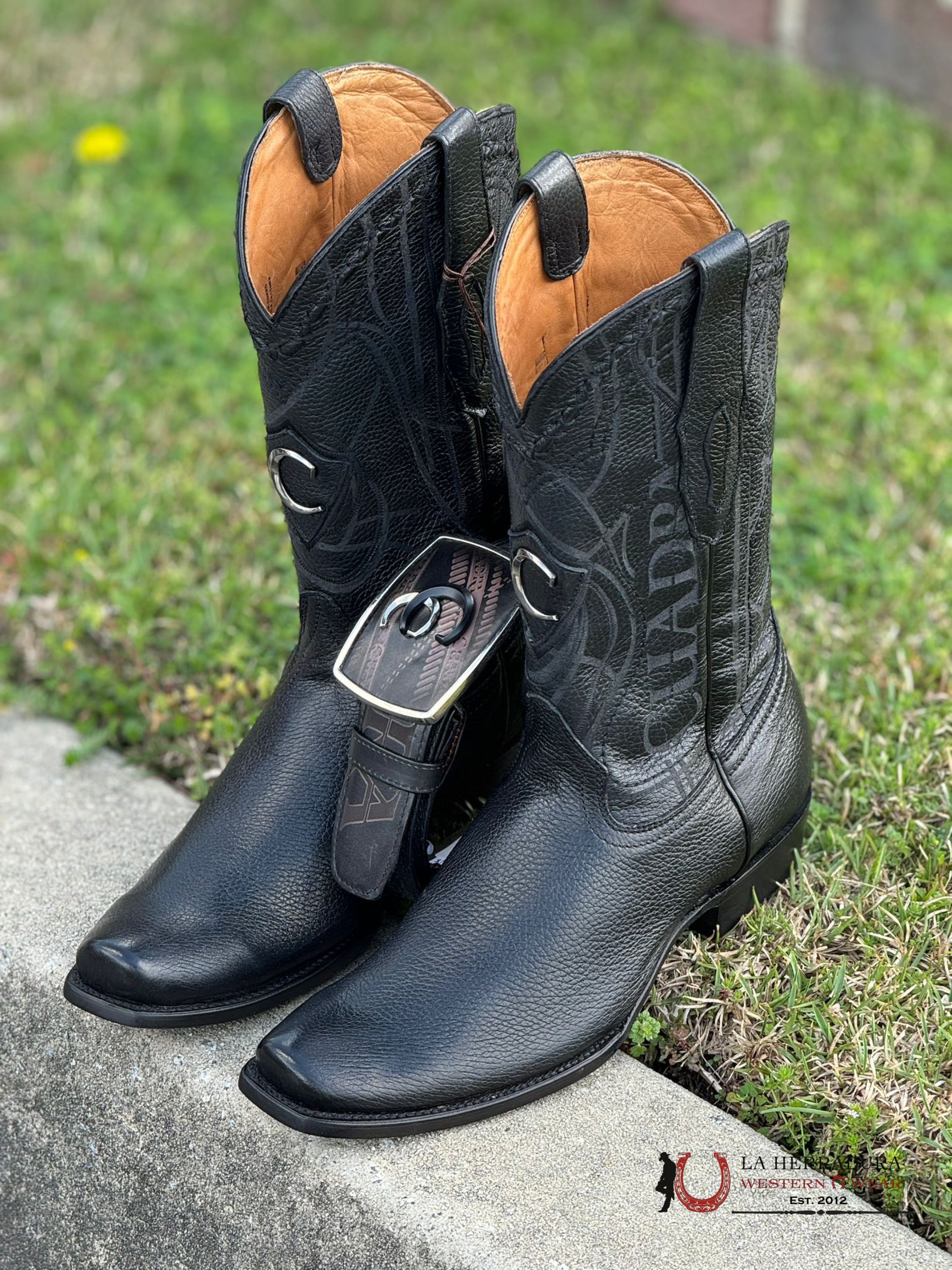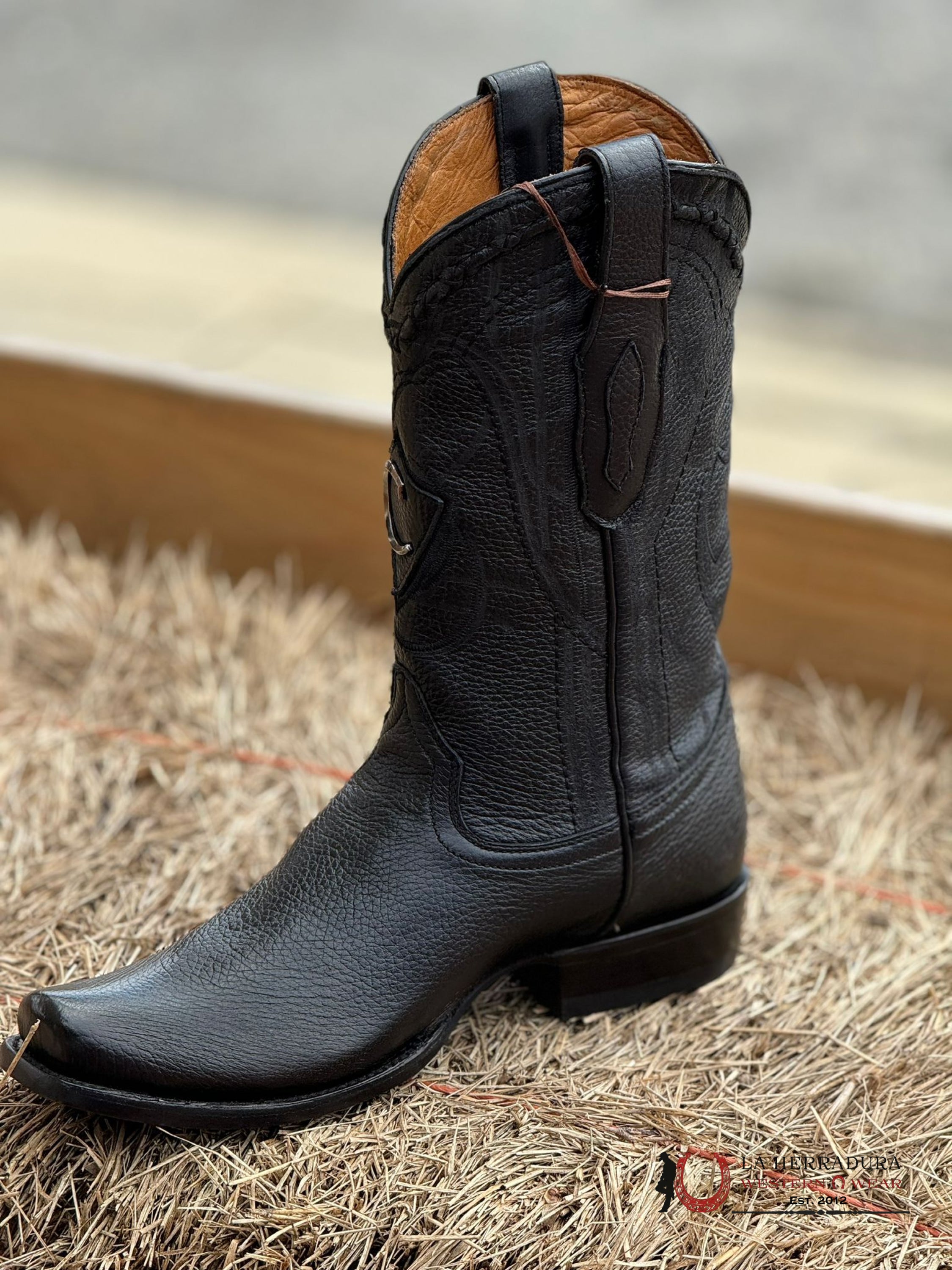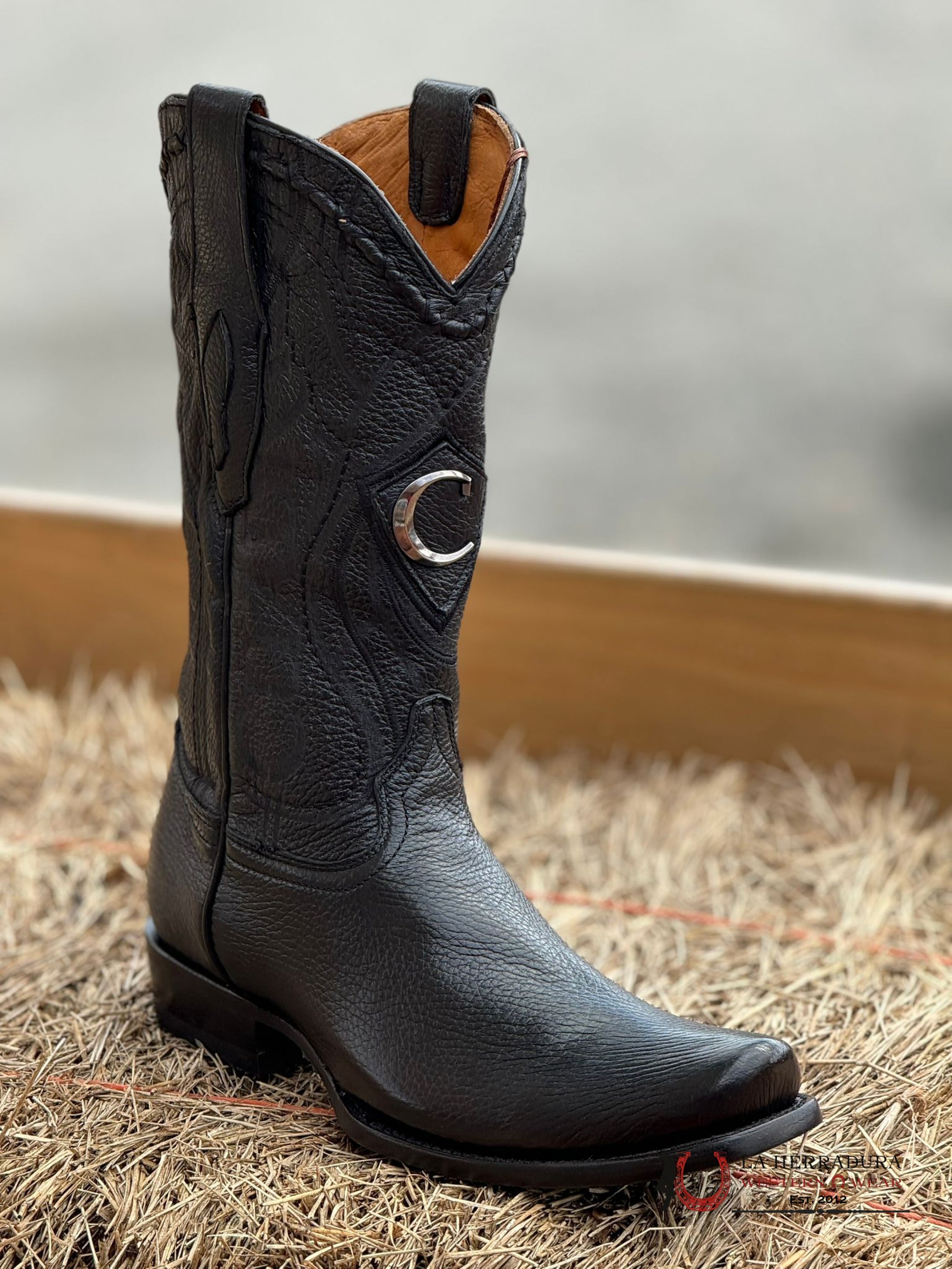 BOOTS CUADRA DEER LASER / VENADO ITALIANO PUNTA SEMI CUADRADA BLACK CU587