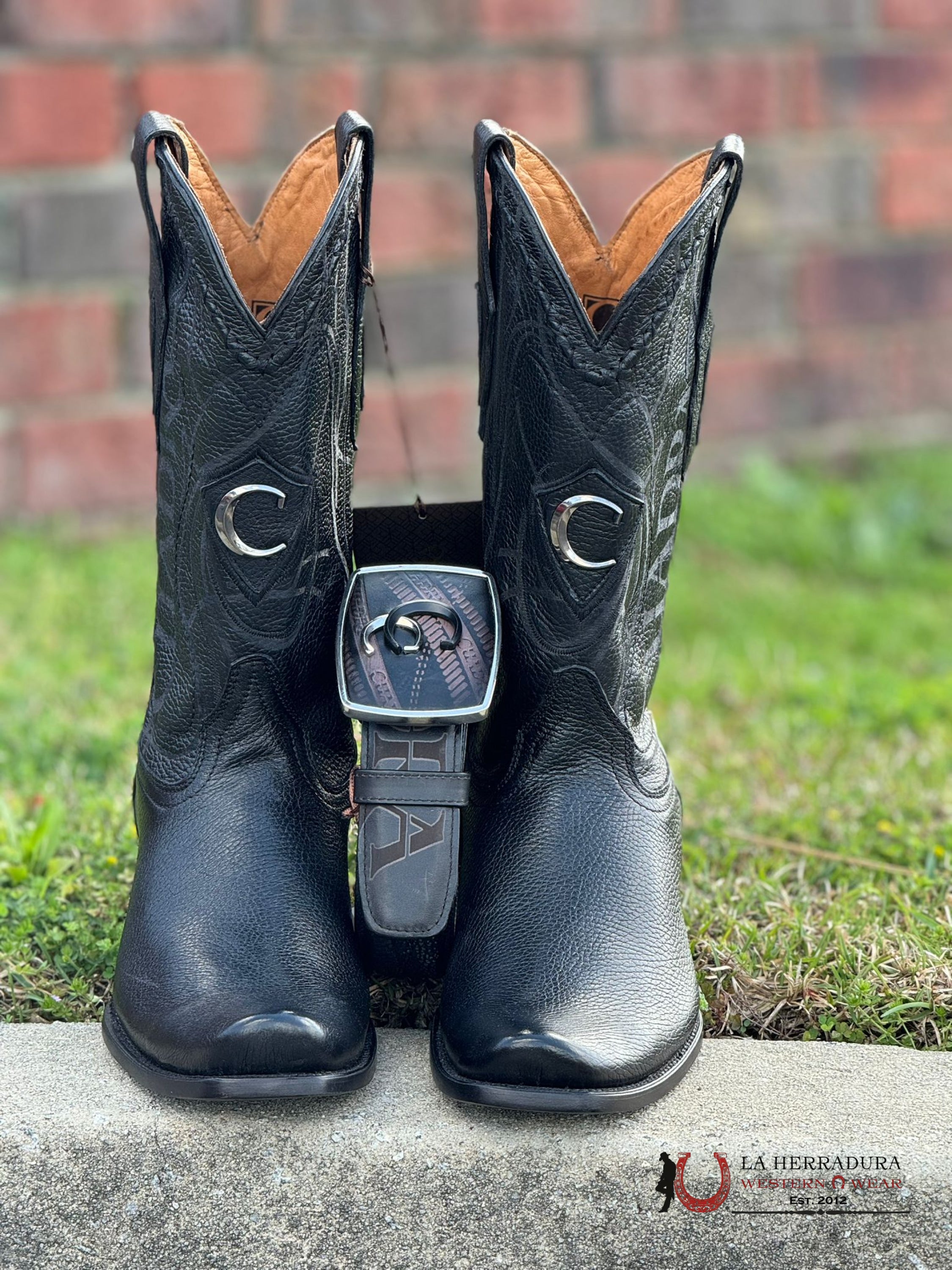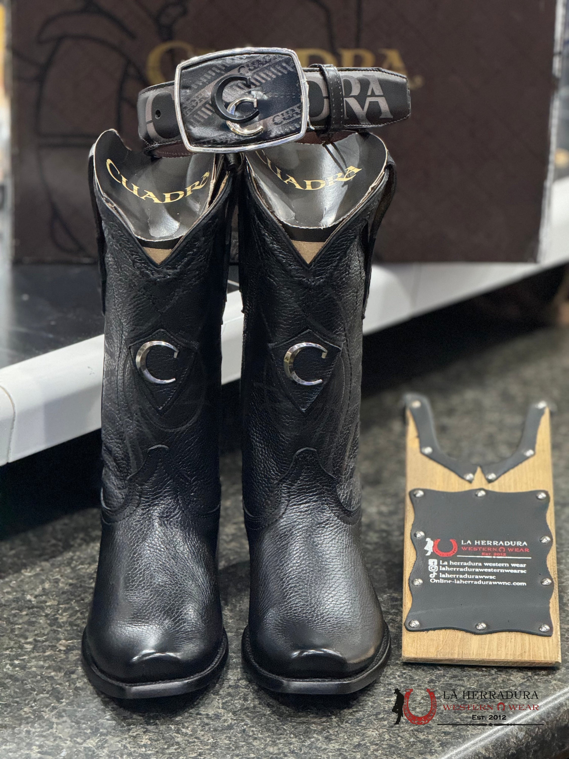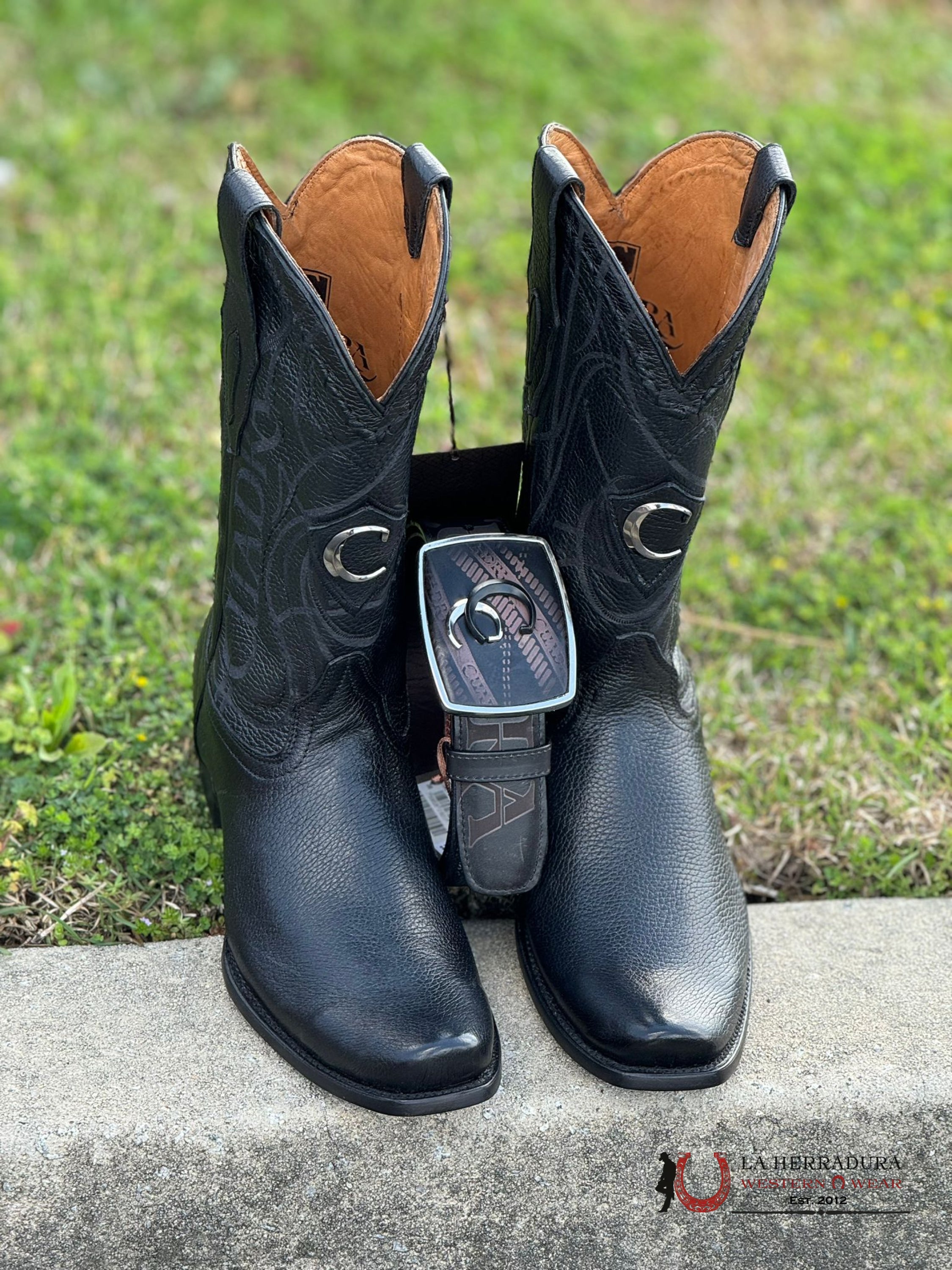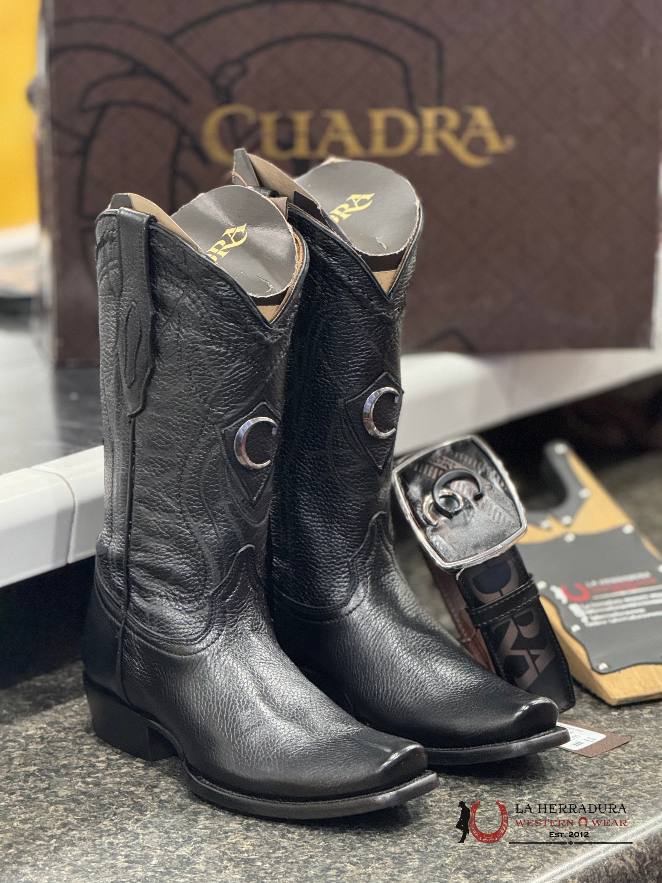 BOOTS CUADRA DEER LASER / VENADO ITALIANO PUNTA SEMI CUADRADA BLACK CU587