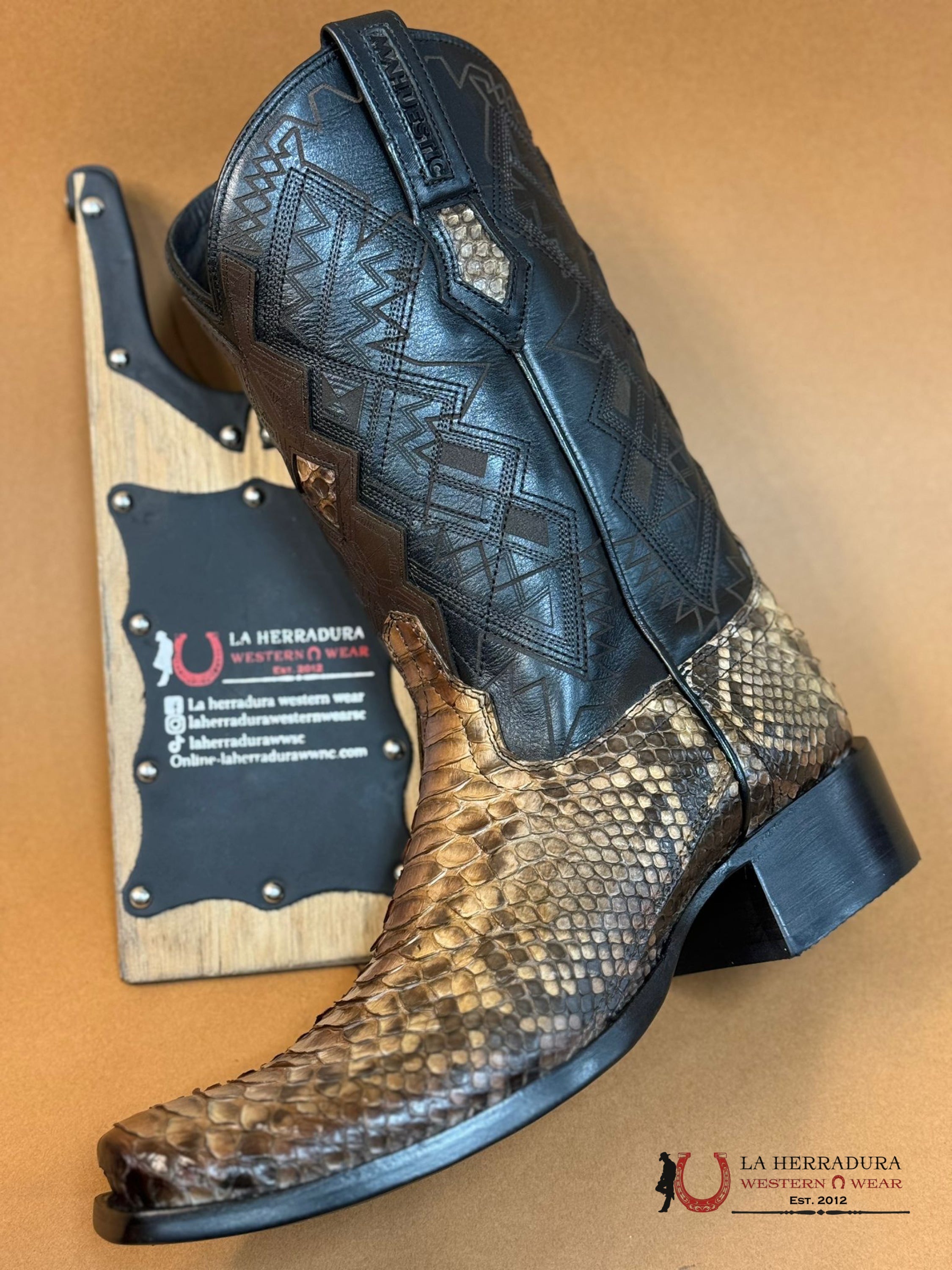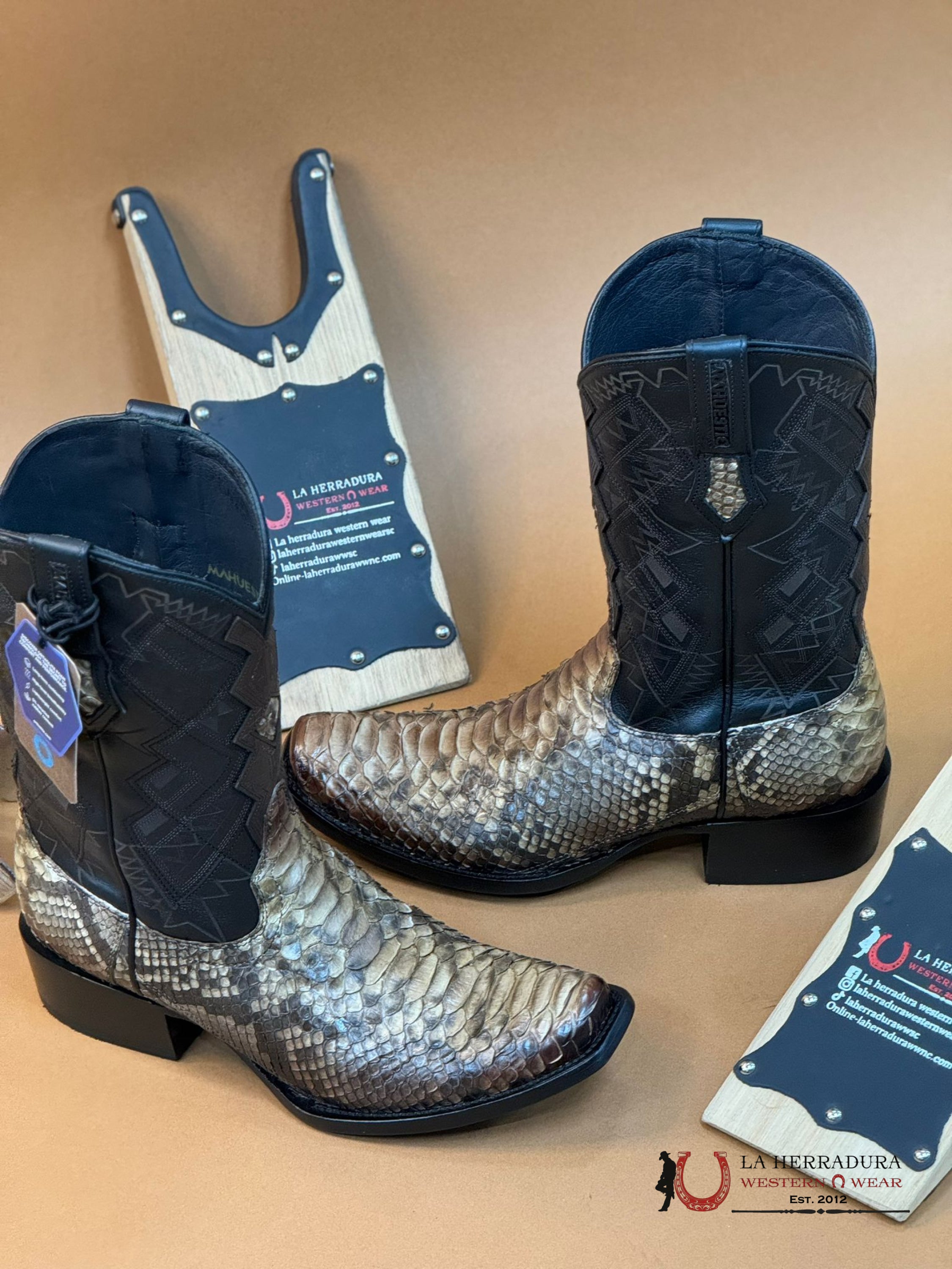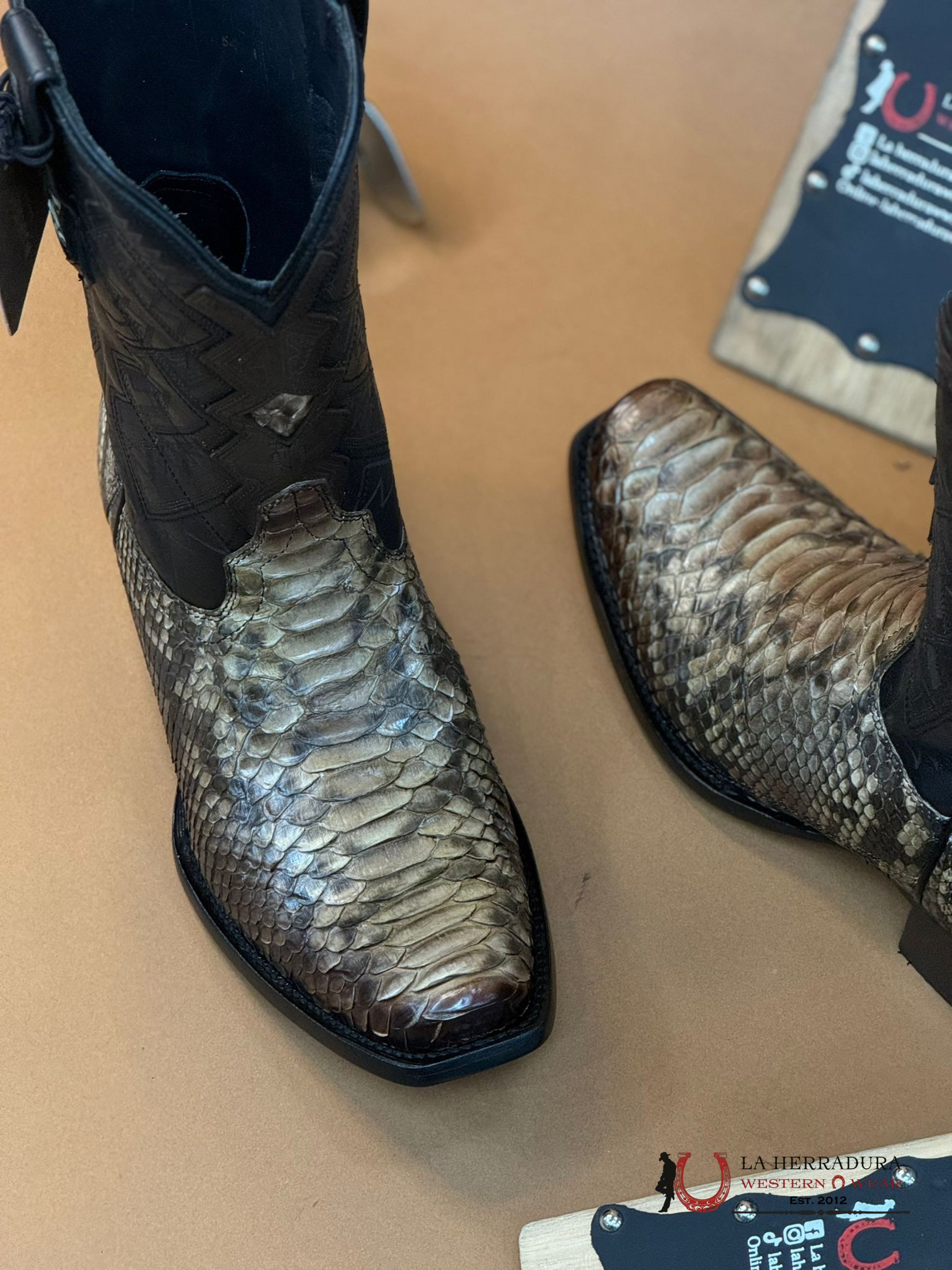 Unleash your wild side with our BOTA EXOTICA MAHUESTIC PHYTON ARENA SEMI CUADRADO. Handcrafted in Mexico, this premium boot features exotic phyton leather for a sleek and elegant look. Make a statement and stand out from the crowd with this unique and luxurious addition to your wardrobe.