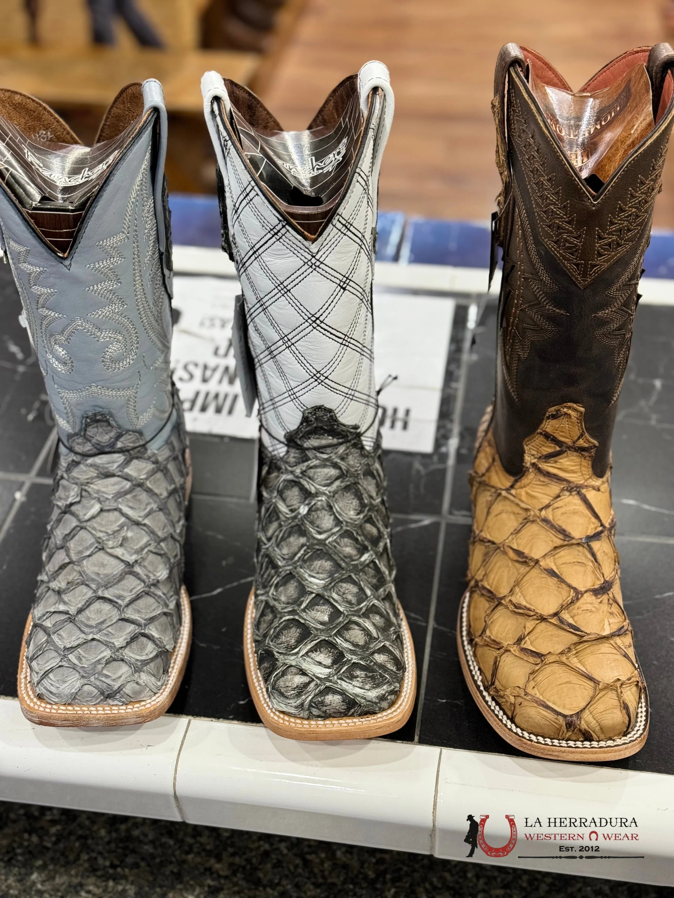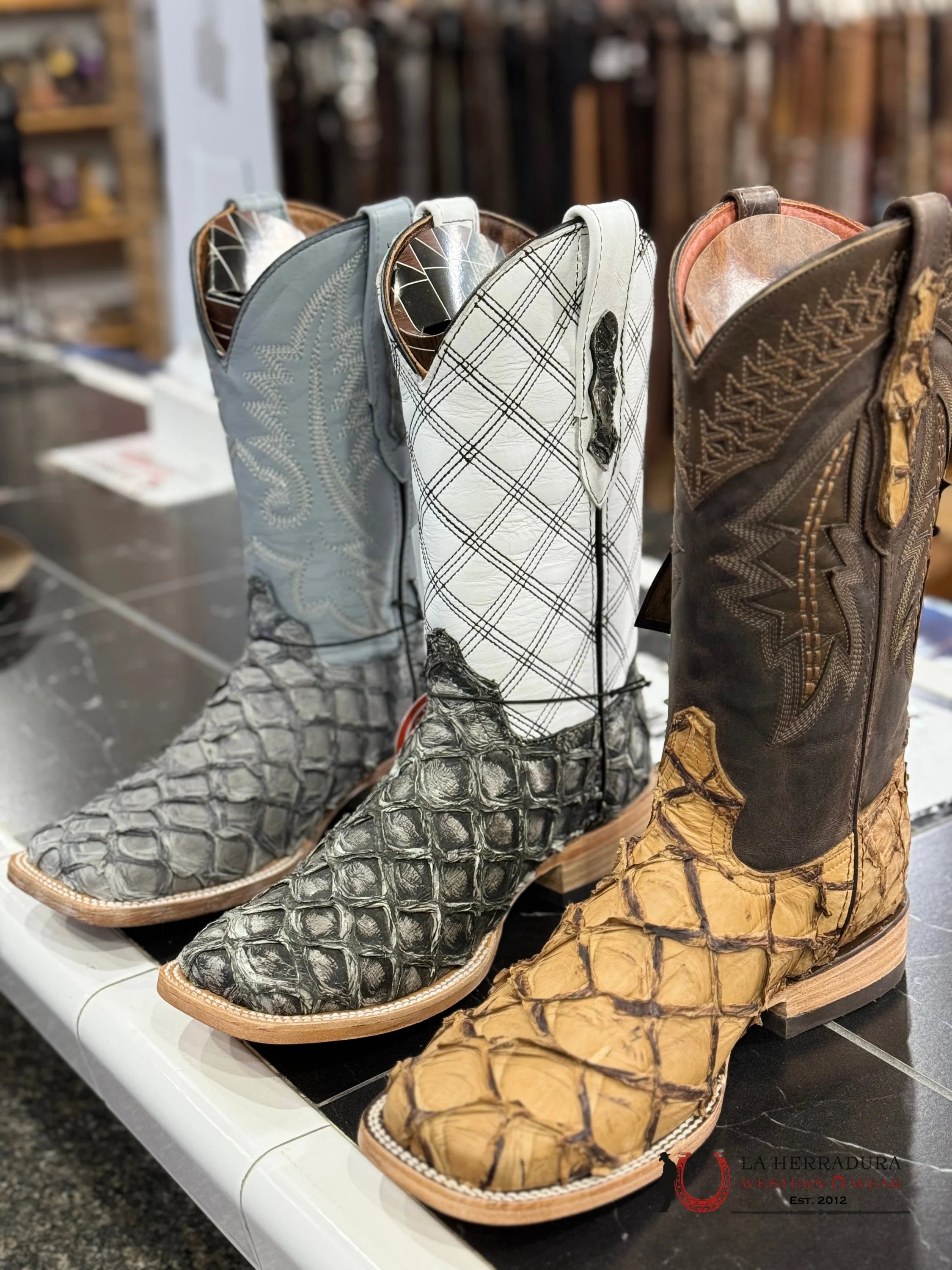 An exotic-looking Pescado/Fish that demands attention! A distinctive square toe, double stitching, and one-of-a-kind rubber heel imbue this classic boot with modern style. Plus, the vaqueta sole ensures unparalleled comfort and durability. Style and comfort like never before!