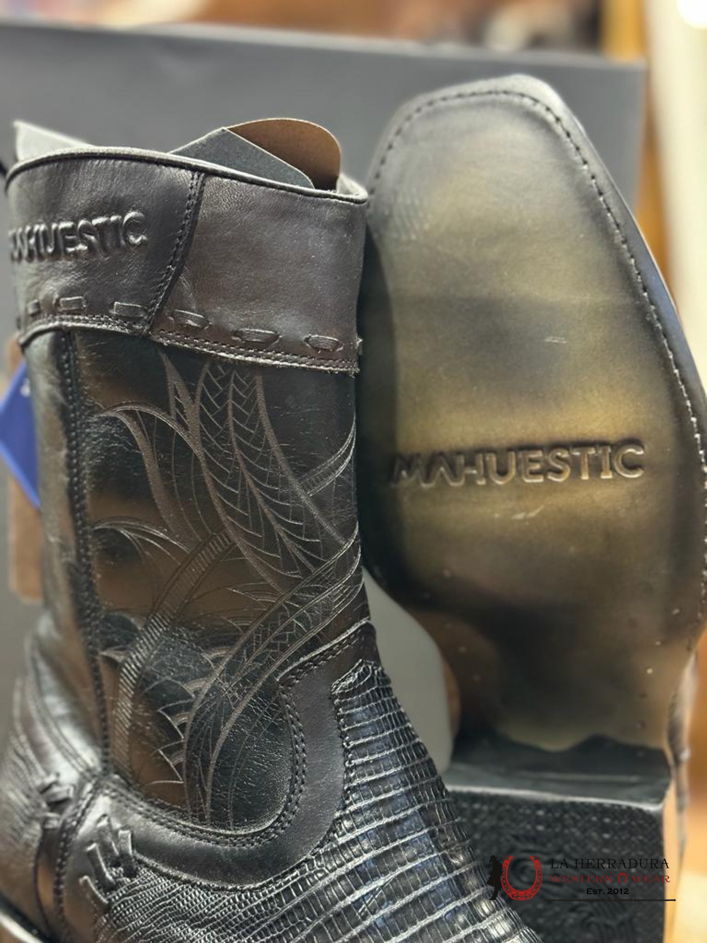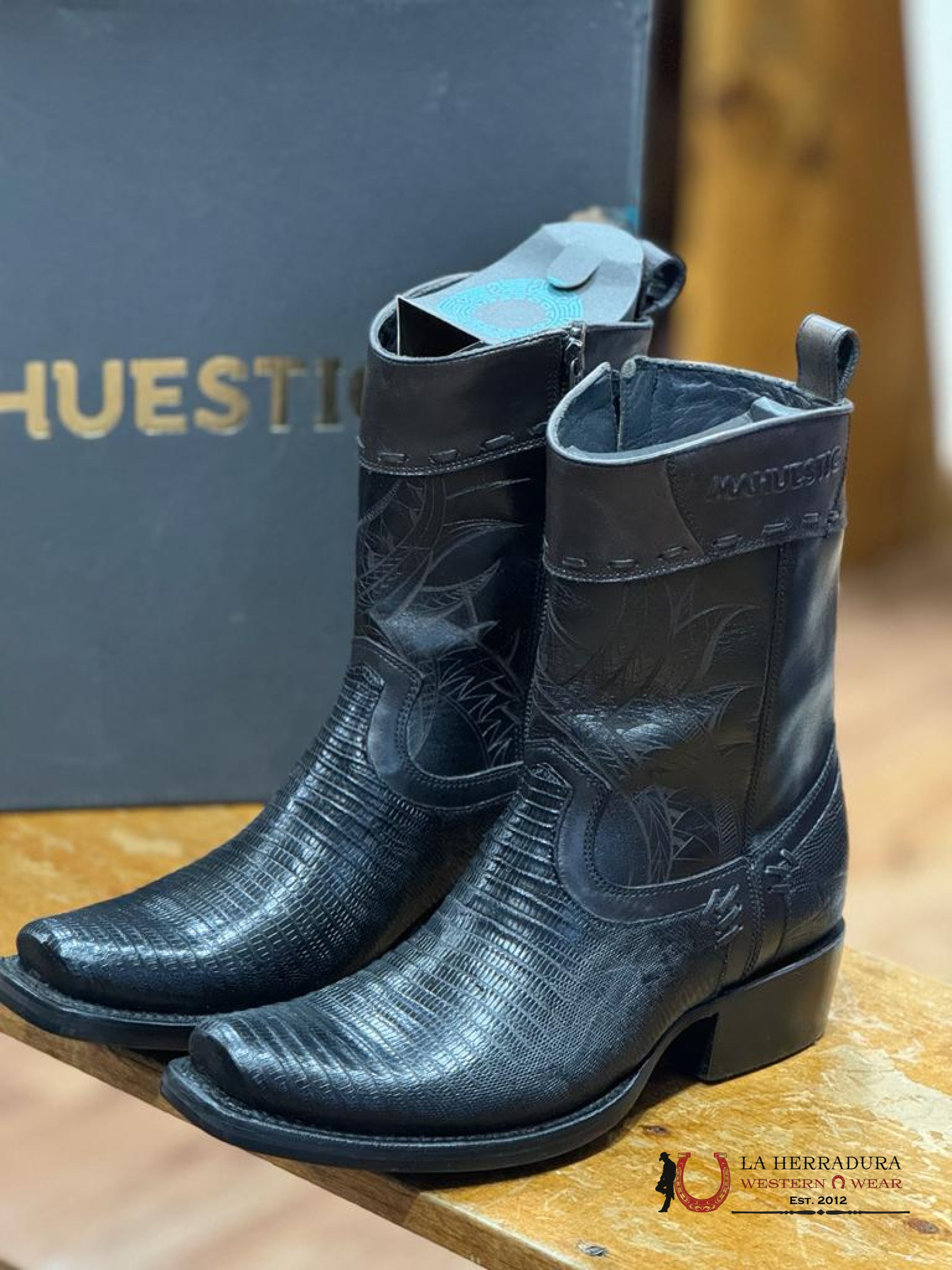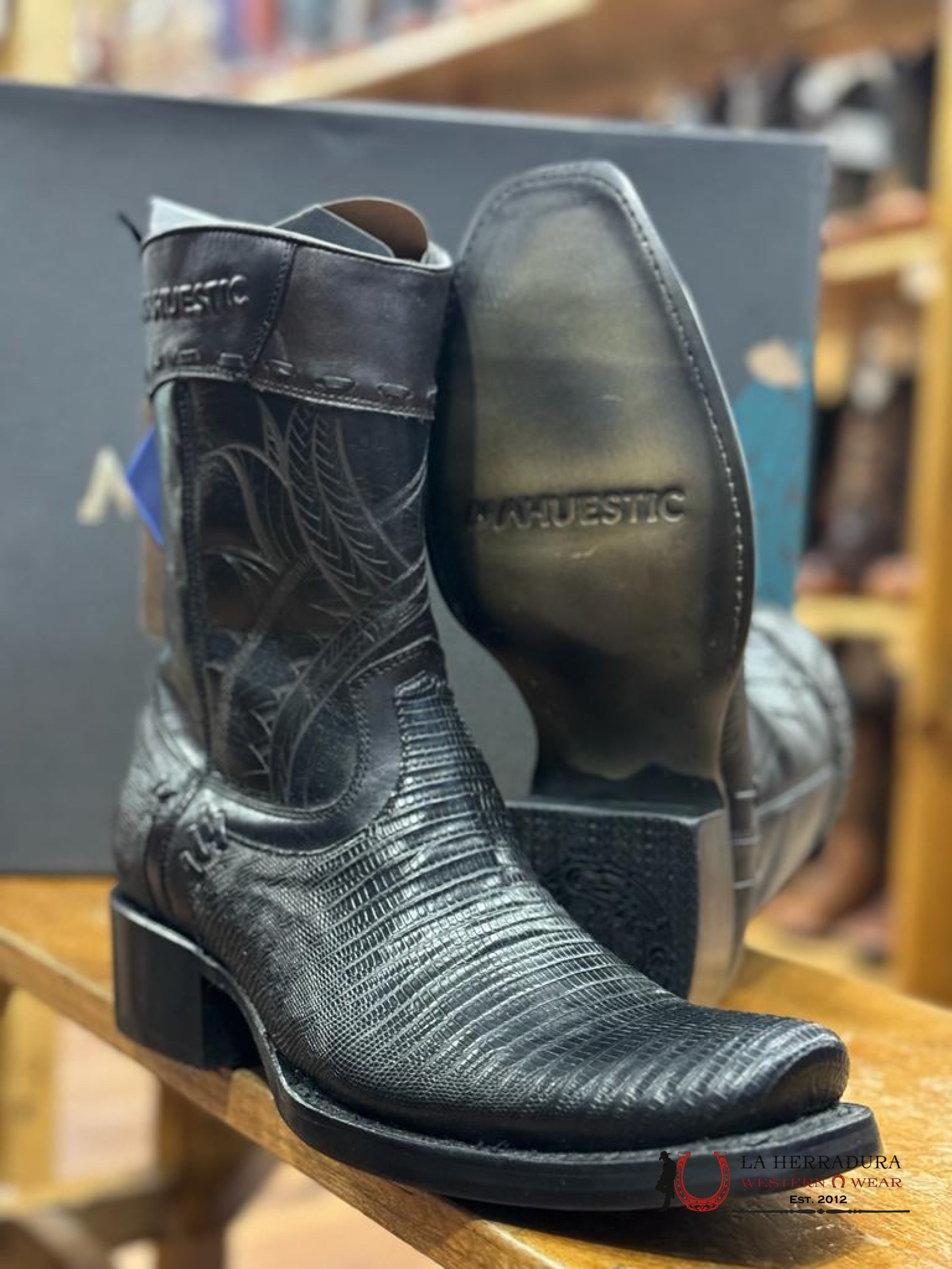 MAHUESTIC LIZARD NEGRO SEMI SQUARE TOE SHORT BOOT NAV0501