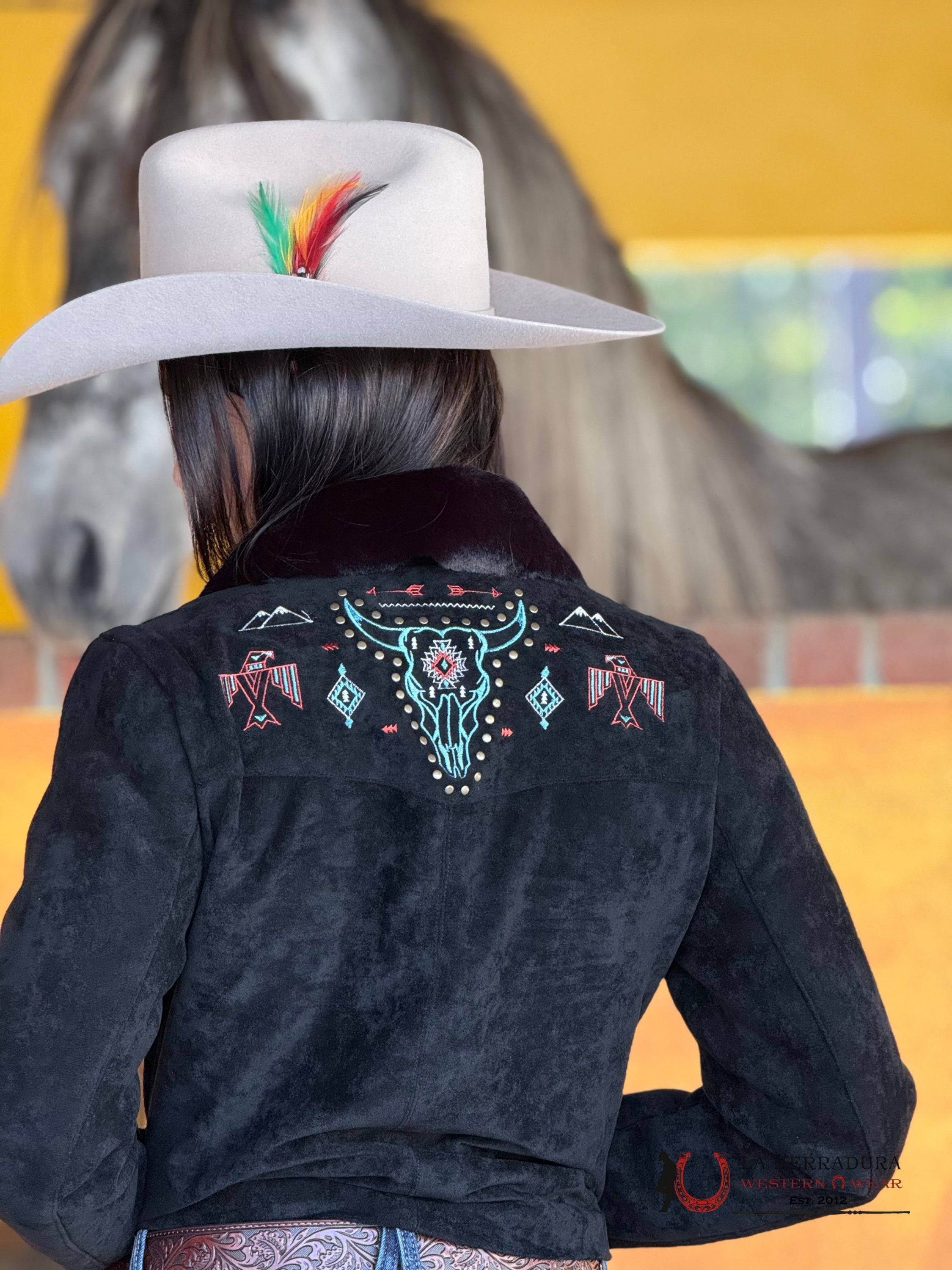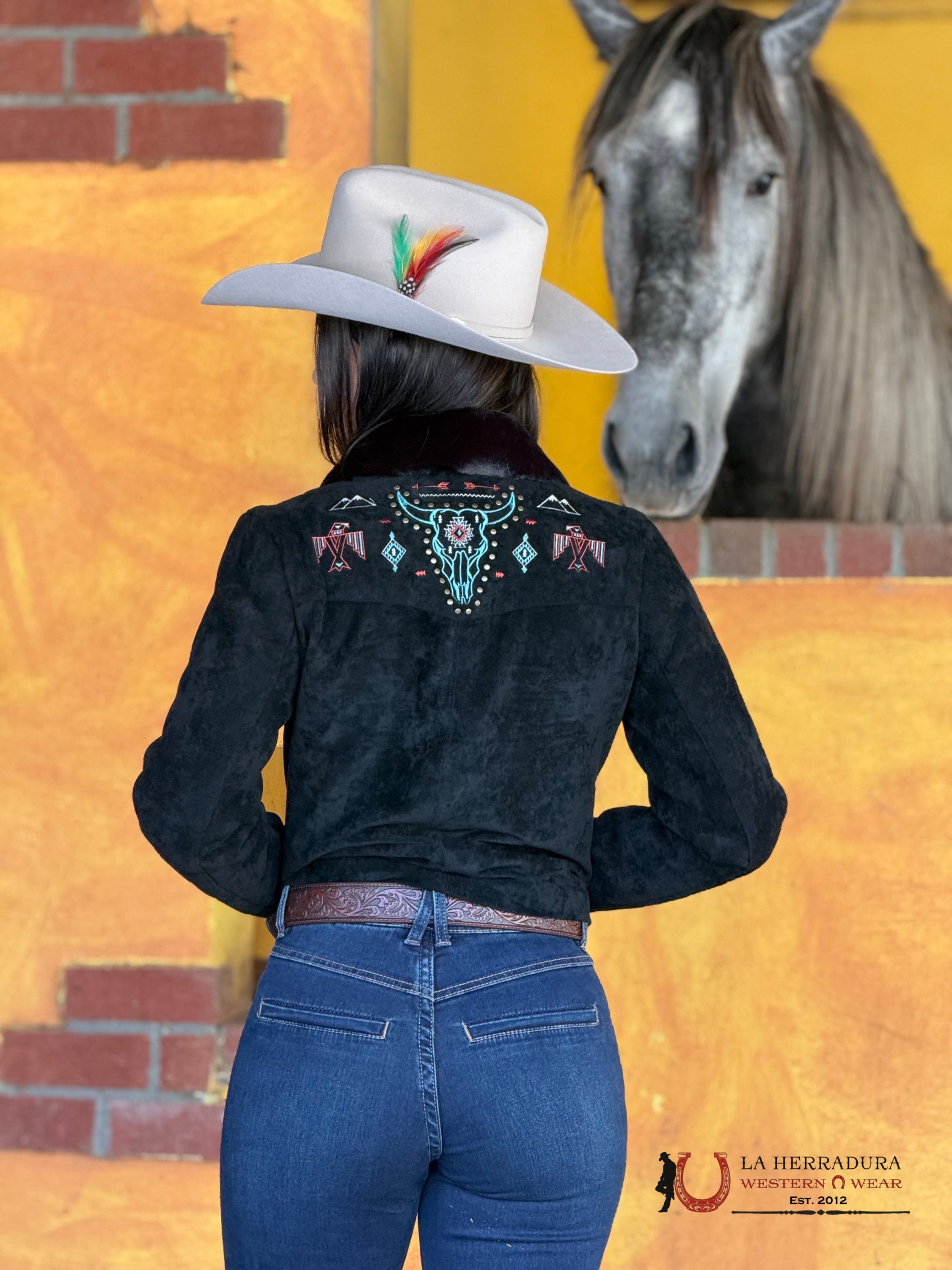 BUTTON UP BLACK JACKET W/ AZTEC BULL DESIGN BW92C02091