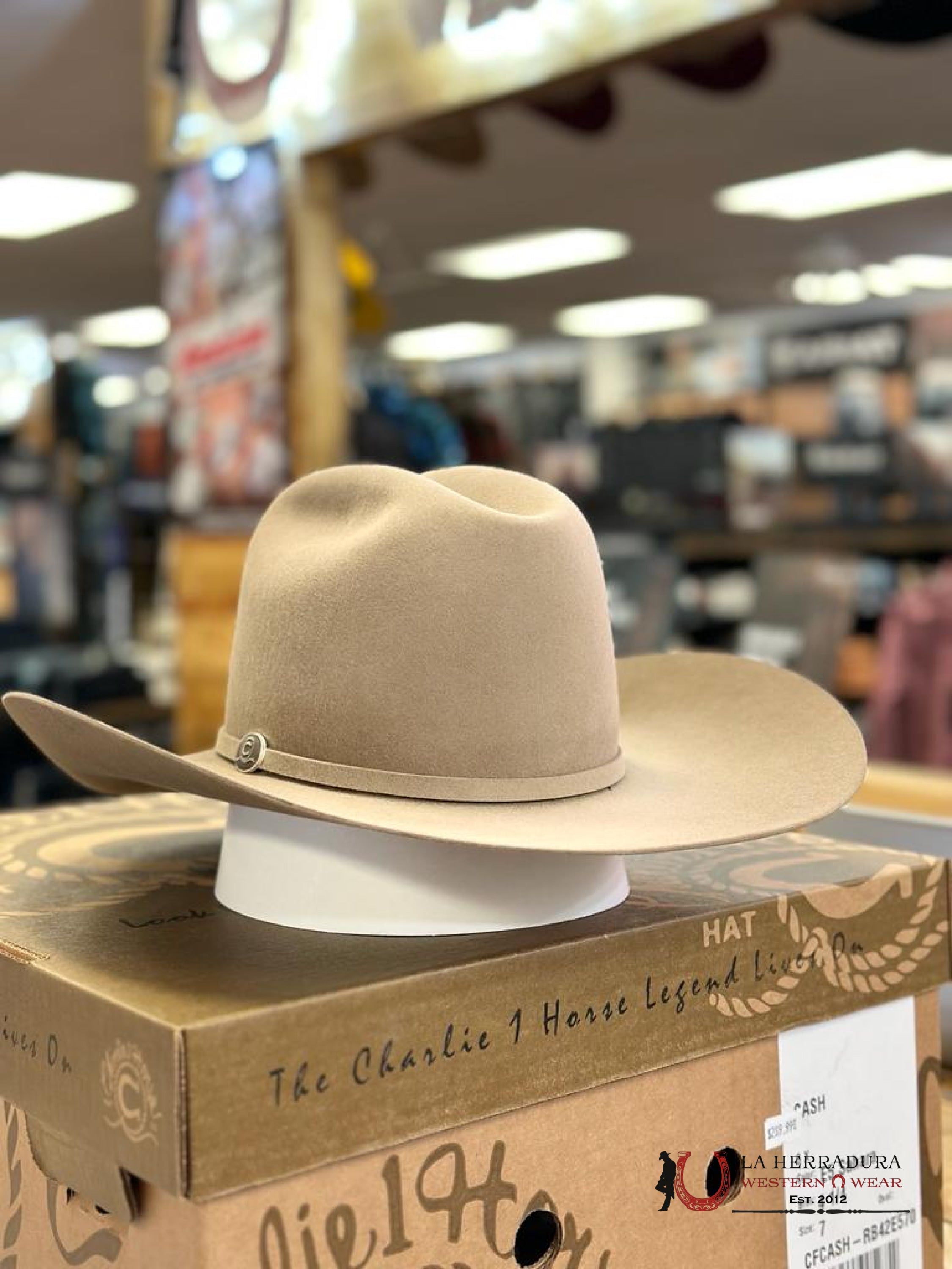 6X Material de fieltro de piel Corona de ganadero Ala de 4” Cinta a juego Prendedor de sombrero Marca C de la firma Con un aspecto clásico y discreto, el sombrero Charlie 1 Horse Cash está hecho de fieltro de piel auténtica de alta calidad. La cinta del sombrero a juego se integra a la perfección, acentuada por un único y sencillo alfiler. Como siempre, la marca de la firma Charlie 1 Horse C se encuentra justo a un lado de la corona del ganadero. El sombrero Cash ofrece un ala de 4” y es un elemento básico versátil para cualquier guardarropa.