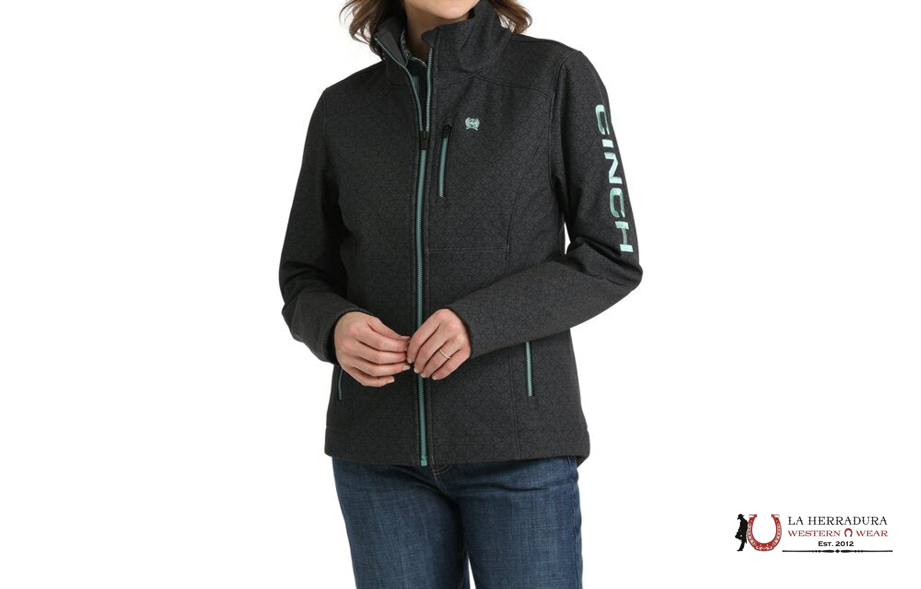Experience the perfect blend of fashion and functionality with our Cinch Womens Jacket. Stay warm and stylish with its weather-resistant material and unique style. Featuring convenient zipper pockets, this jacket is perfect for any cowgirl or western enthusiast. Order now and stand out in the crowd!