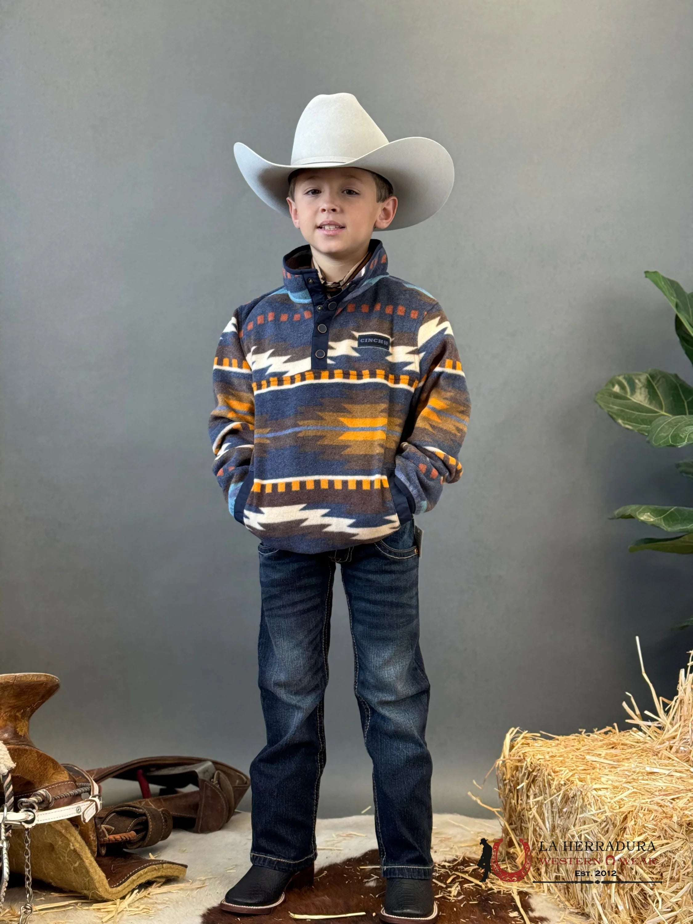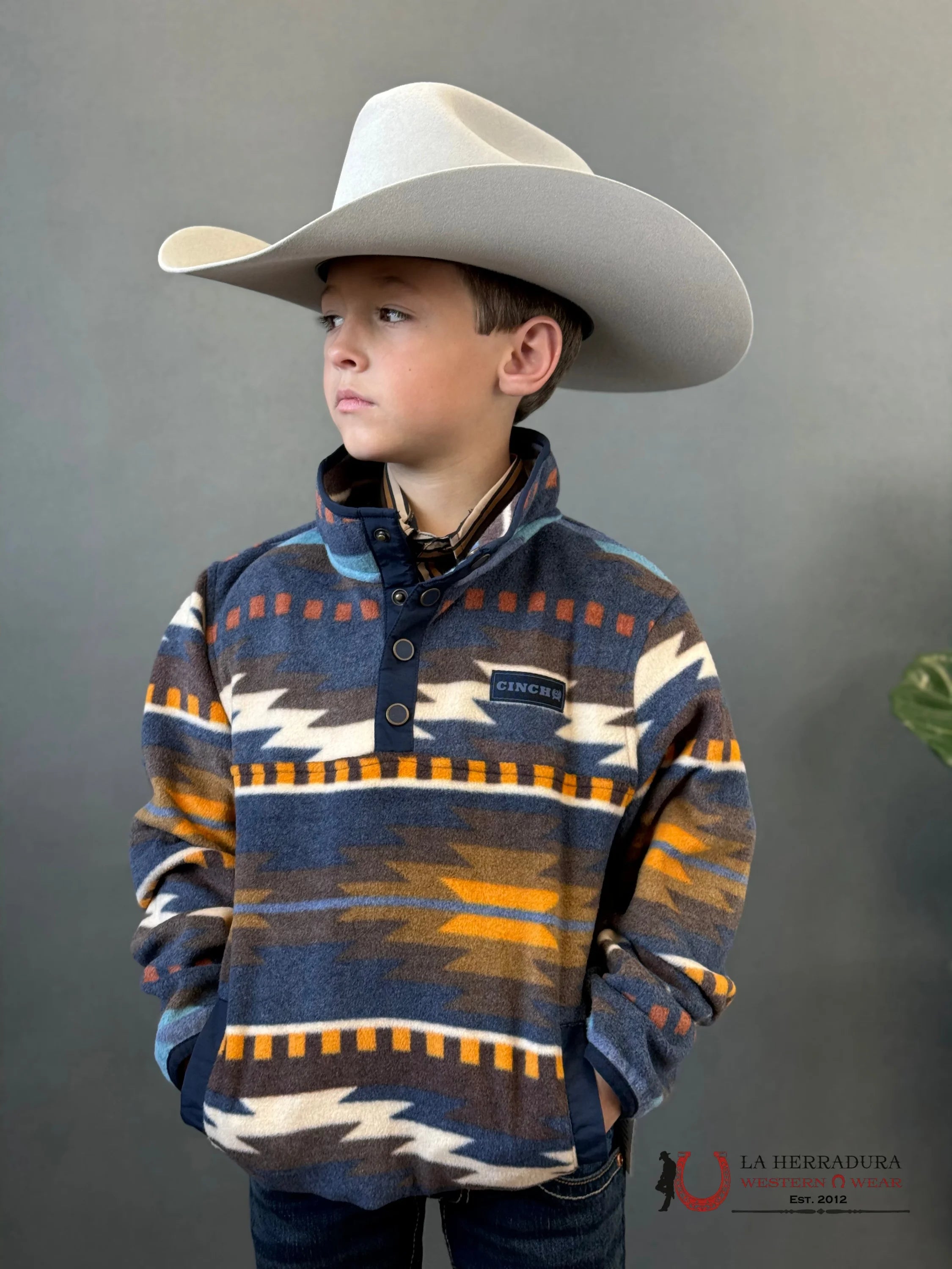 CINCH YOUTH FLEECE BLUE AZTEC PULL OVER MWK 7590005